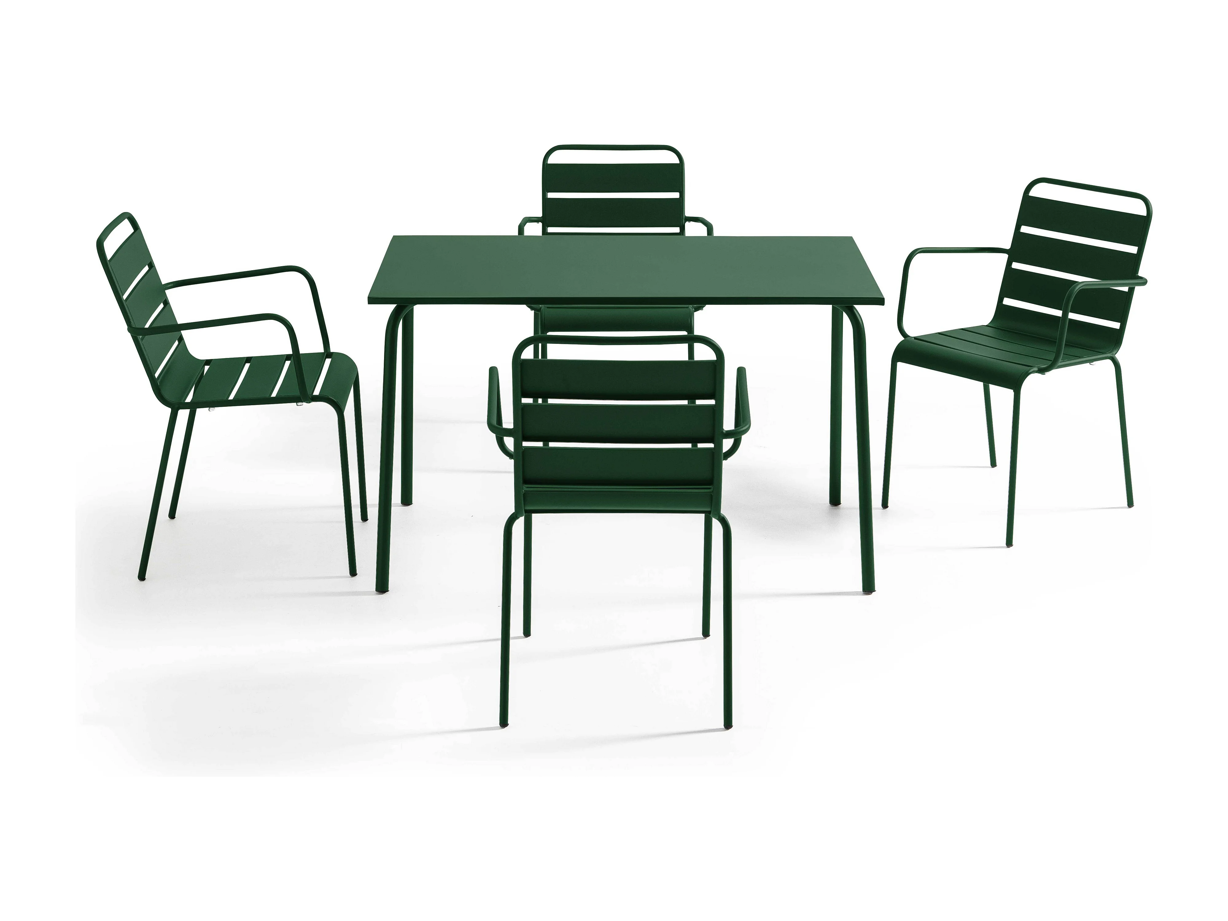 Ensemble table de jardin et 4 fauteuils en métal Vert forêt - Palavas