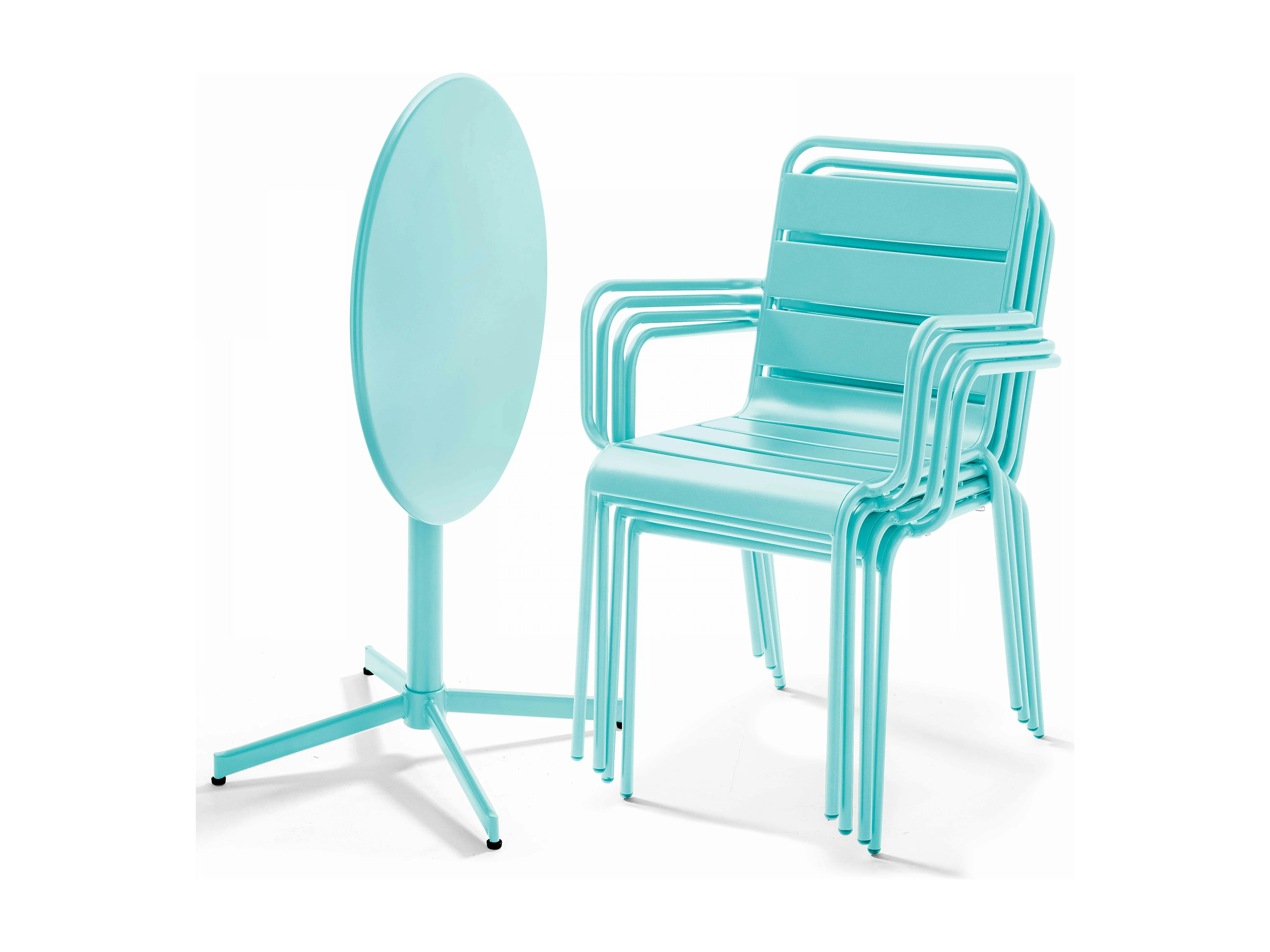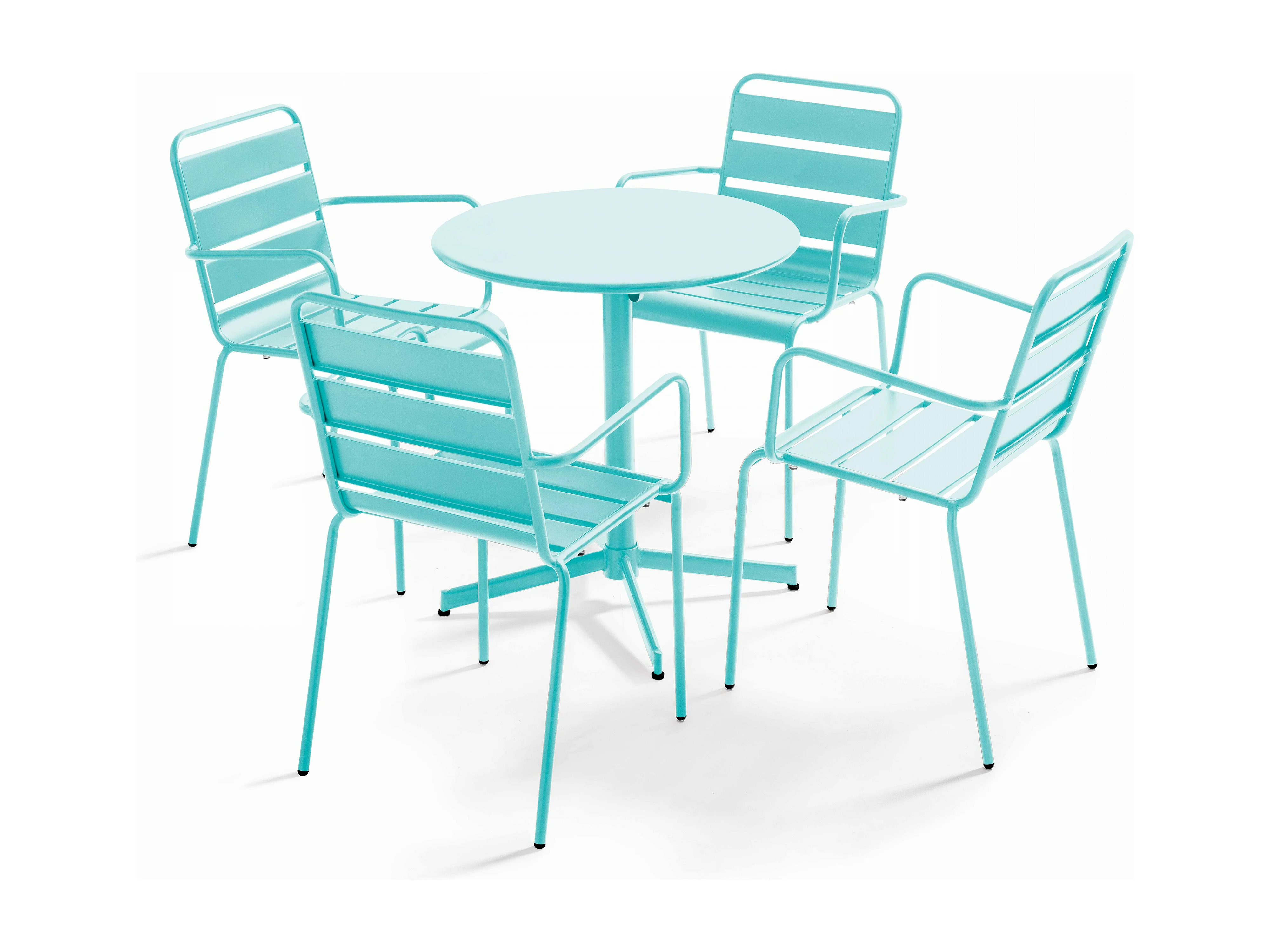 Ensemble table de jardin et 4 fauteuils métal turquoise - Palavas