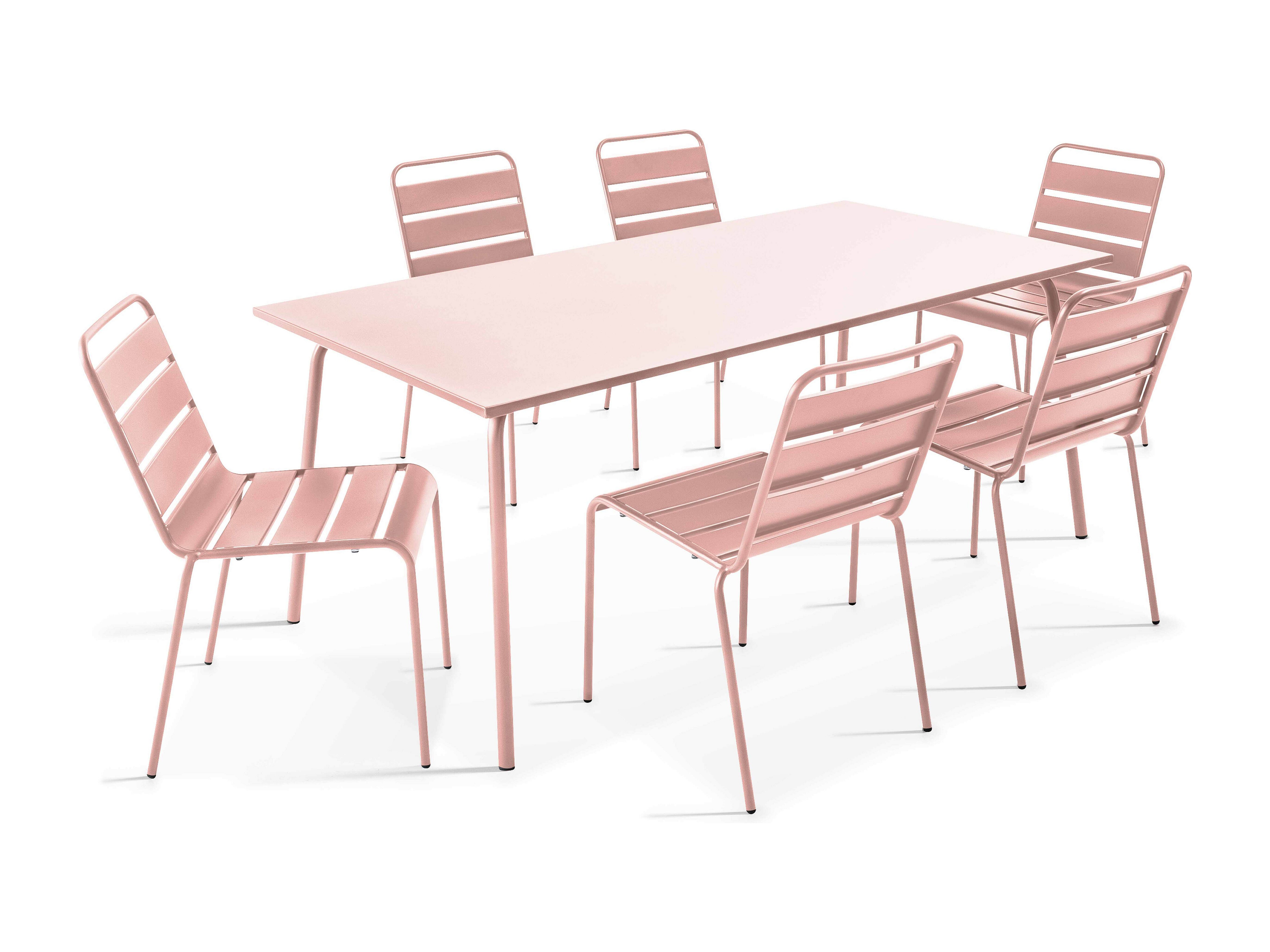 Ensemble table de jardin et 6 chaises en métal rose poudré - Palavas