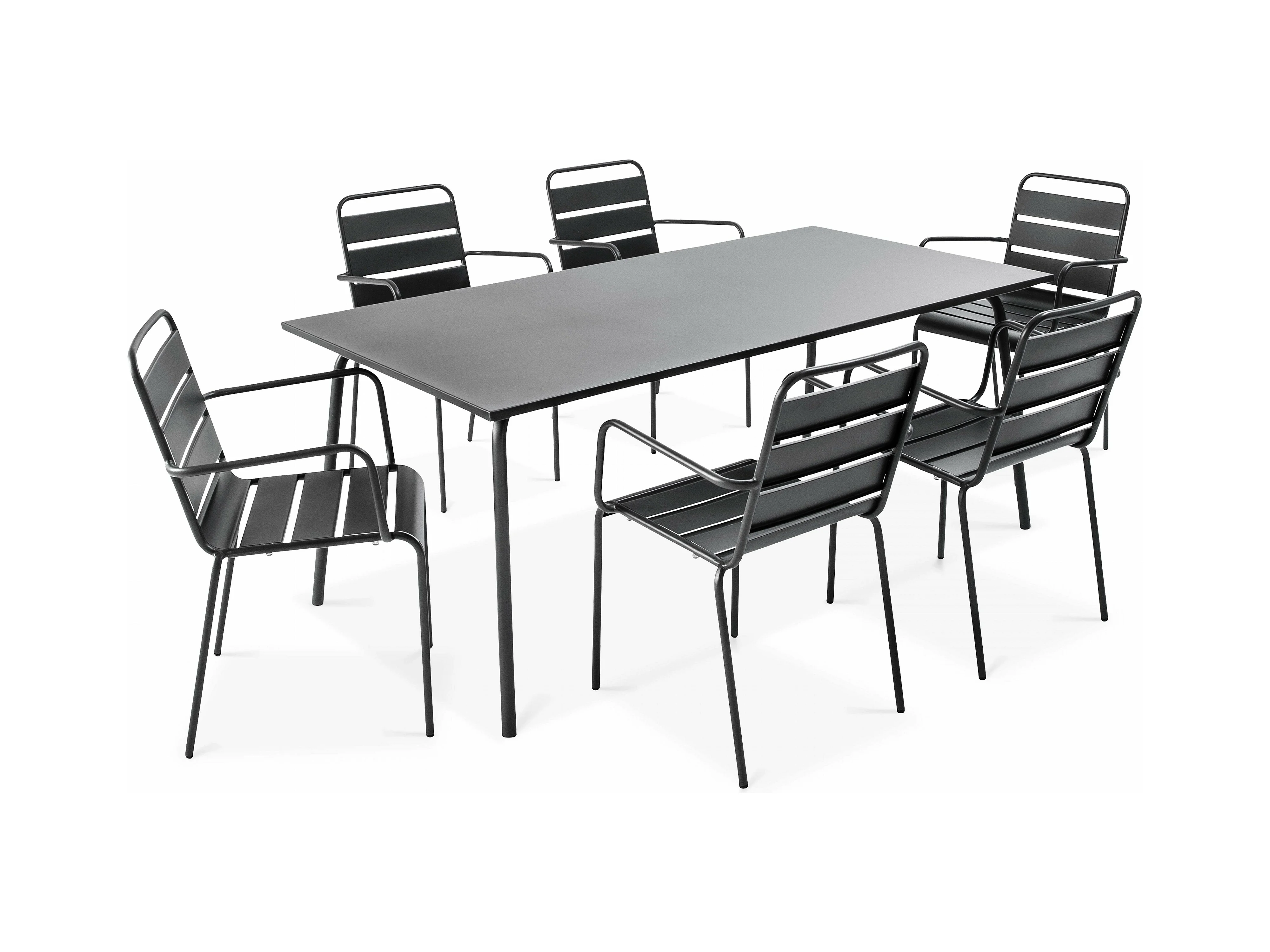 Ensemble table de jardin et 6 fauteuils en métal gris - Palavas