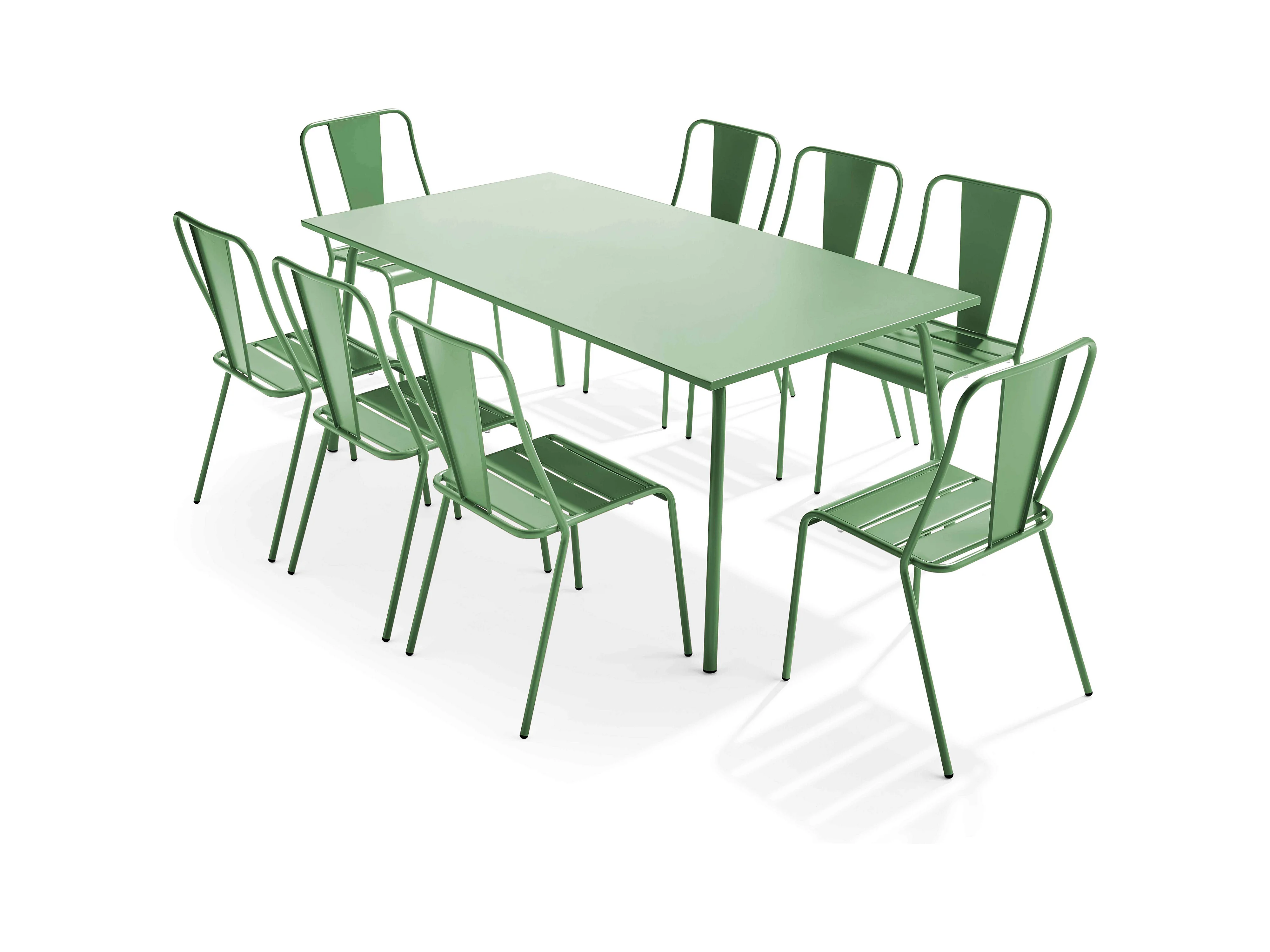 Ensemble table de jardin et 8 chaises bistrot en acier vert cactus - Palavas
