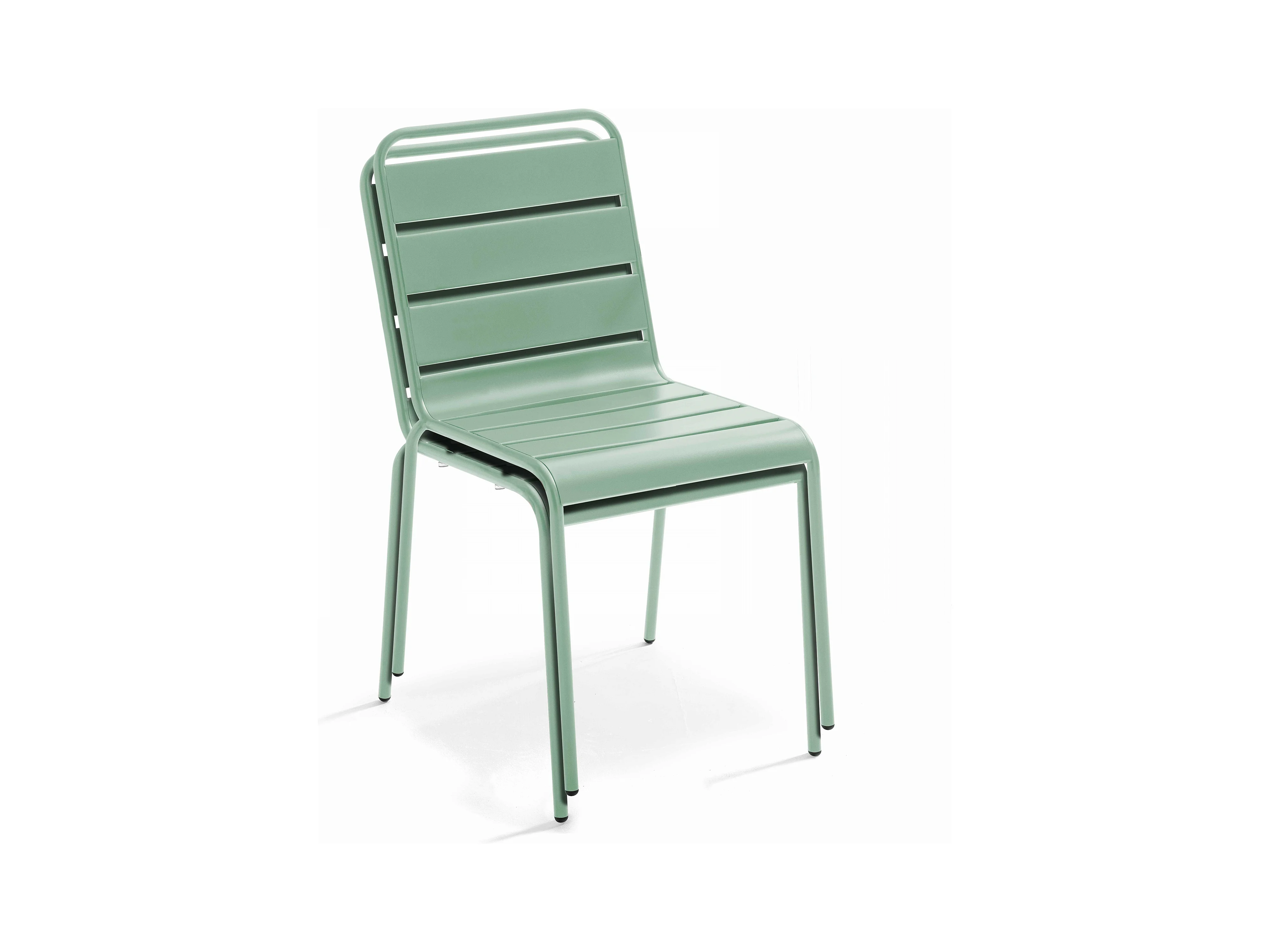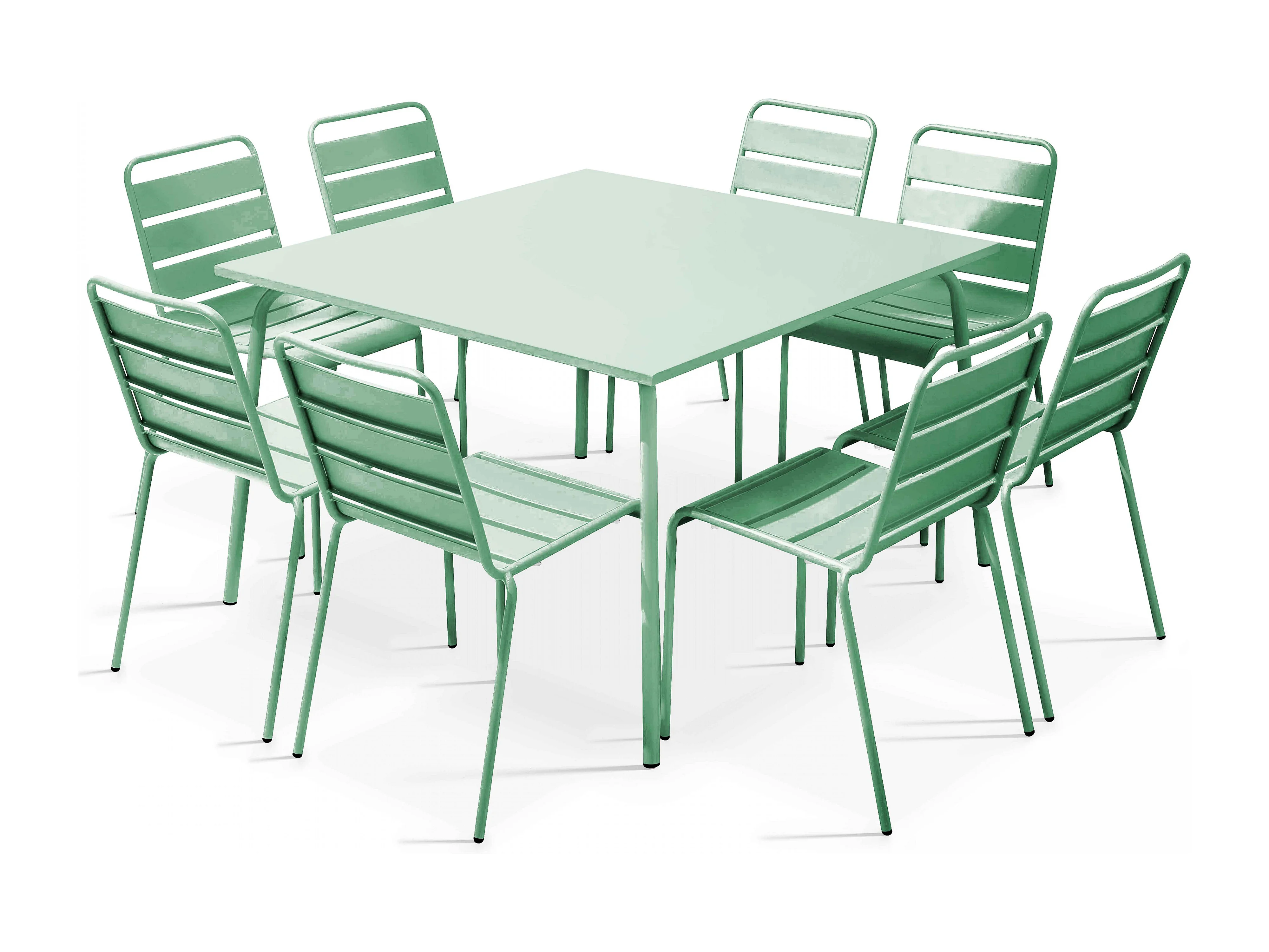Ensemble table de jardin et 8 chaises en métal vert sauge - Palavas