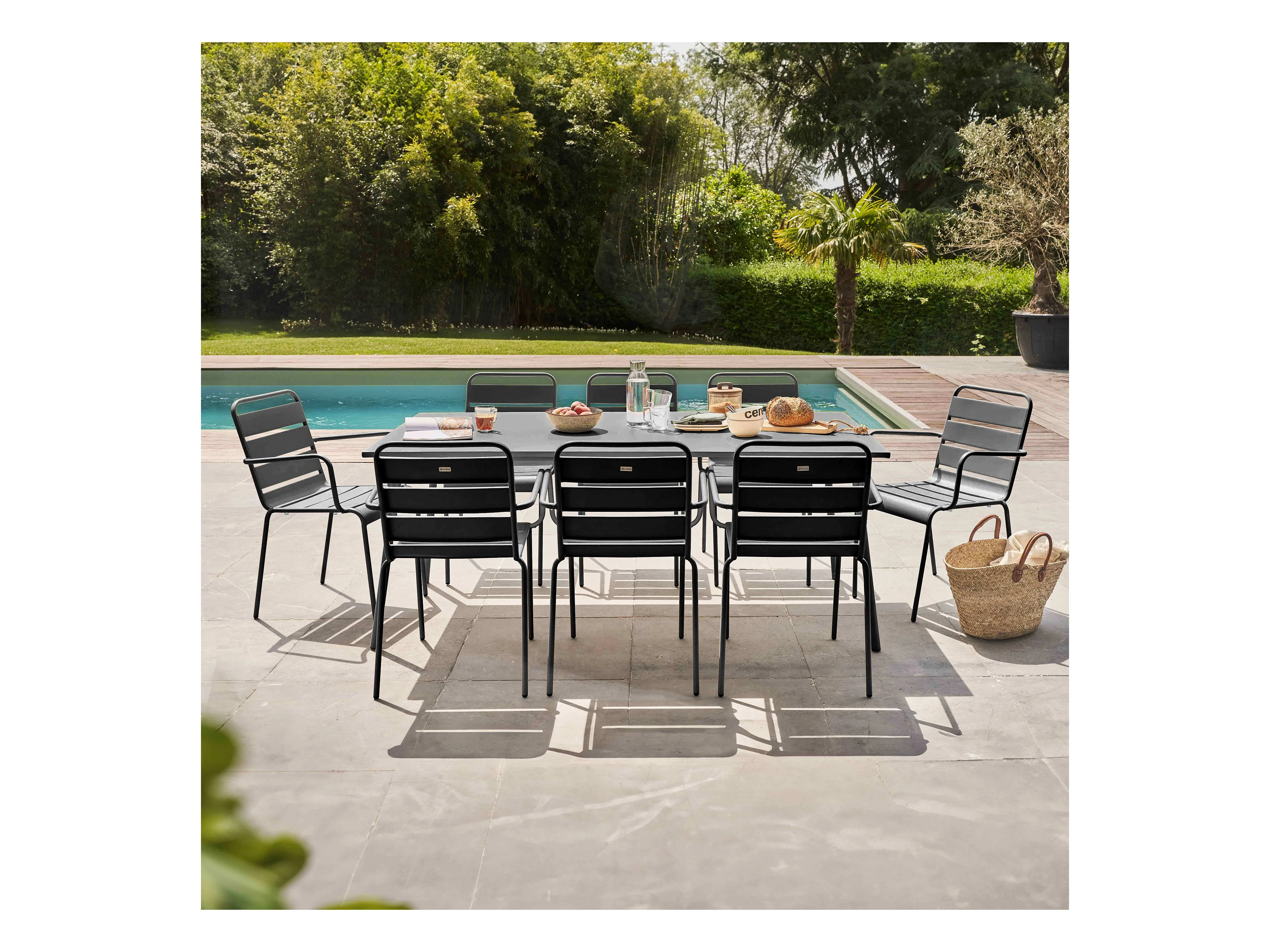 Ensemble table de Jardin et 8 fauteuils en métal gris - Palavas