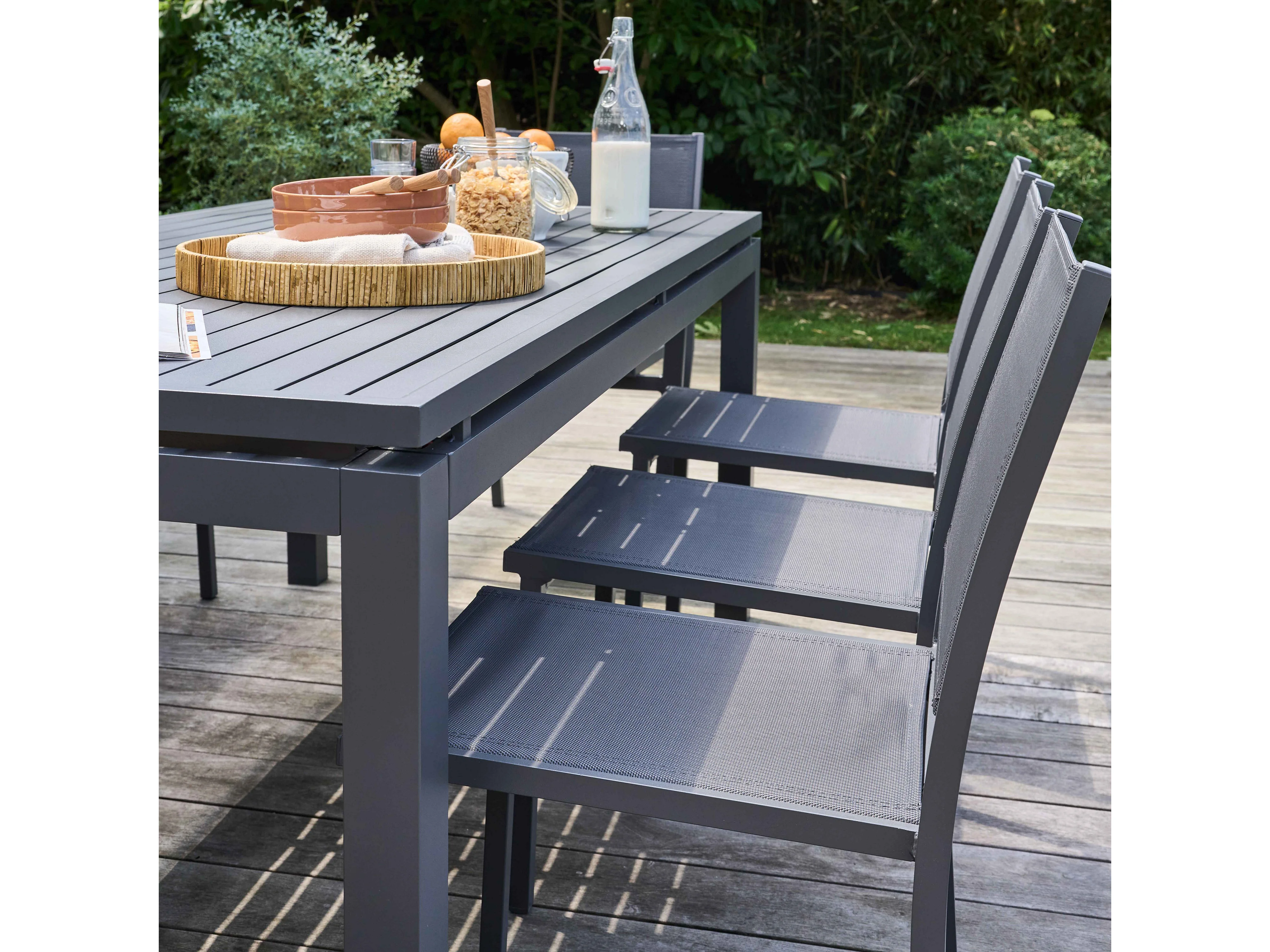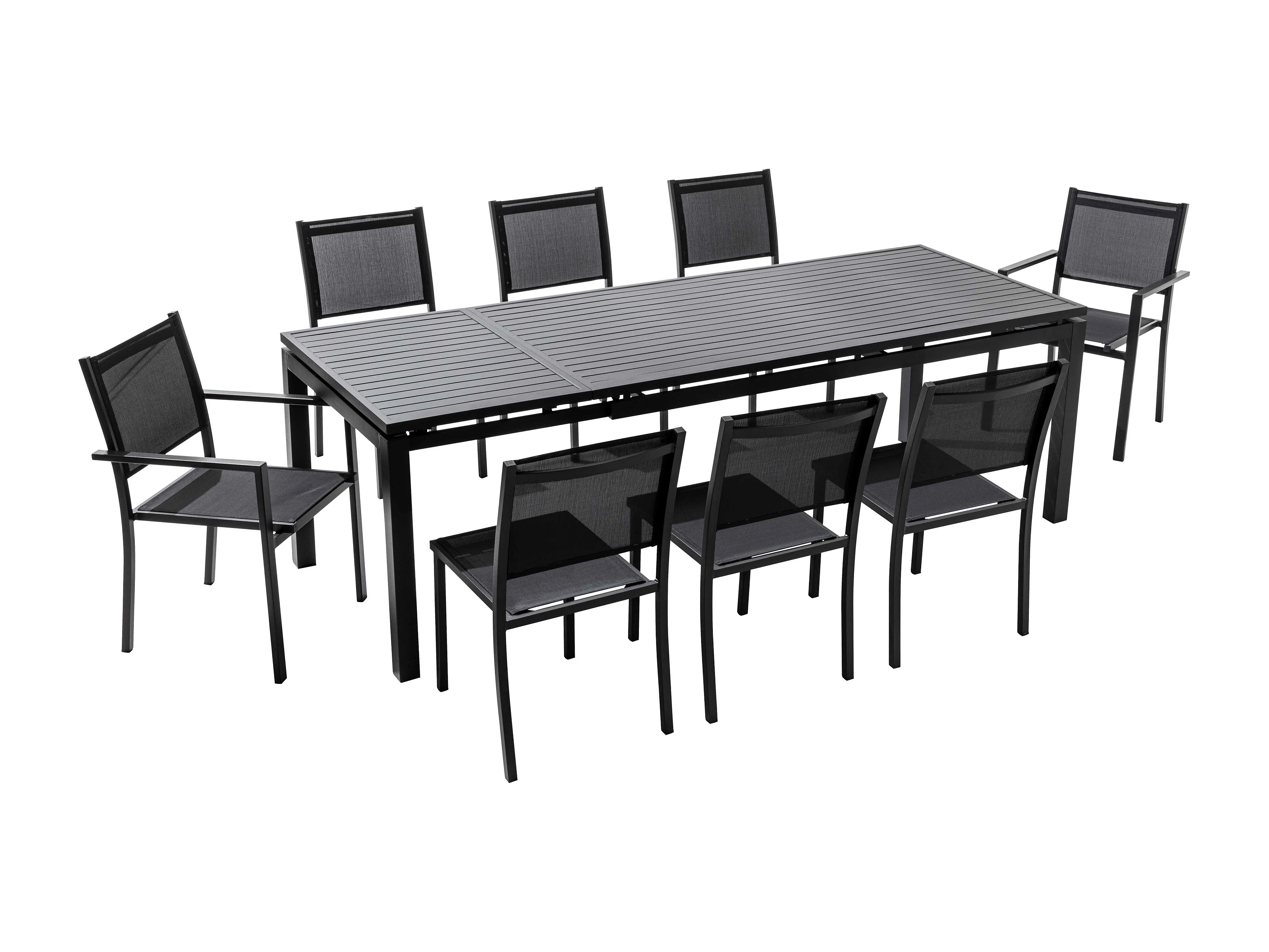 Ensemble table de jardin extensible et 8 assises en aluminium gris