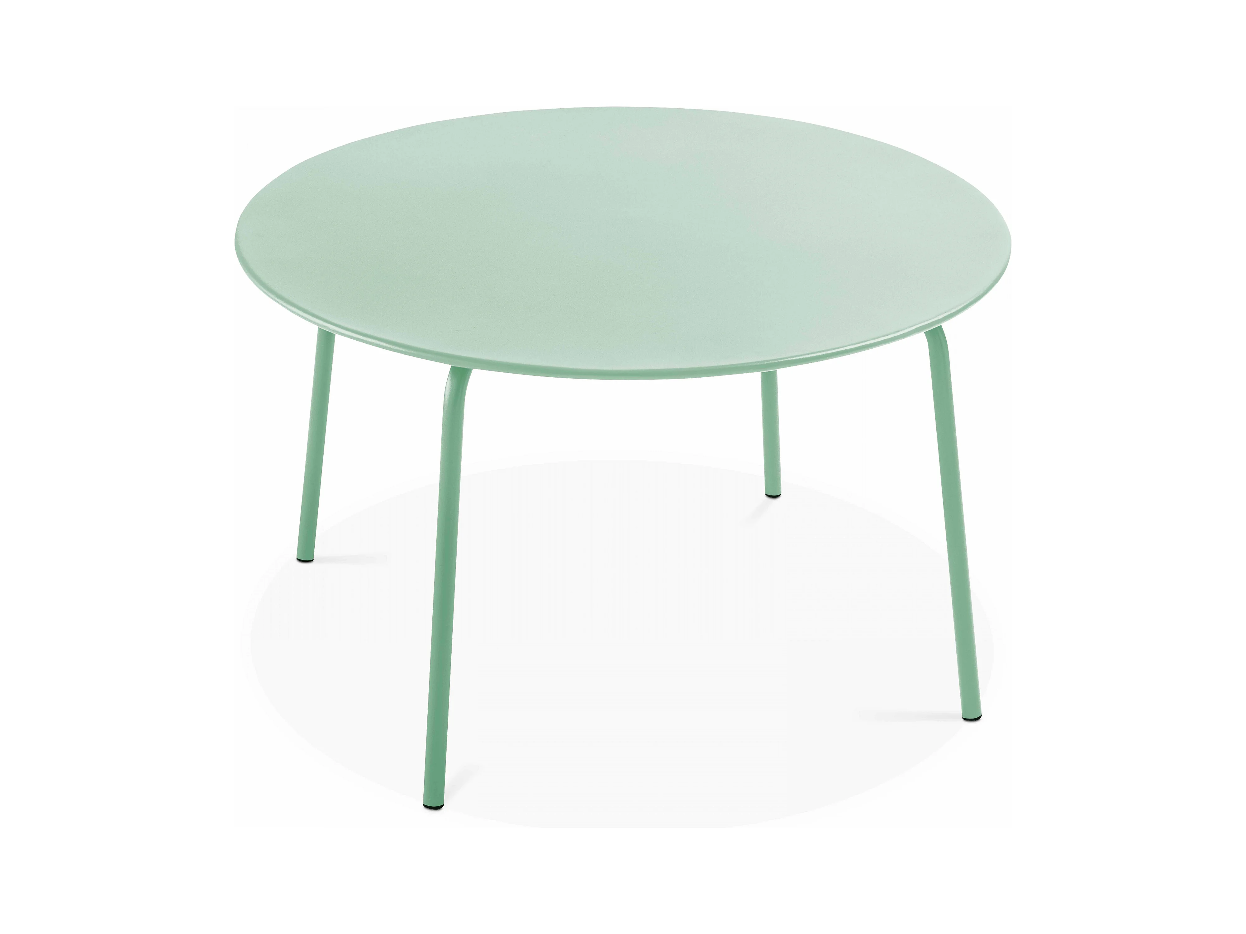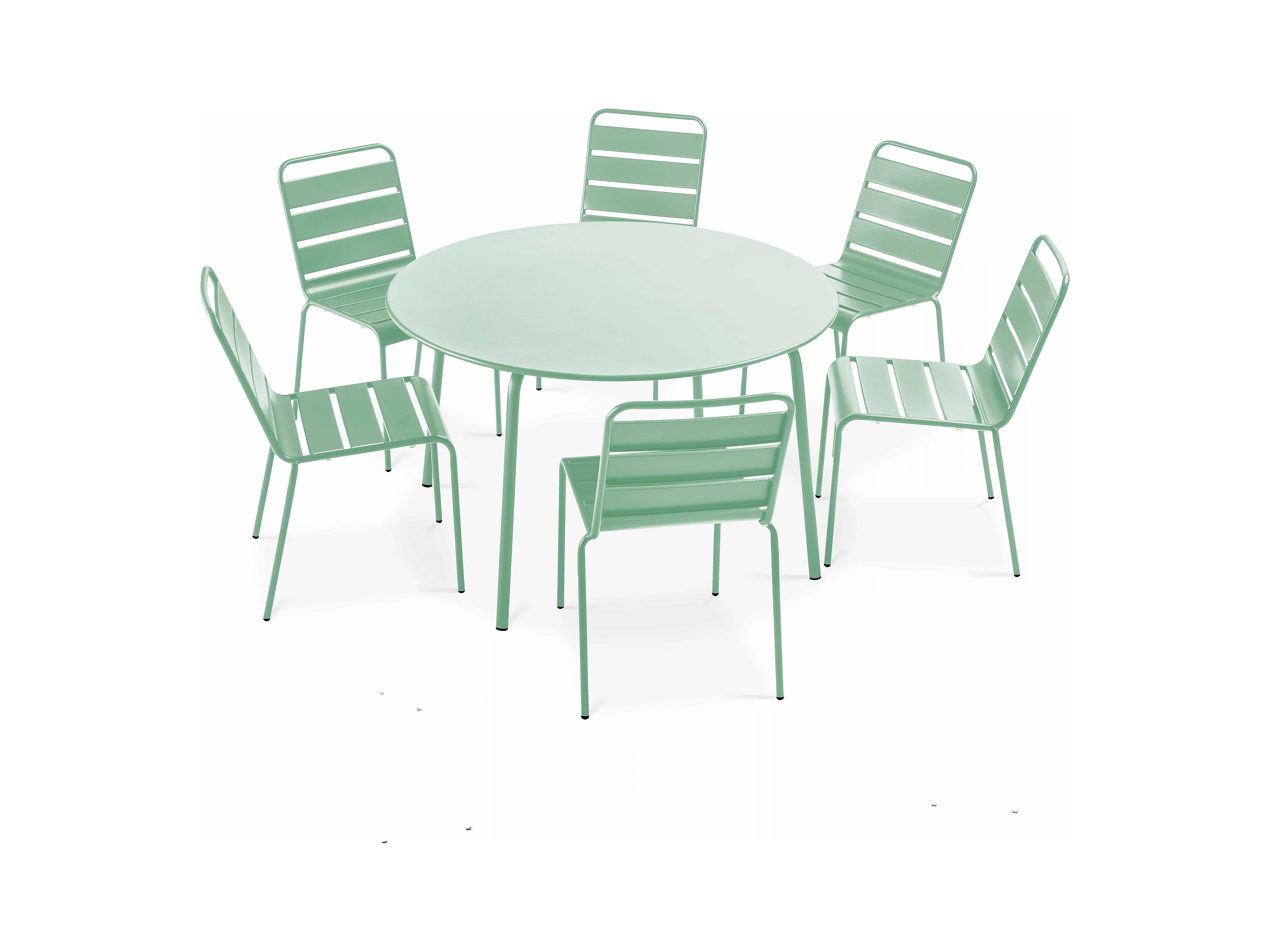 Ensemble table de jardin ronde et 6 chaises en métal vert sauge - Palavas