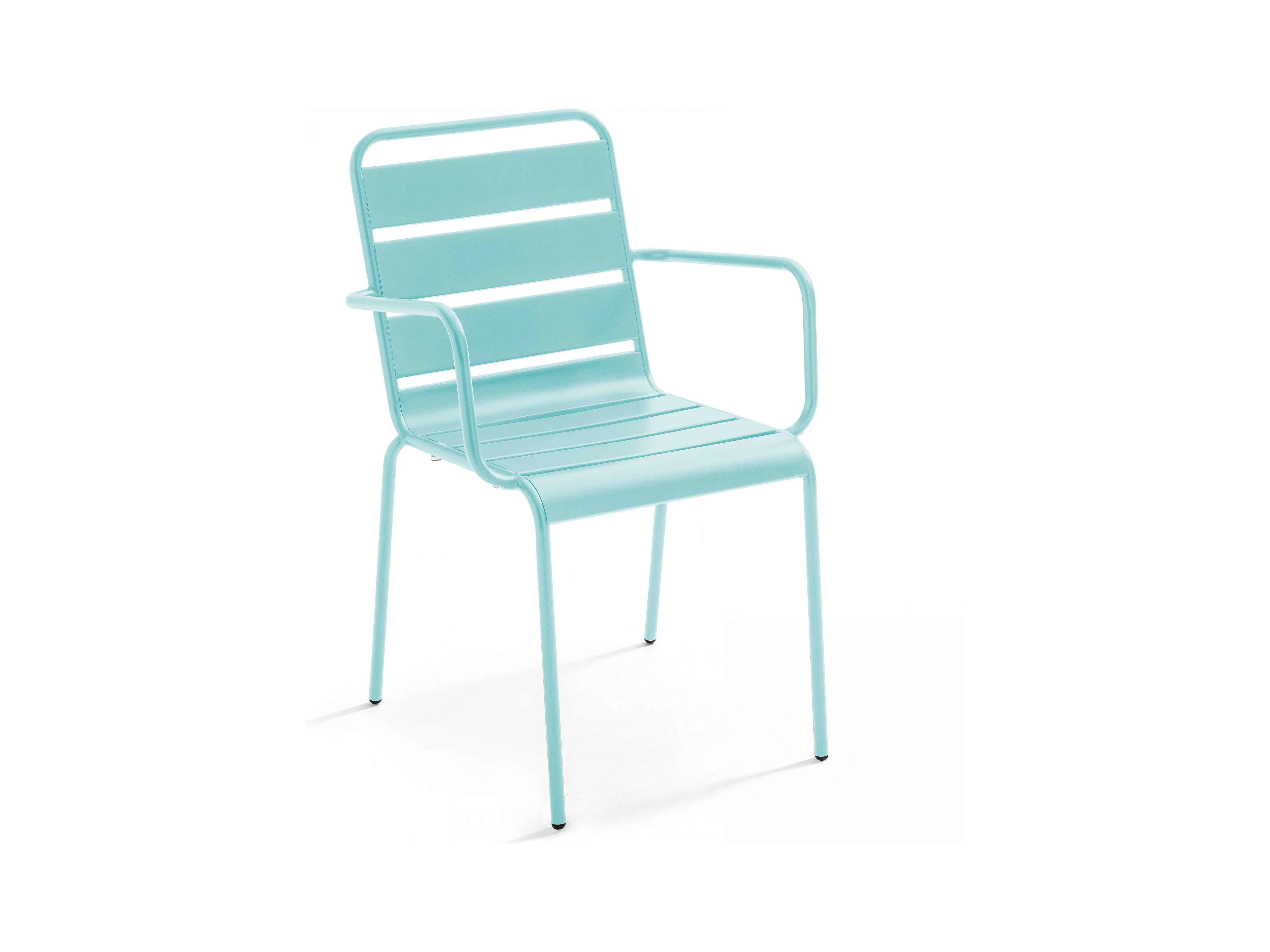 Ensemble table de jardin ronde et 6 fauteuils acier turquoise - Palavas