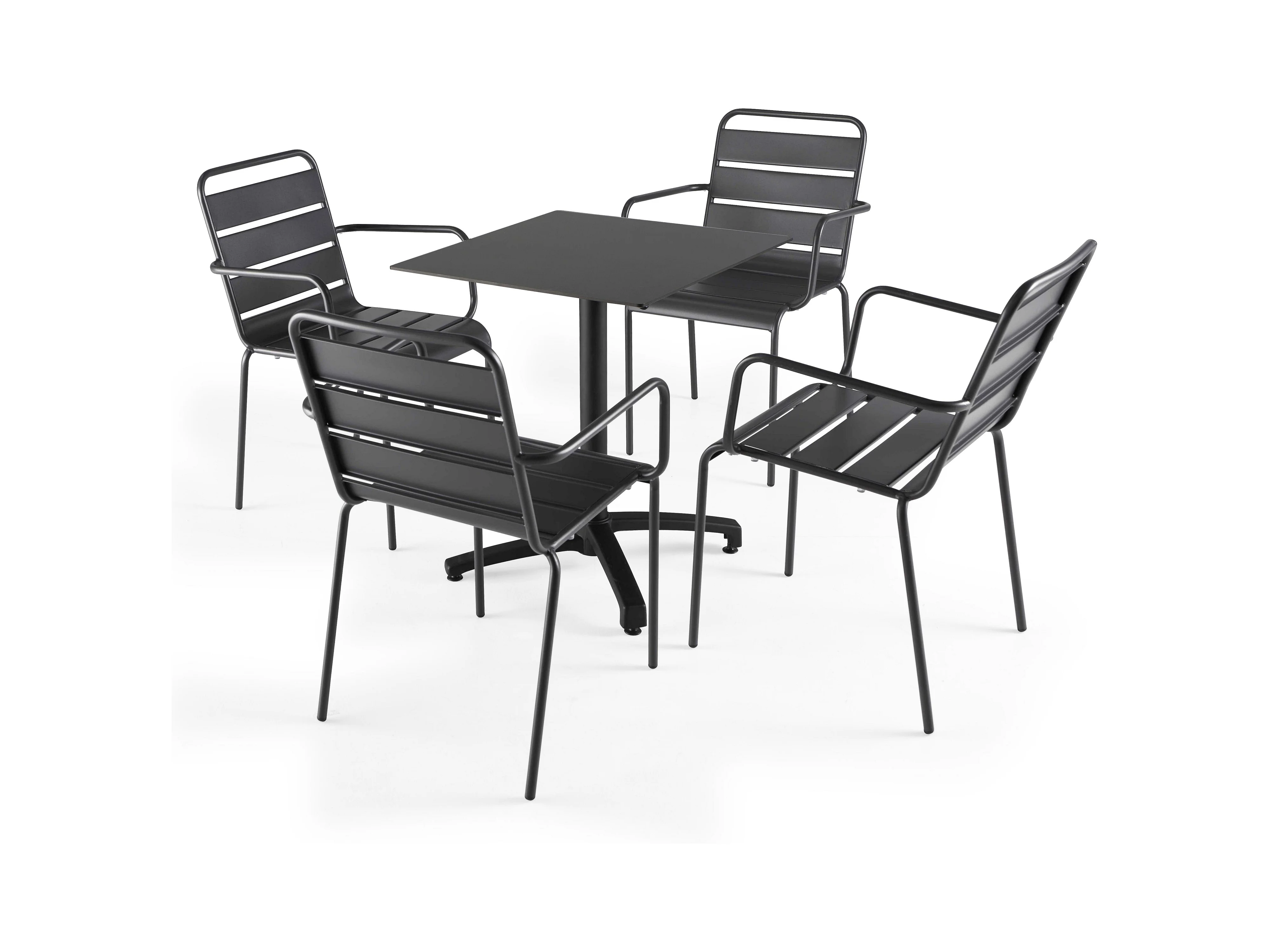 Ensemble table de terrasse stratifié noir et 4 fauteuils gris