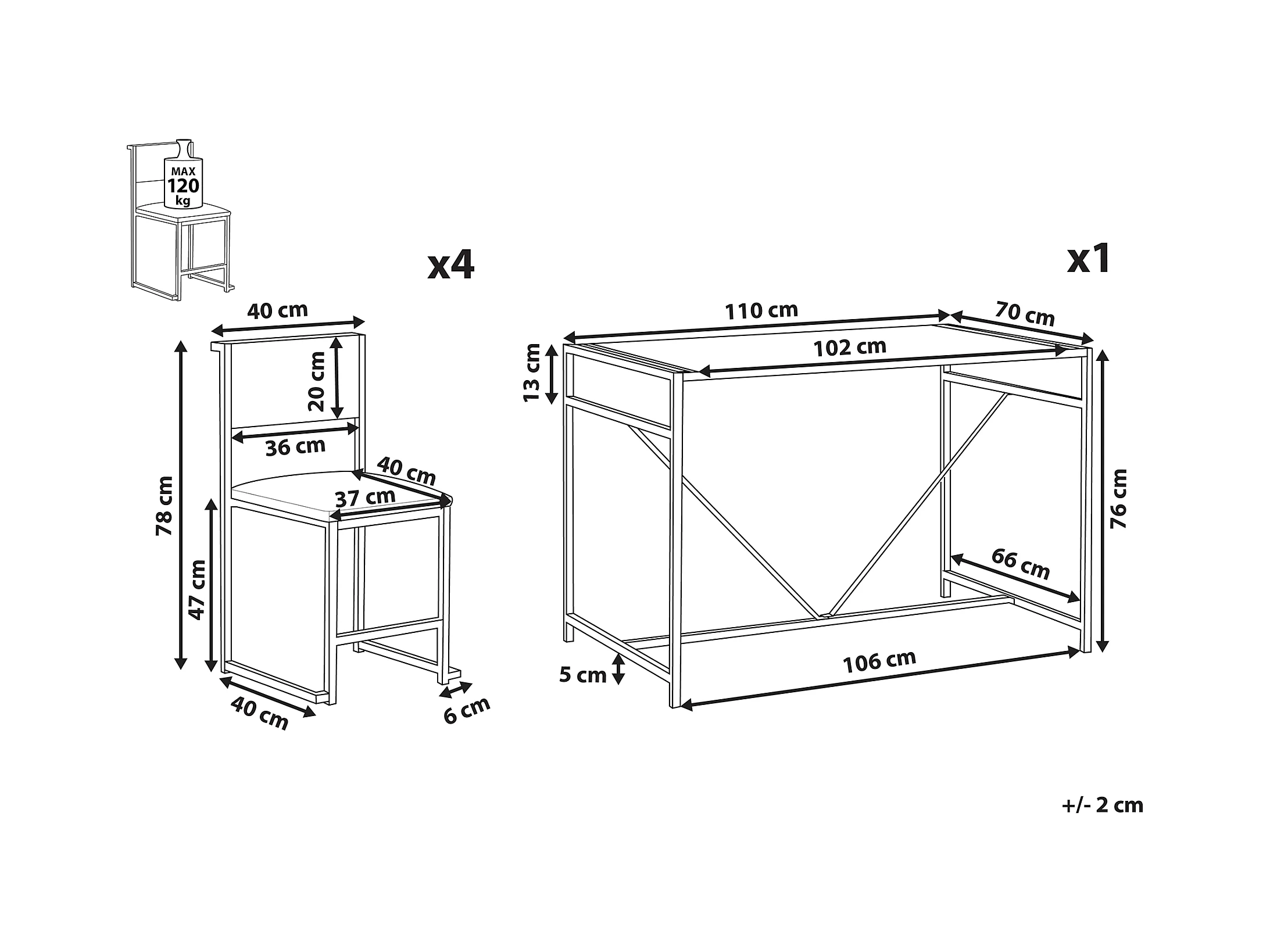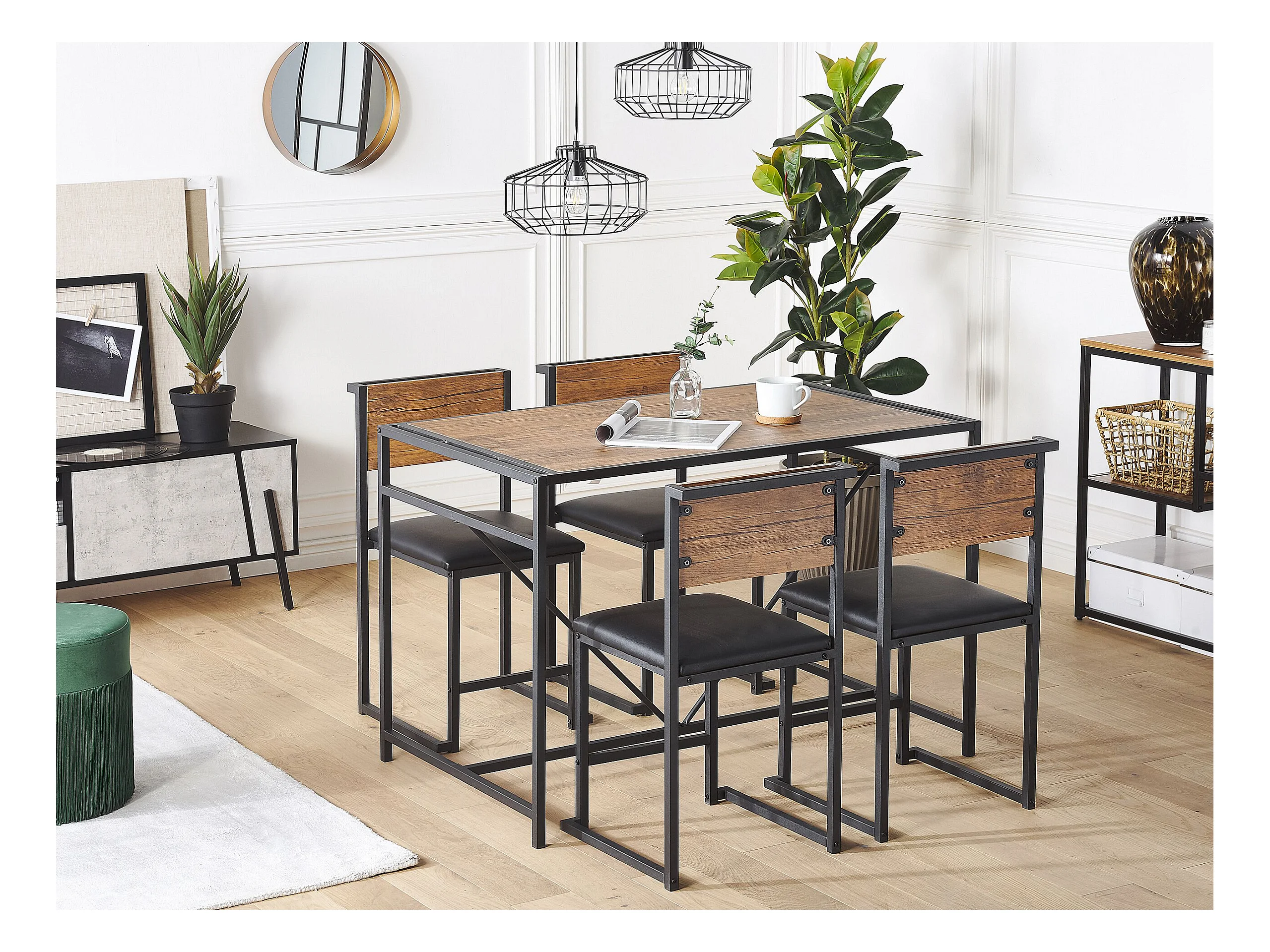 Ensemble table de salle à manger et 4 chaises effet bois foncé BURTON