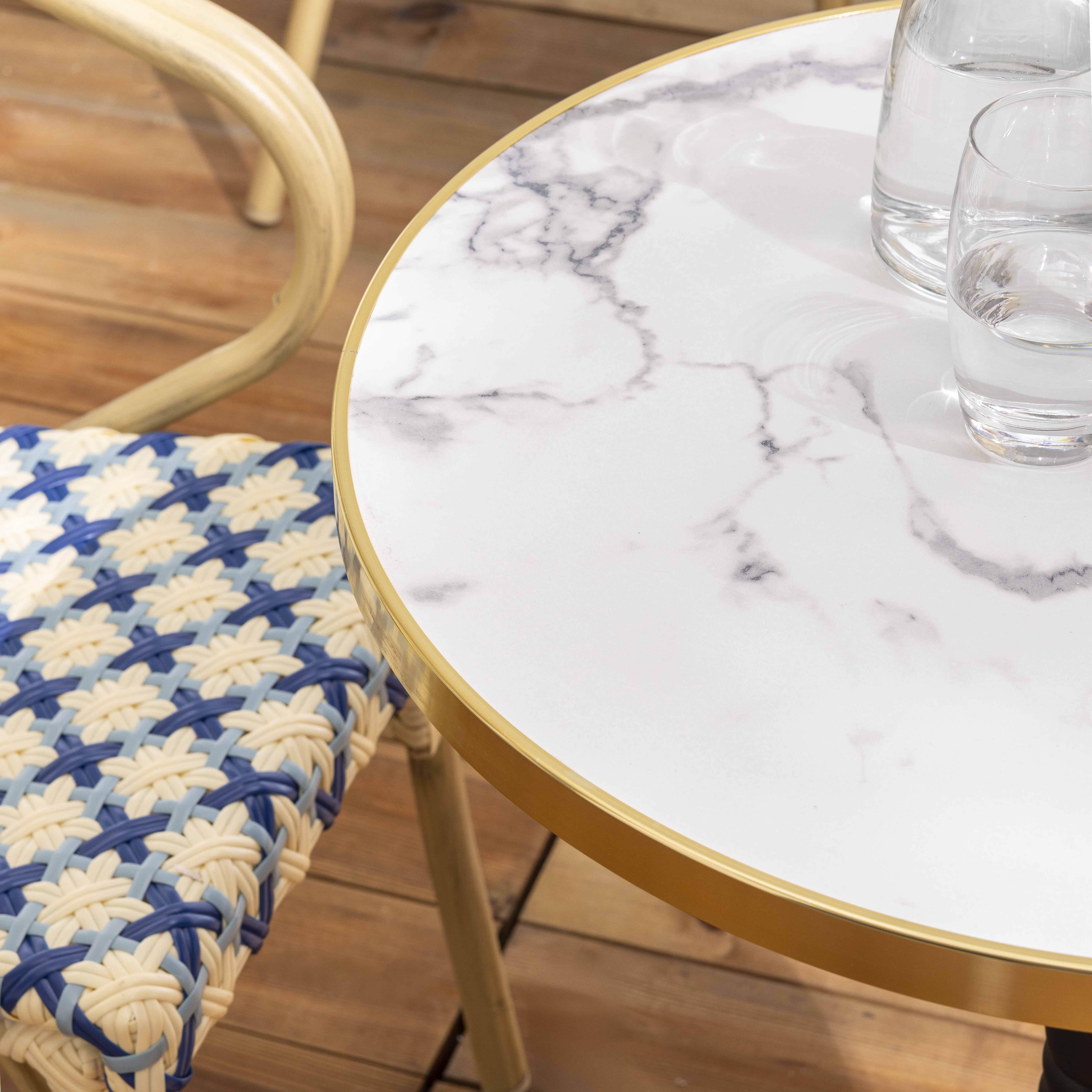 Ensemble table de terrasse marbre blanc et 2 chaises bleu