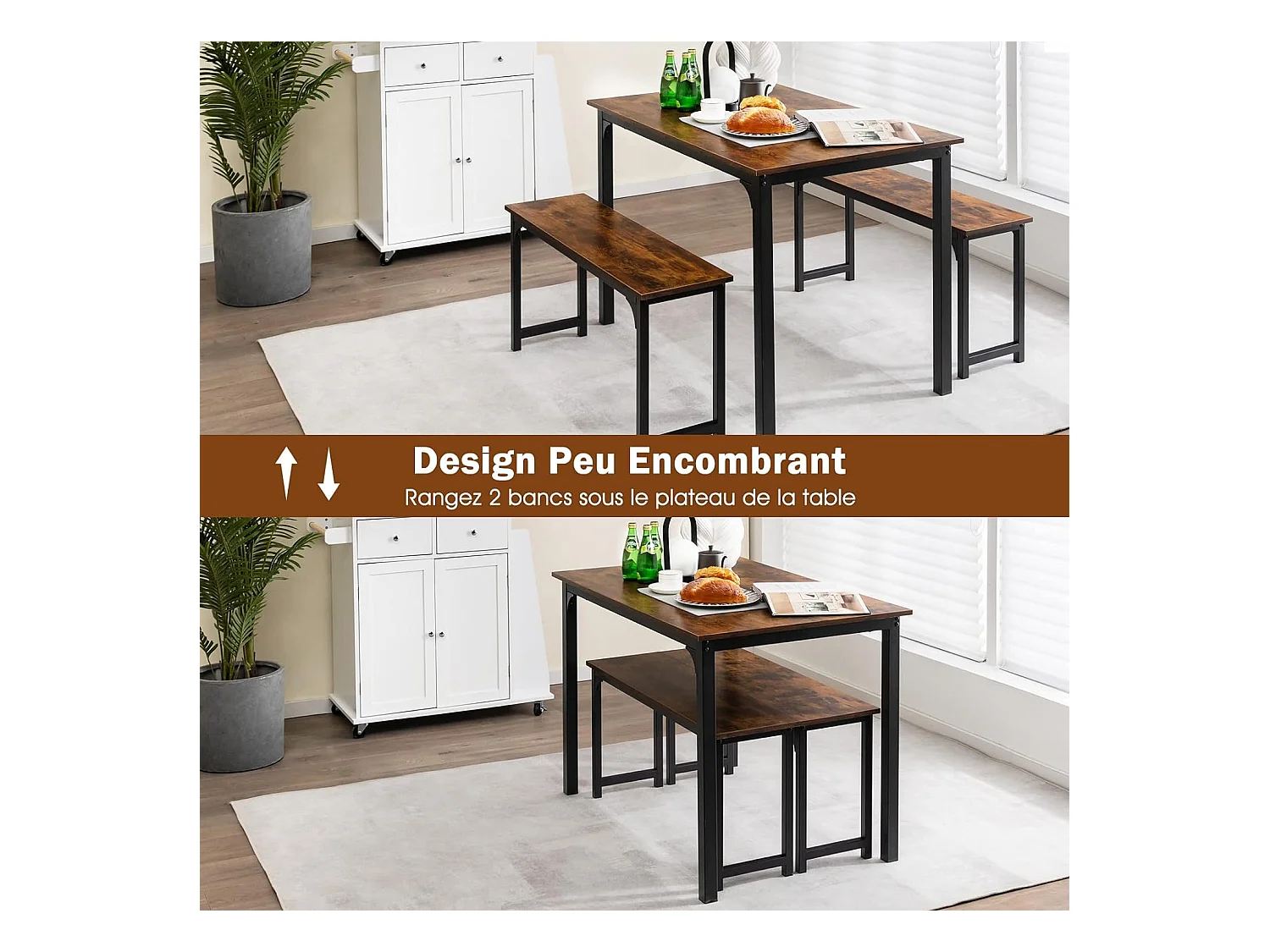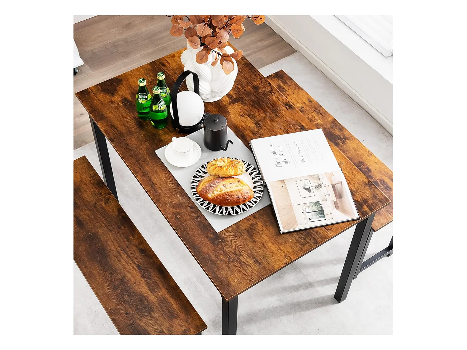 Ensemble Table et 2 Bancs Salle à Manger Industrielle, 4-6 Personnes, Table L 110 x l 70 x H 75 cm