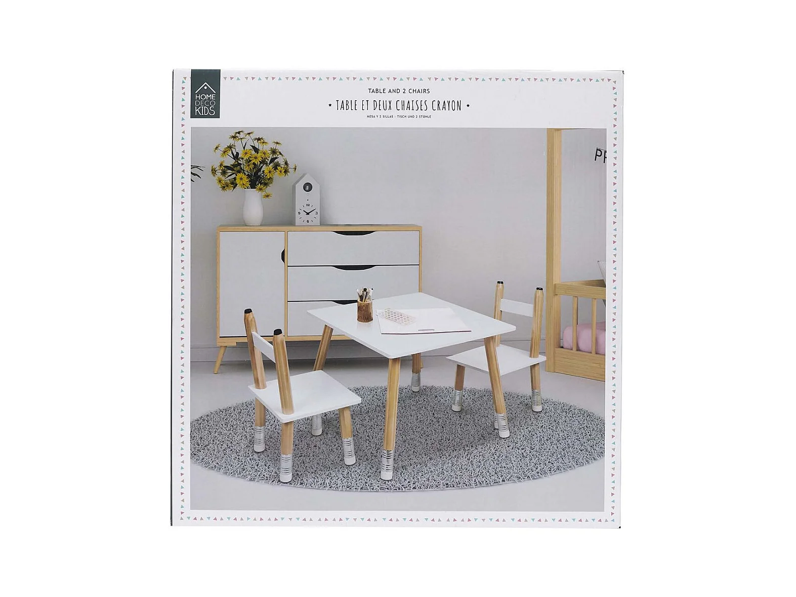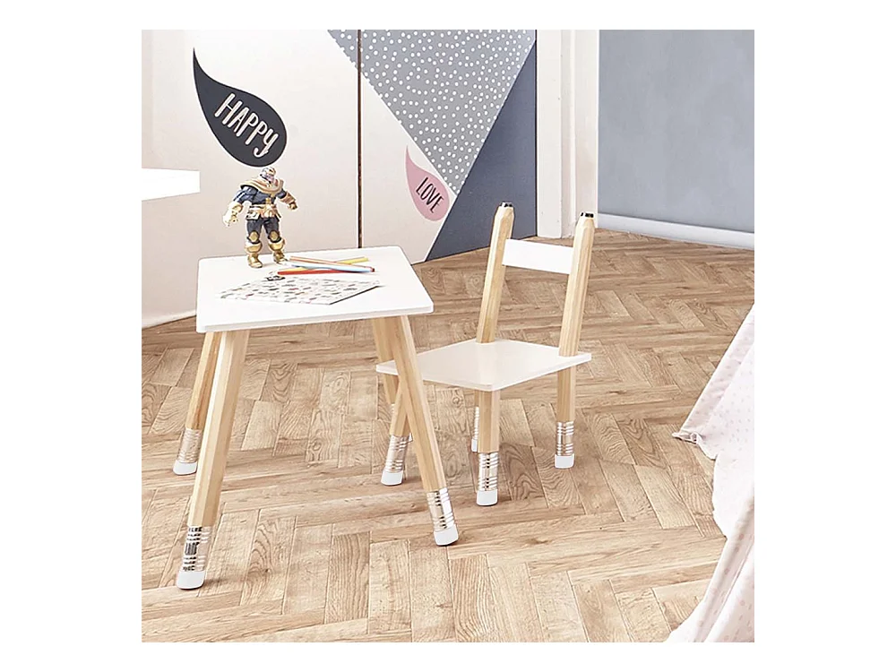 Table Et 2 Chaises Crayon Blanc, Marron