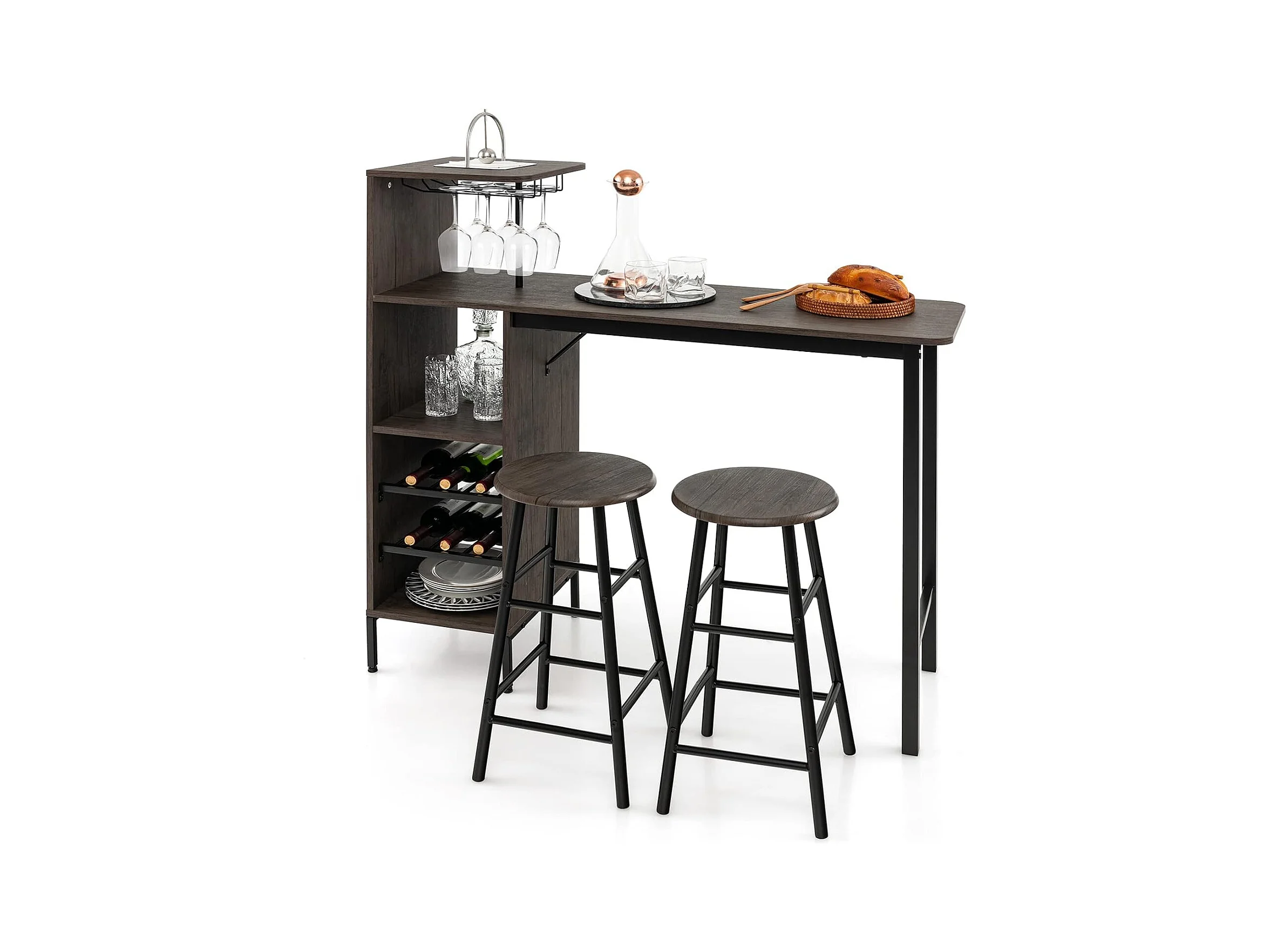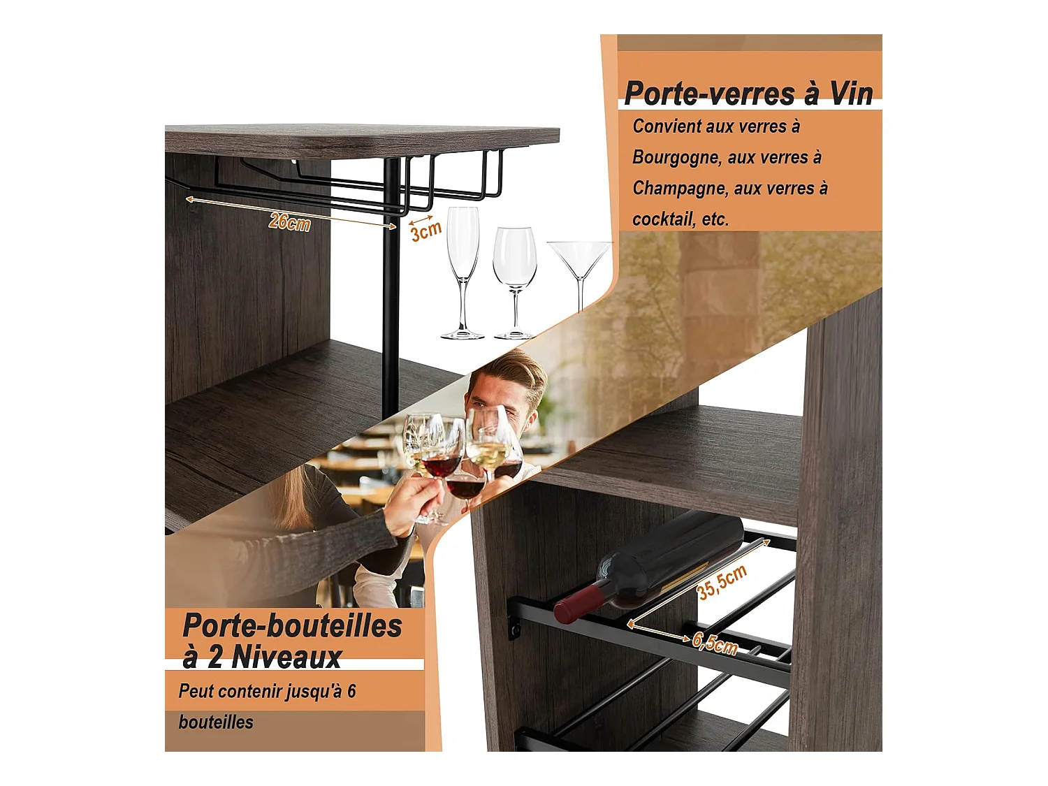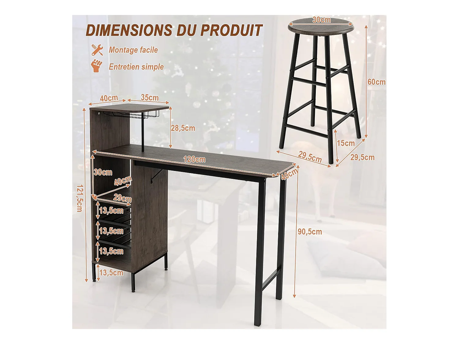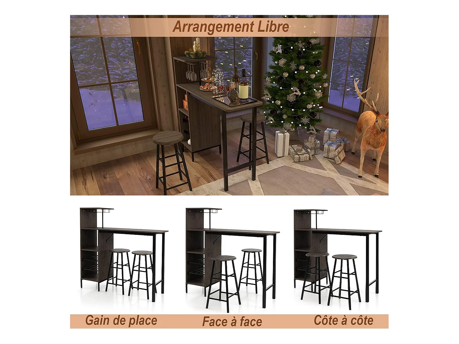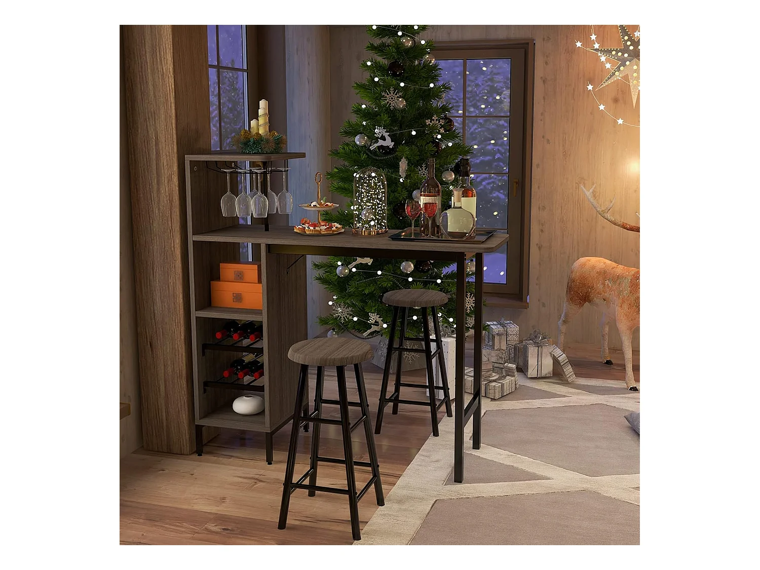 Table Haute avec Tabouret, avec Porte-Verre Porte-Bouteilles, Table de Bar avec Tabouret 2 Personnes Compact, Brun Rustique