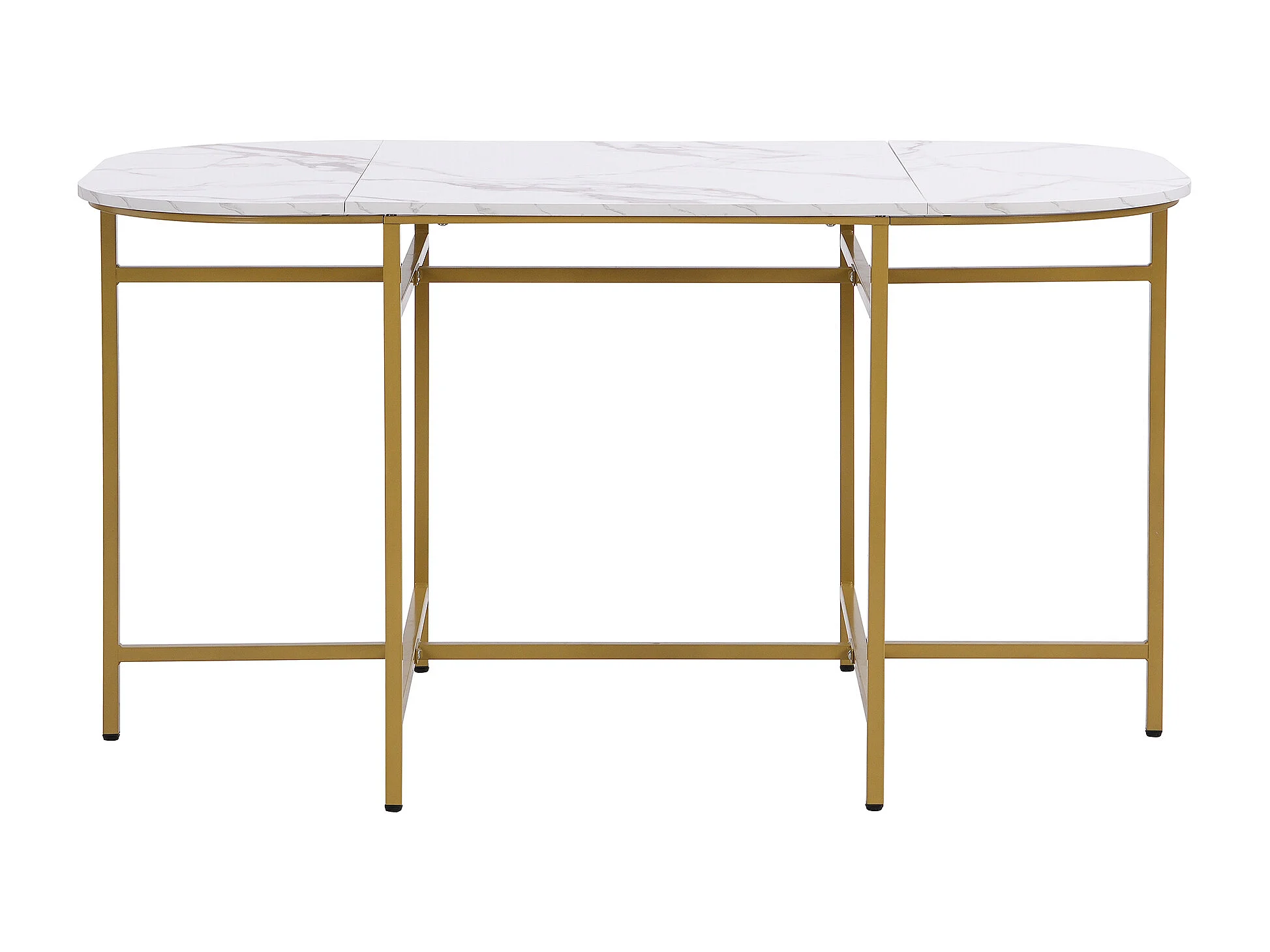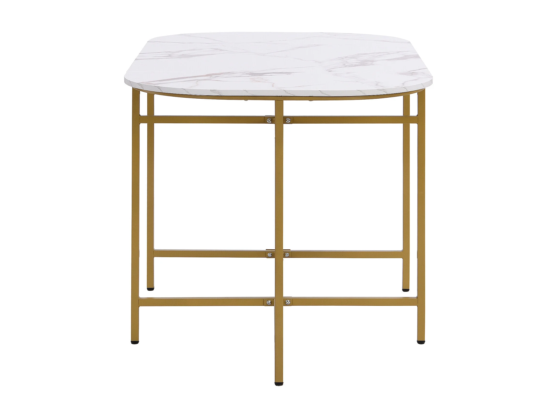 Ensemble table et 6 chaises - Plateau effet marbre blanc - Structure en métal doré