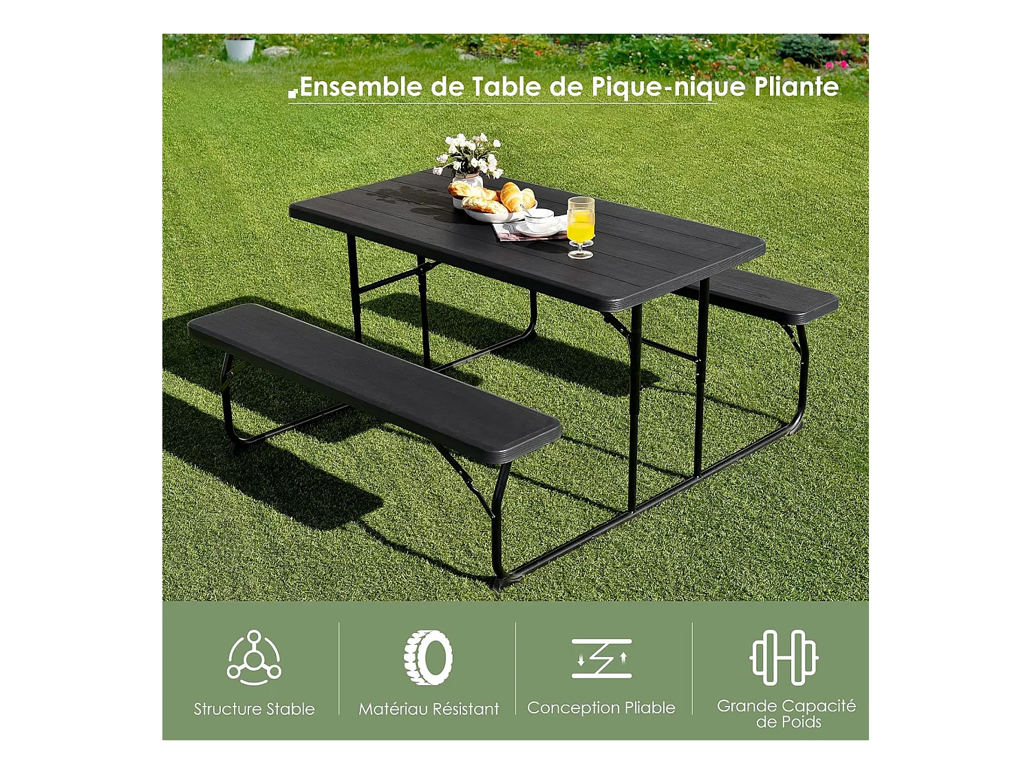 Ensemble Table et Bancs Pliant de Pique-Nique avec Cadre en Métal, Banc Charge 250KG