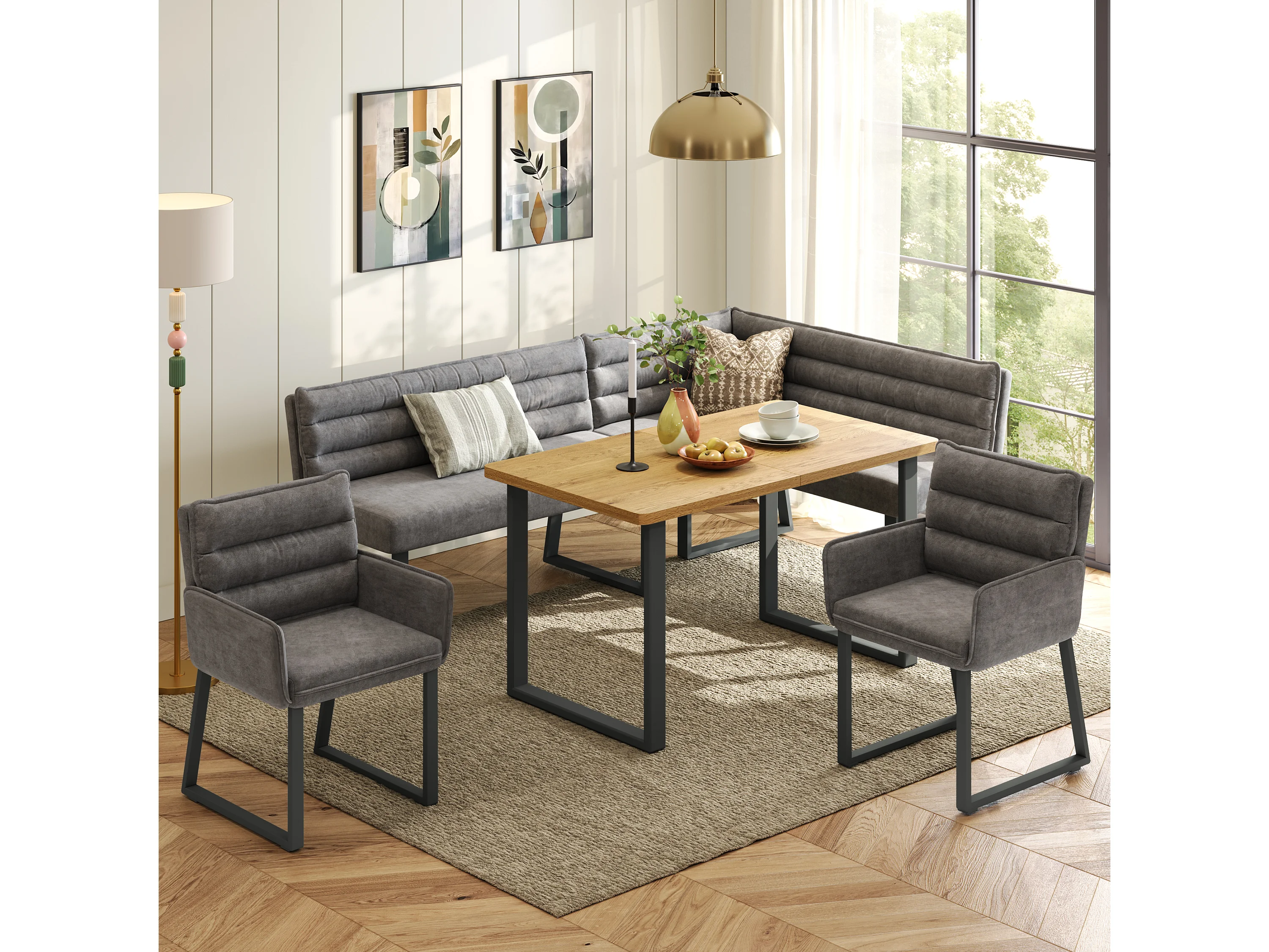 Ensemble table et chaise de salle à manger - avec un banc d'angle + 2 chaise + 1 table - chenille + MDF - gris