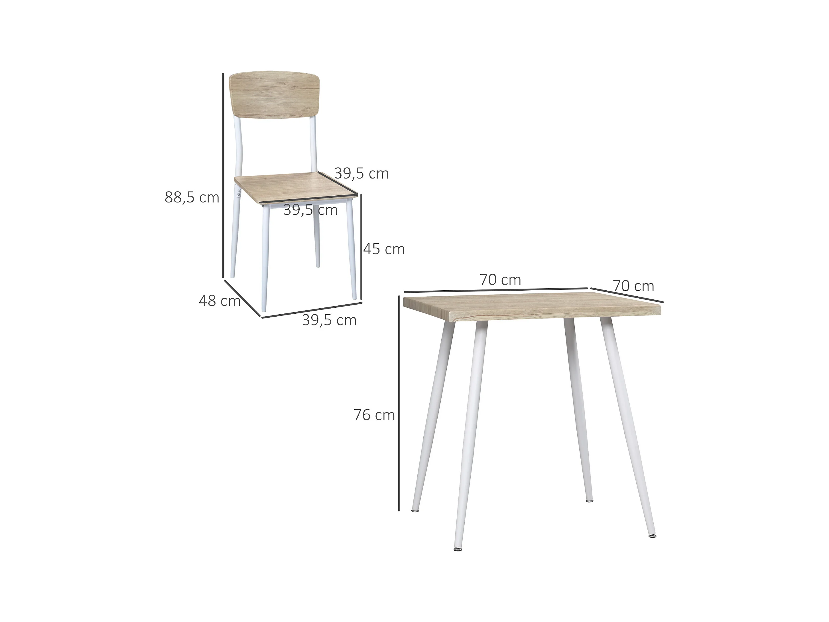 Ensemble table et chaises 3 pièces style nordique piètement effilé acier blanc aspect bois clair