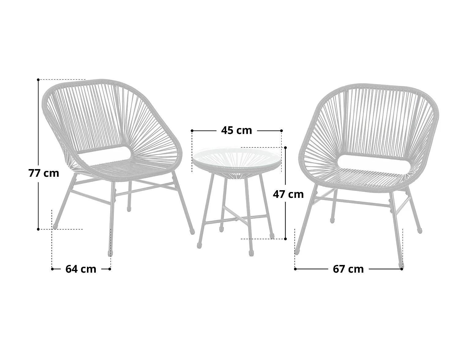 Fortunato Ensemble de bar de jardin avec coussins 3 pcs Gris