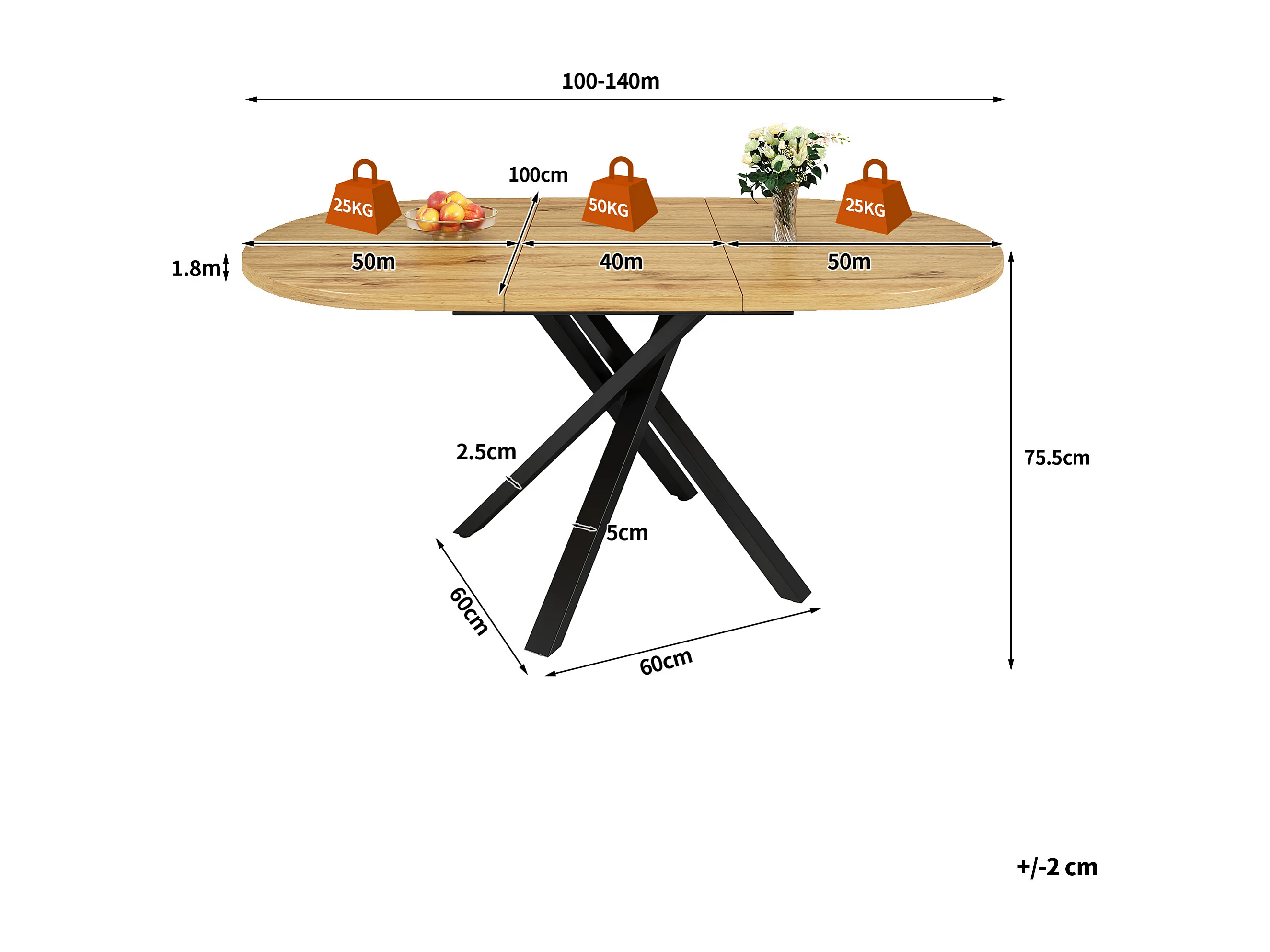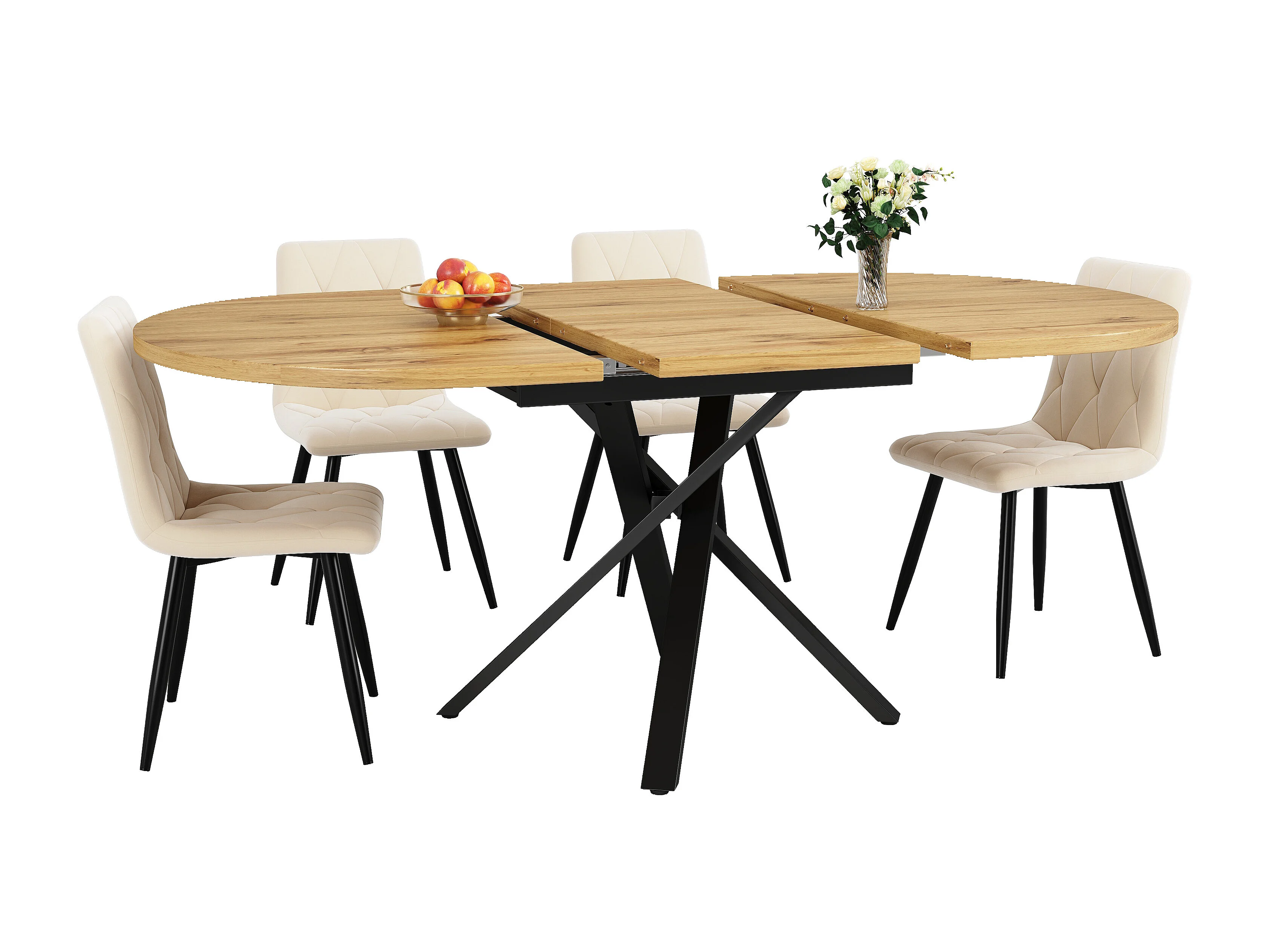 Ensemble table et chaises de salle à manger(5 pièces) - avec table extensible(110-140) + 4 chaises - structure en métal - naturel