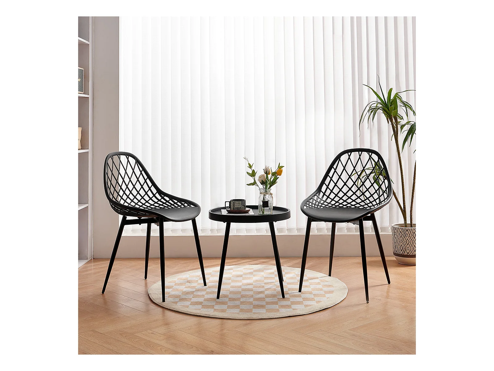 Ensemble table et 2 chaises, fauteuils lounge avec accoudoirs et pieds en métal, chaises de cuisine pour bureau, cuisine, noir