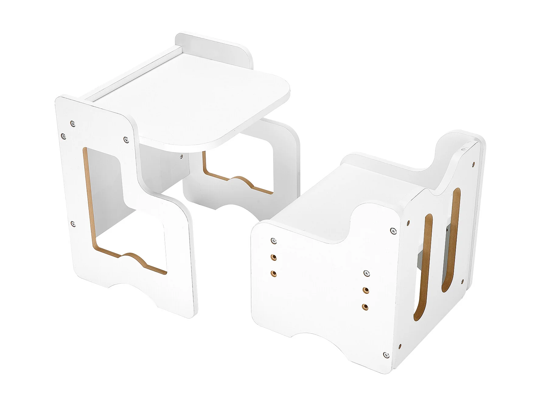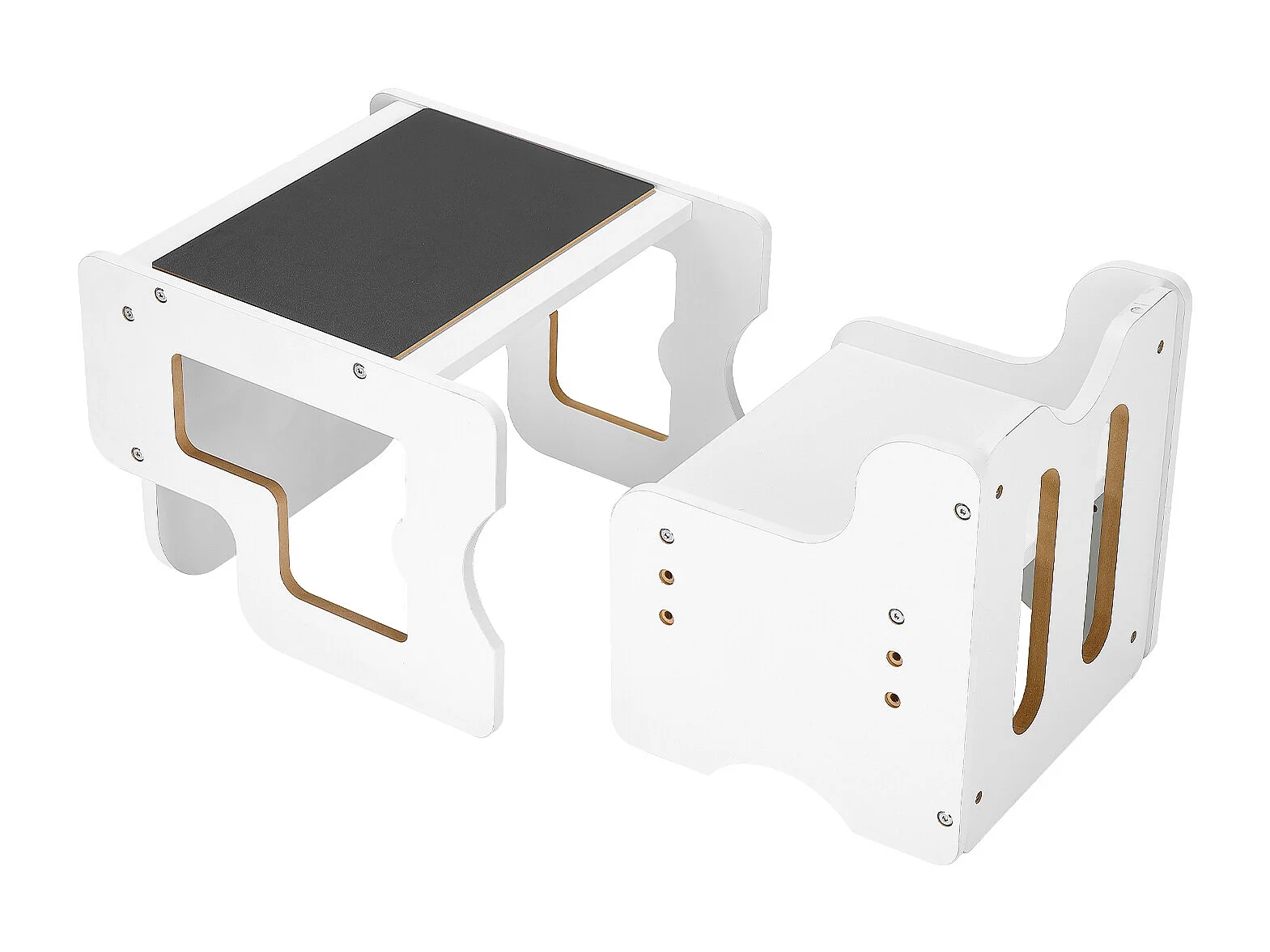 Ensemble Table et Chaises de Sevrage SucceBuy, Bureau Montessori pour Tout-Petits avec Tableau Noir, Blanc