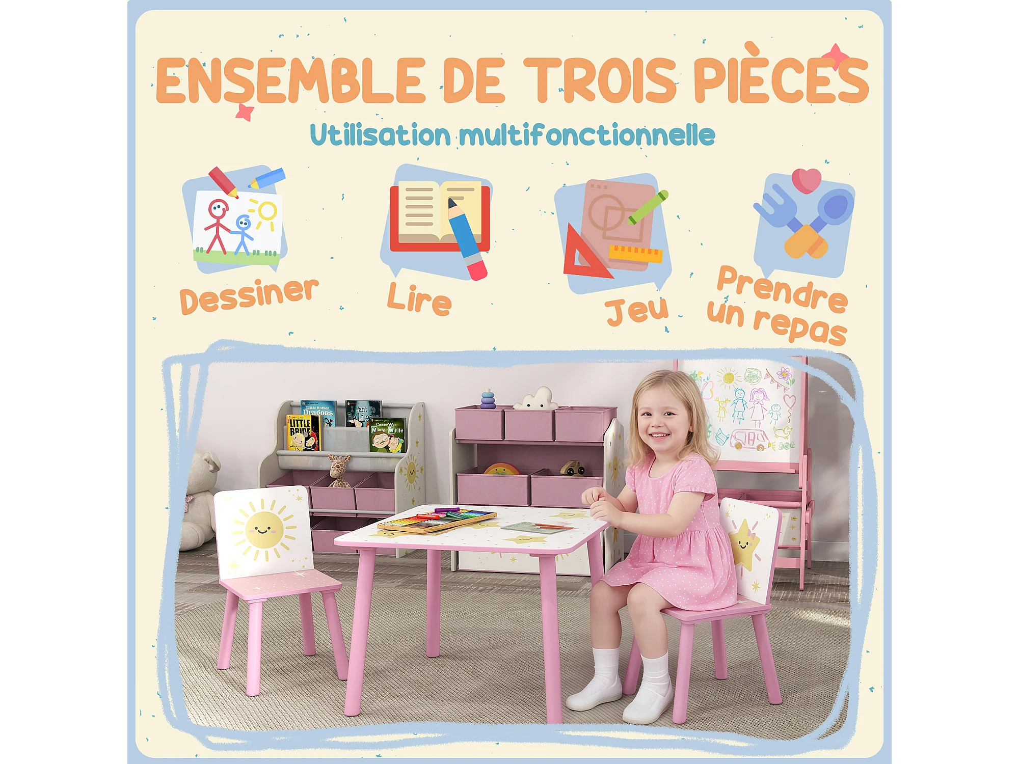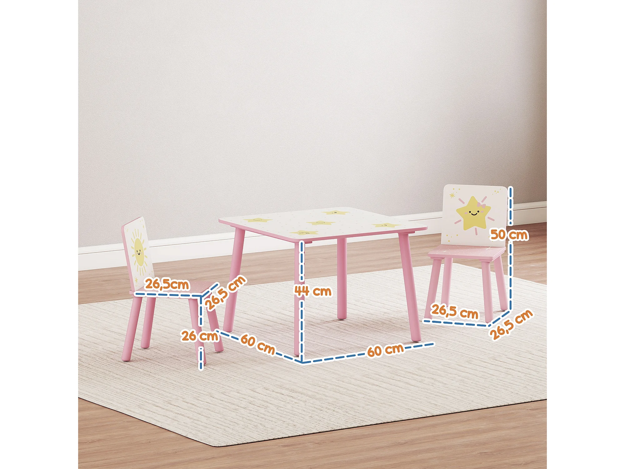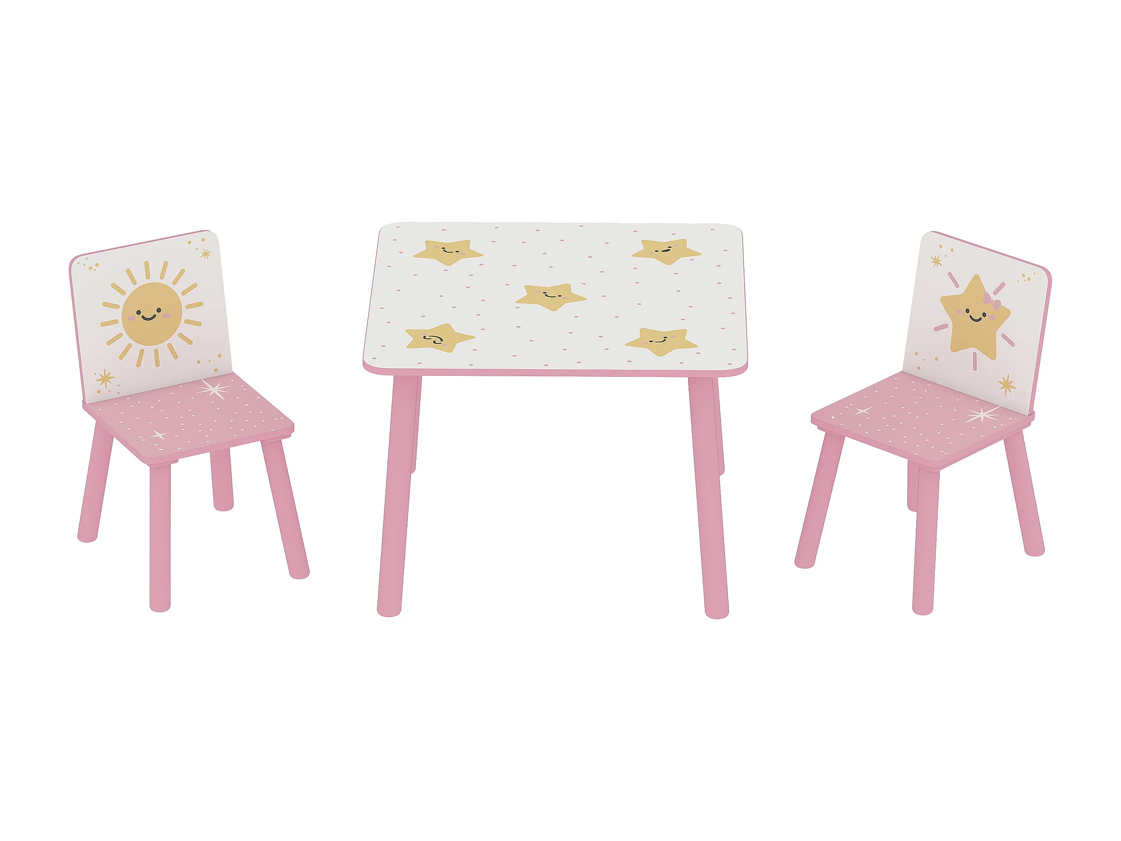 Ensemble table et chaises enfant design étoiles soleil bois pin MDF blanc rose