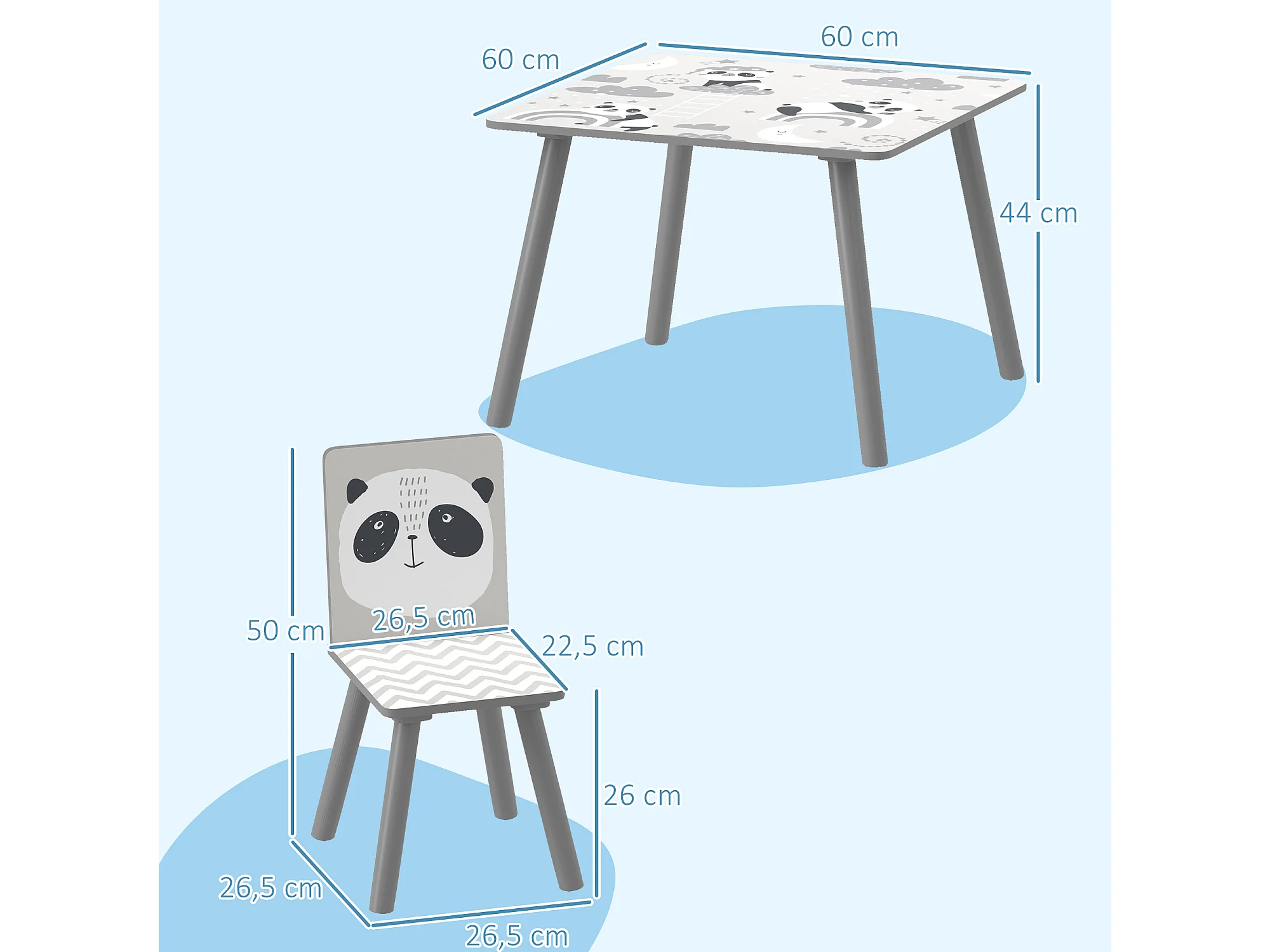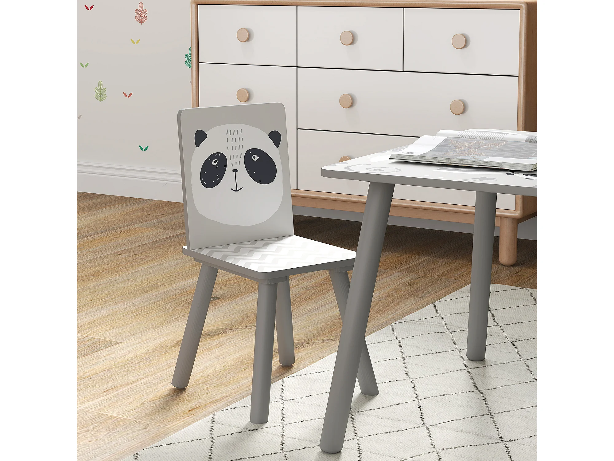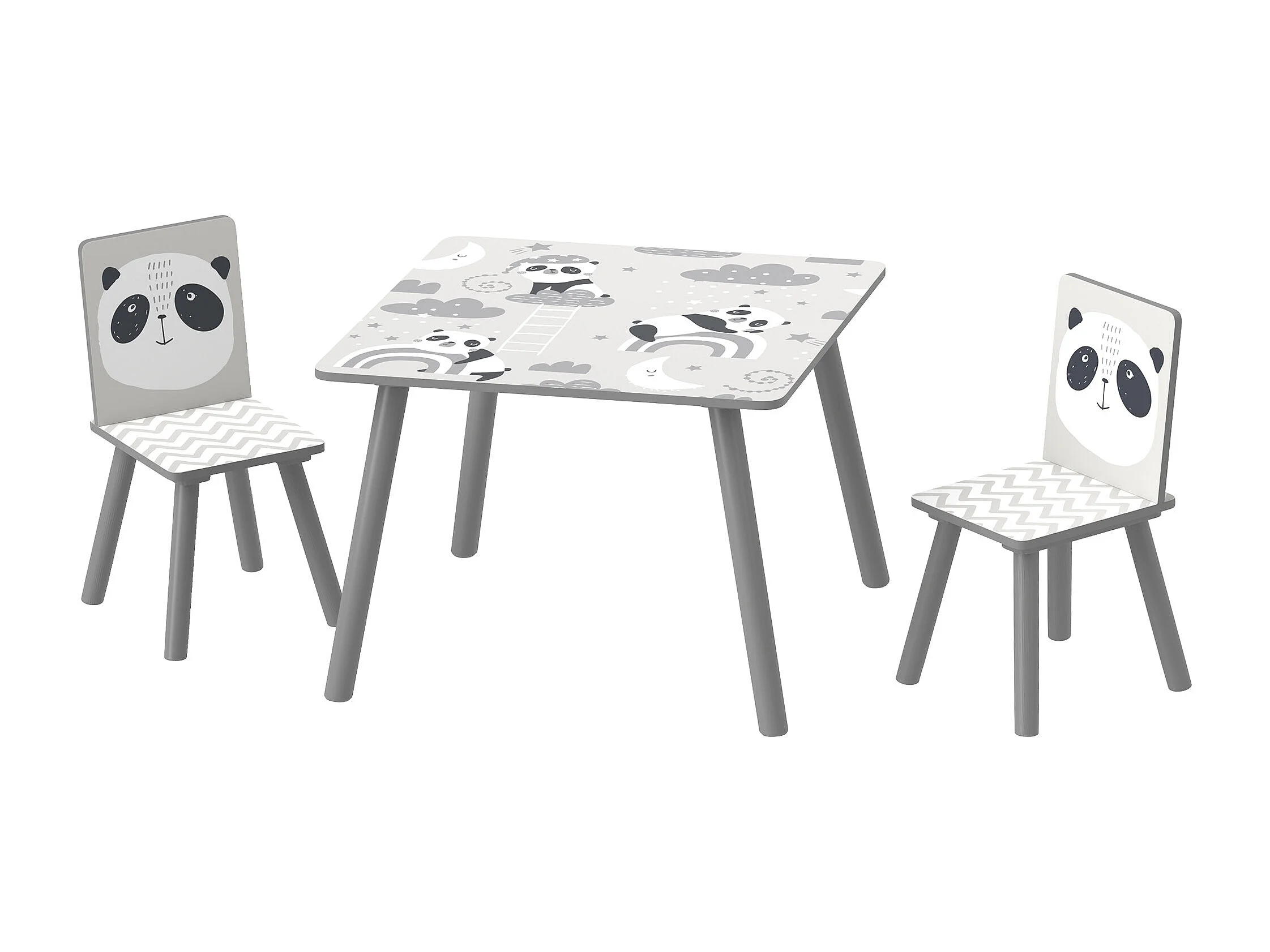 Ensemble table et chaises enfant design panda - table carrée + 2 chaises - bois pin MDF gris