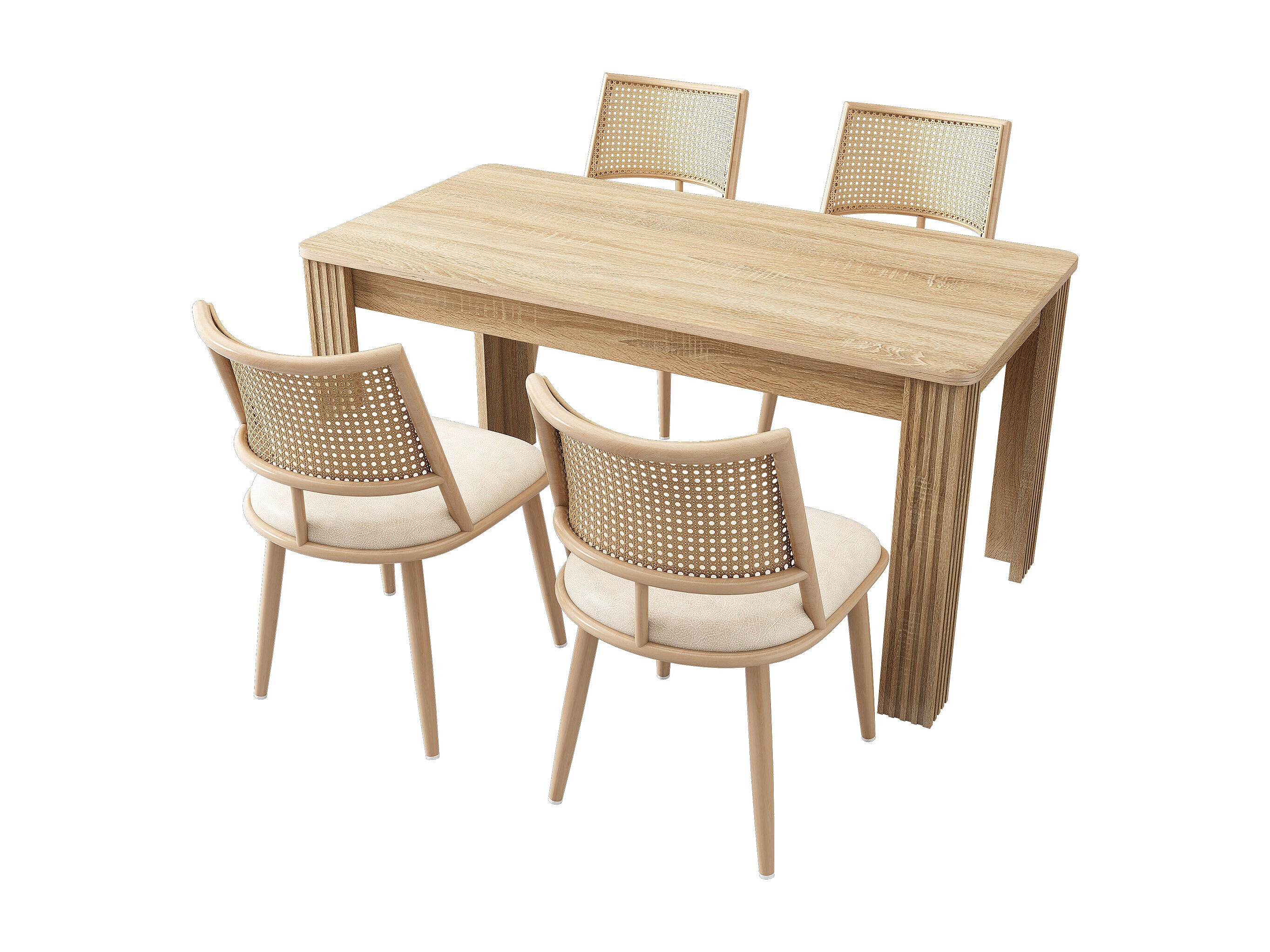 Ensemble table et chaises - table moderne + 4 chaises dossier en rotin de salon et de chambre - beige + naturel