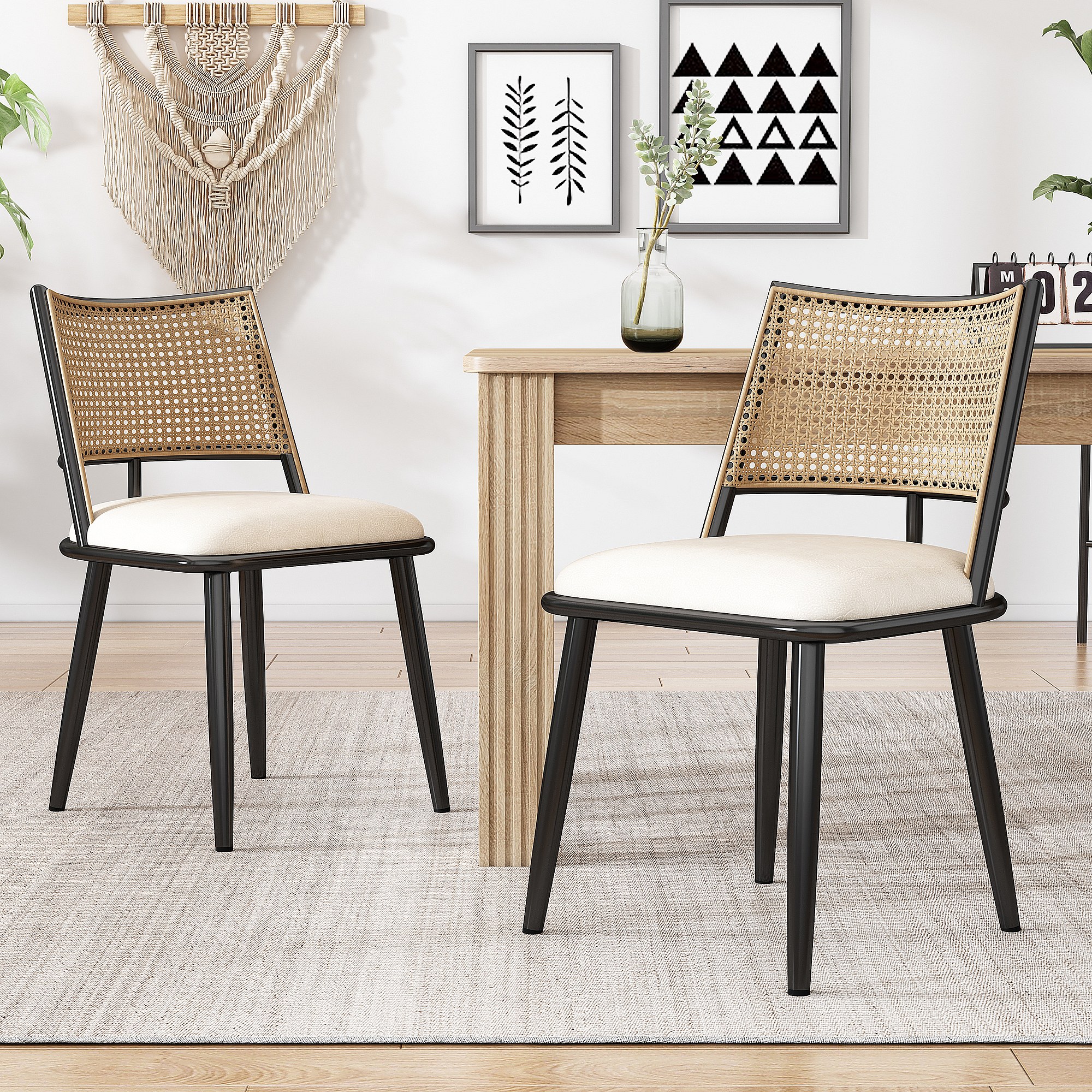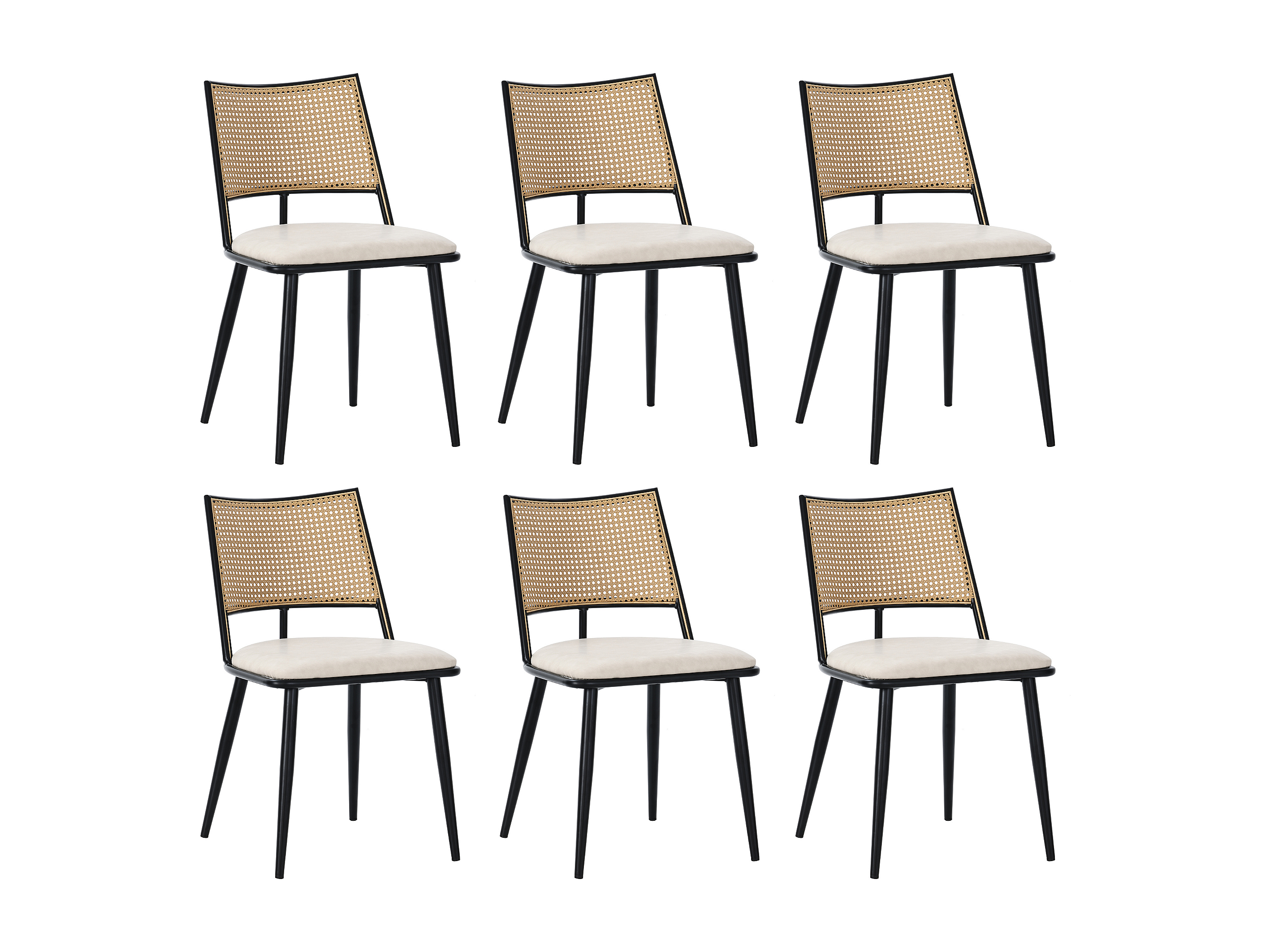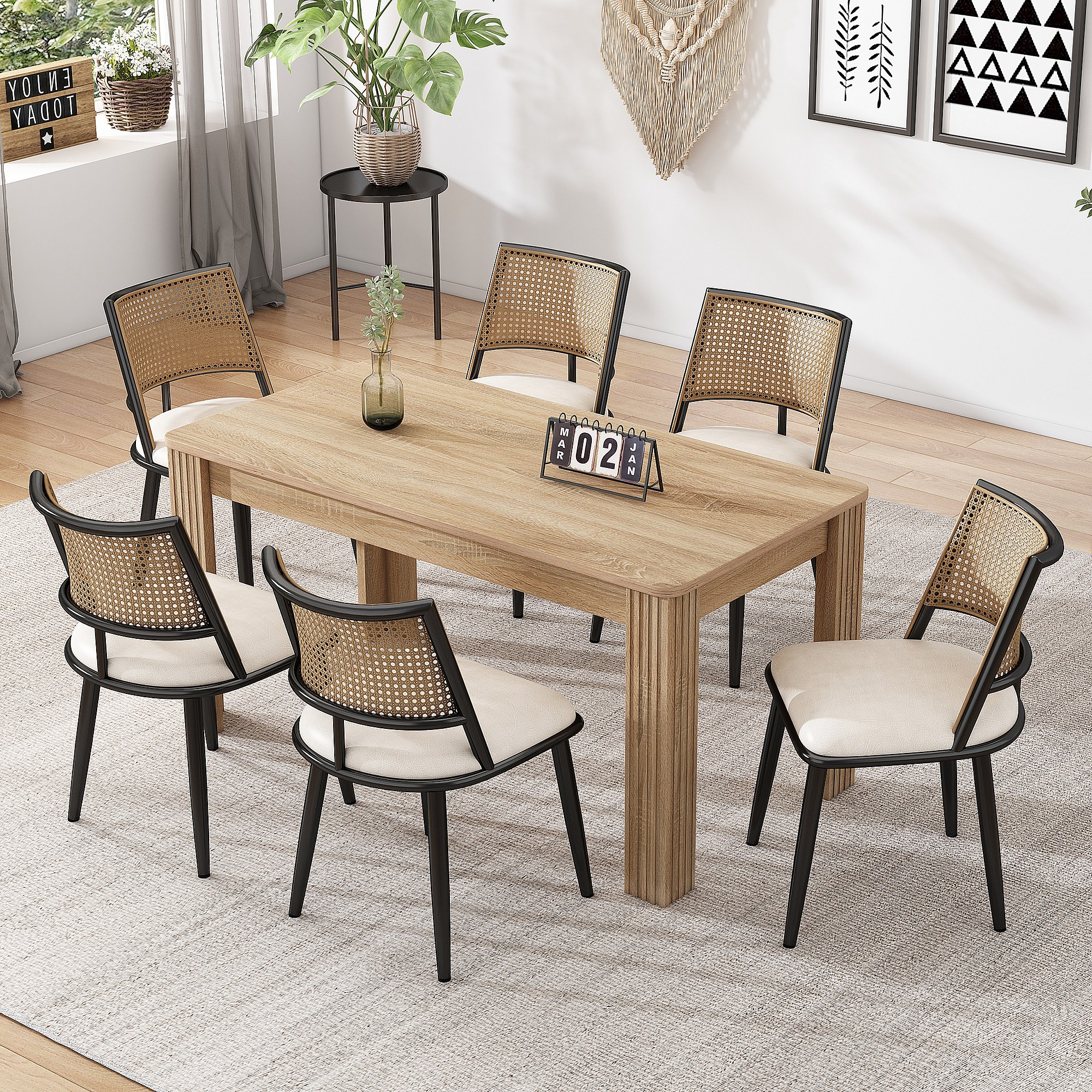 Ensemble table et chaises - table moderne + 6 chaises dossier en rotin de salon et de chambre - noir + naturel
