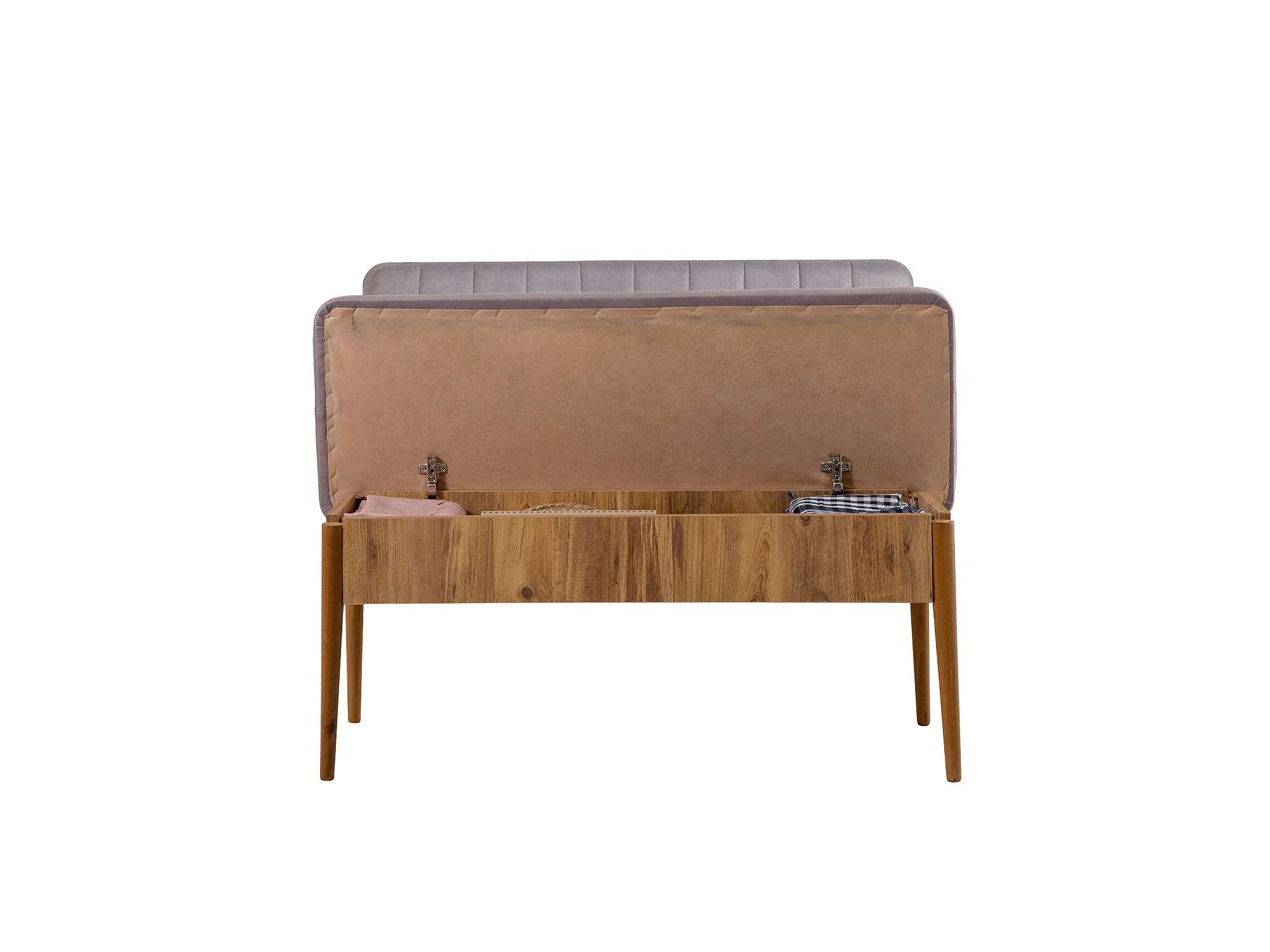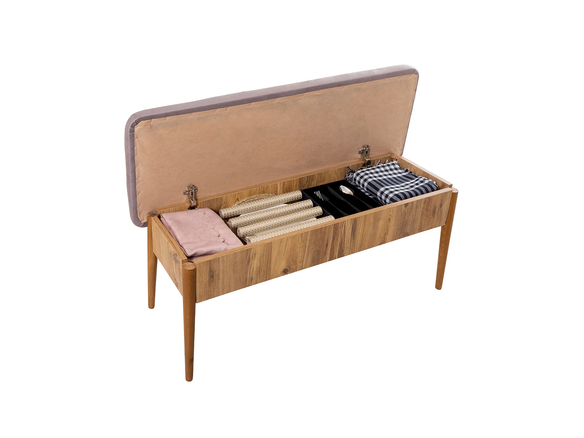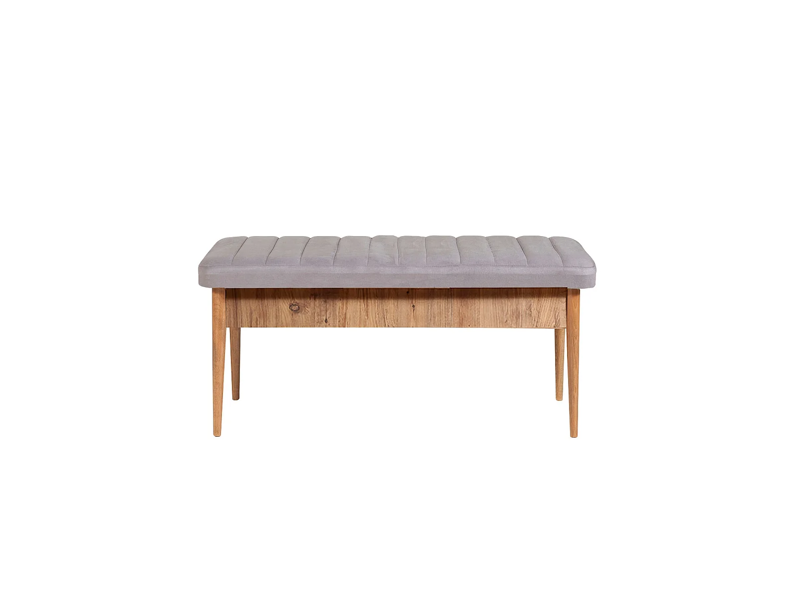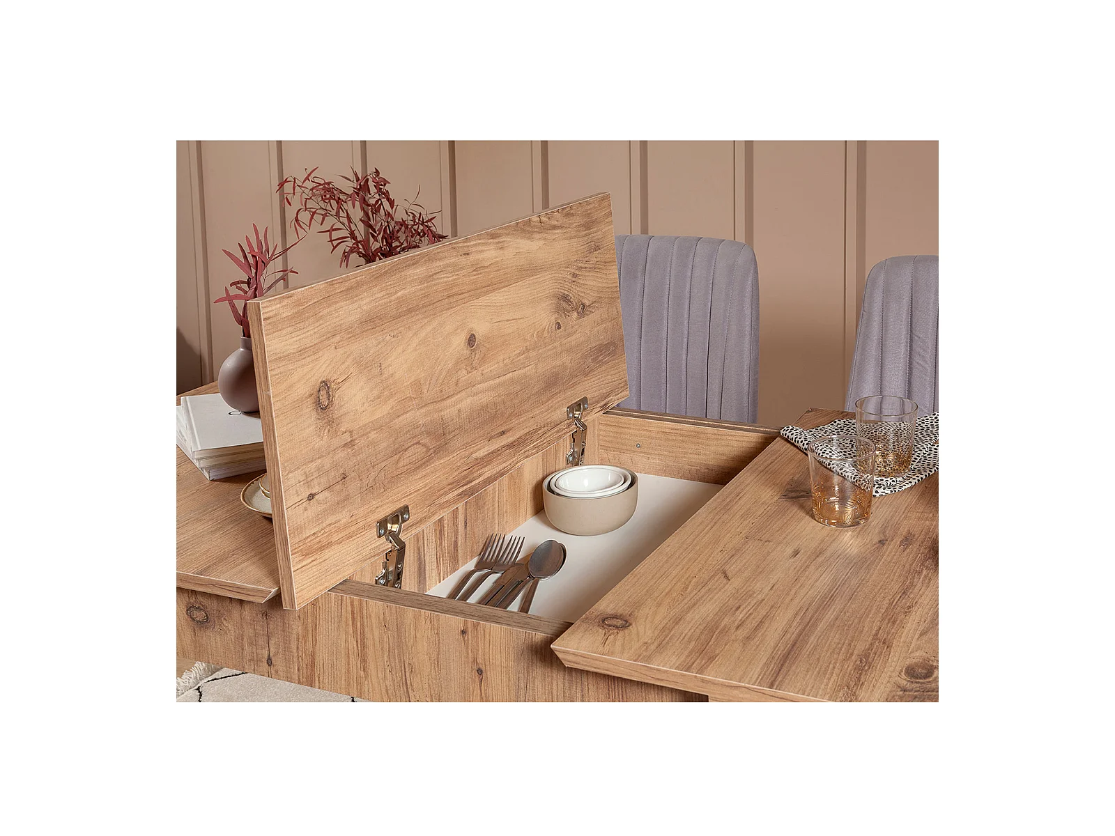 Ensemble table extensible 2 chaises et 2 bancs bois naturel et tissu gris Mariva