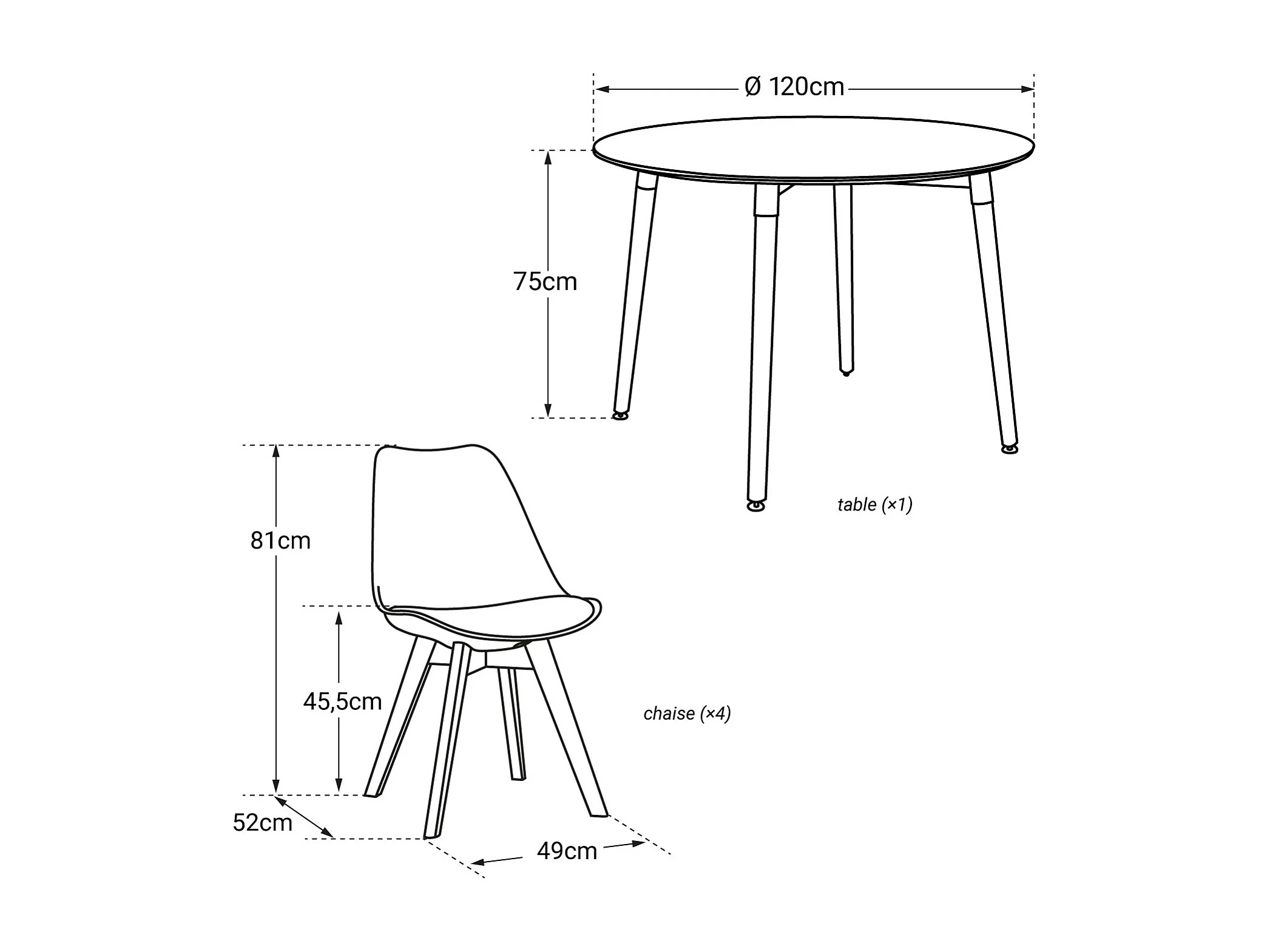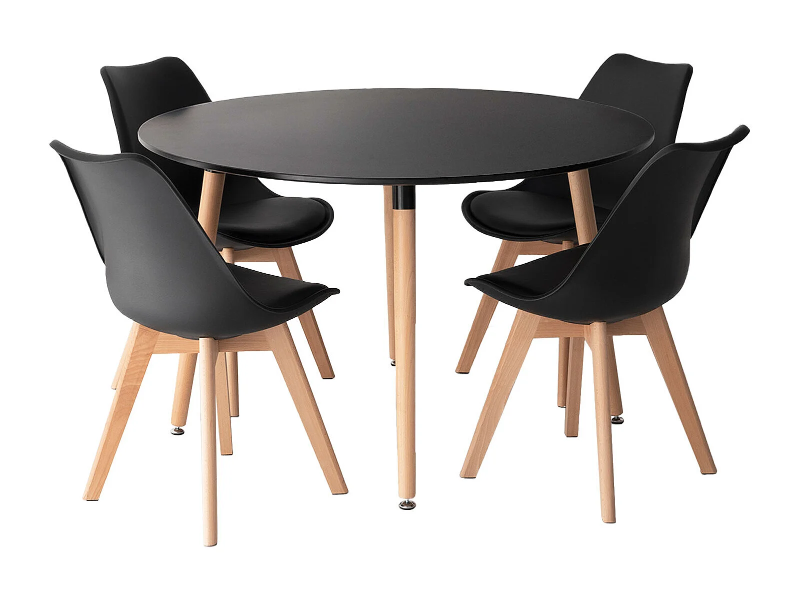 Ensemble table ronde 120cm MARTHA et 4 chaises NORA noir