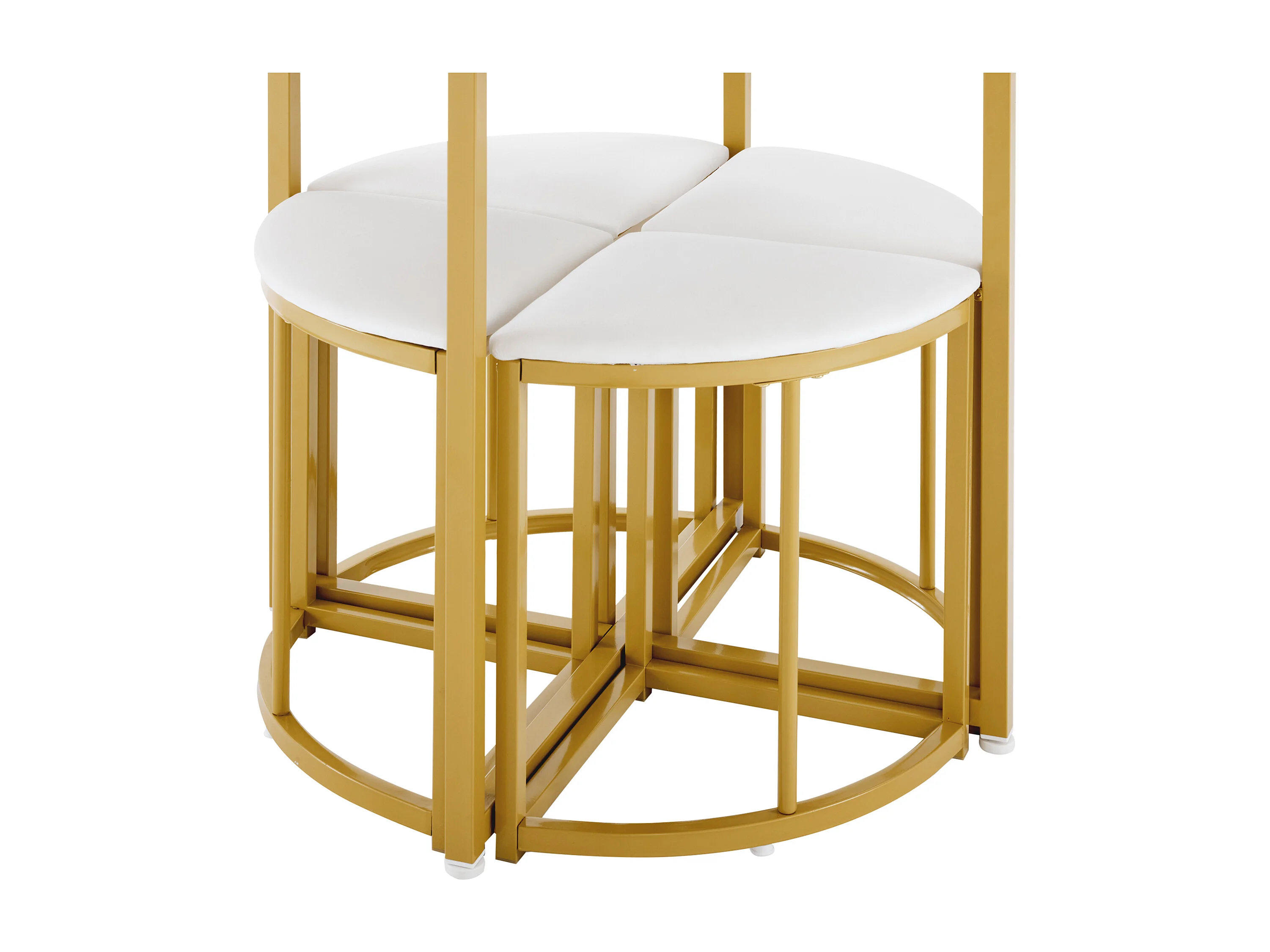 Ensemble table ronde avec 4 chaises en velours blanc - Cadre métal doré