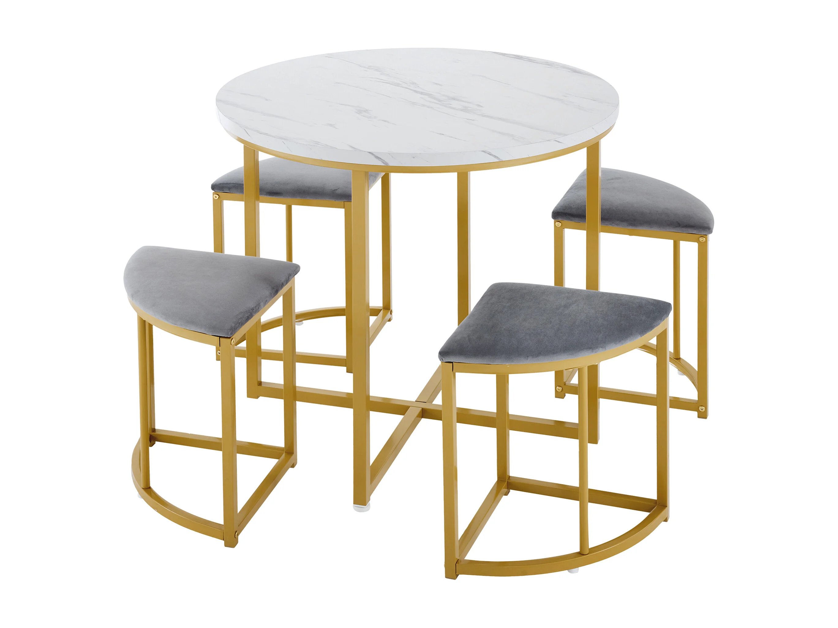 Ensemble table ronde avec 4 chaises en velours gris - Cadre métal doré