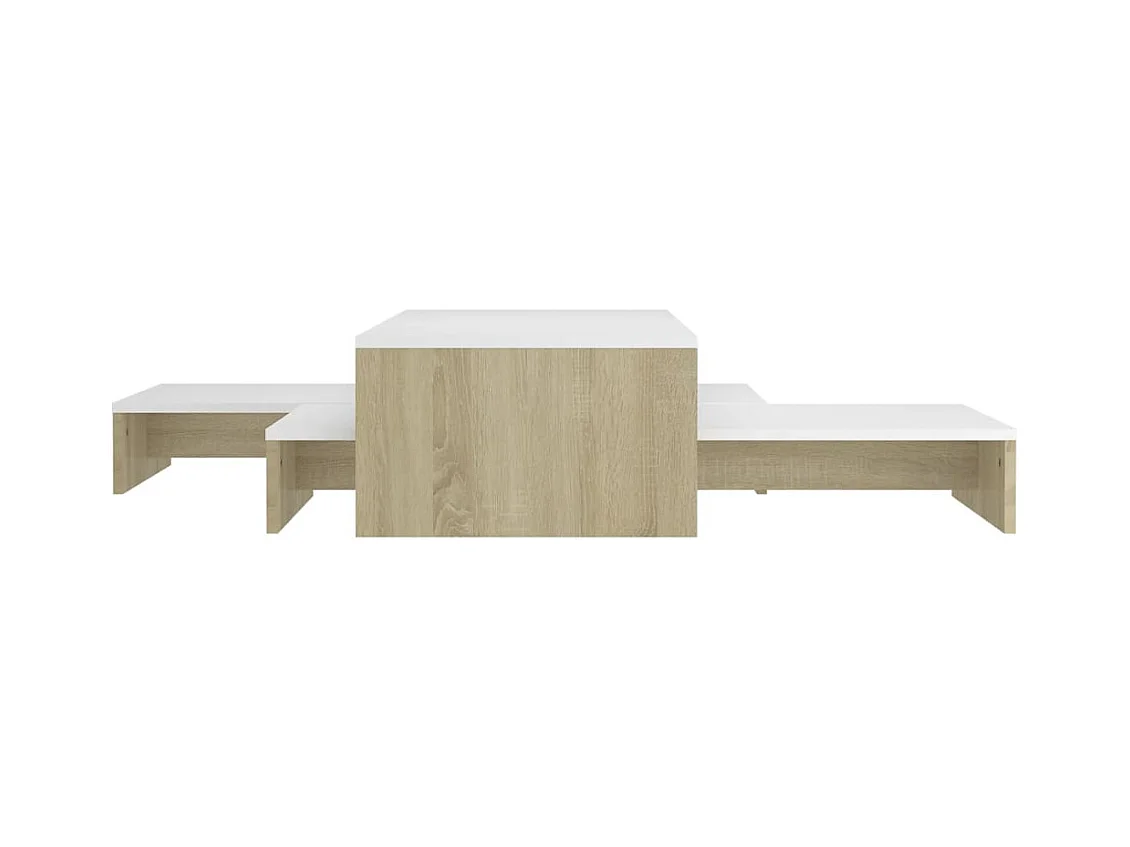 Ensemble tables basses gigognes Blanc et chêne 100x100x26,5 cm