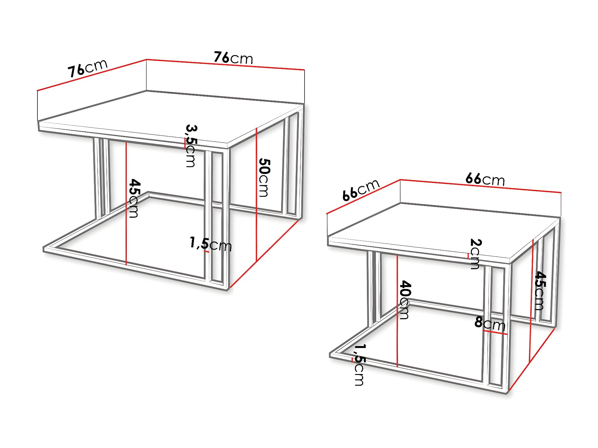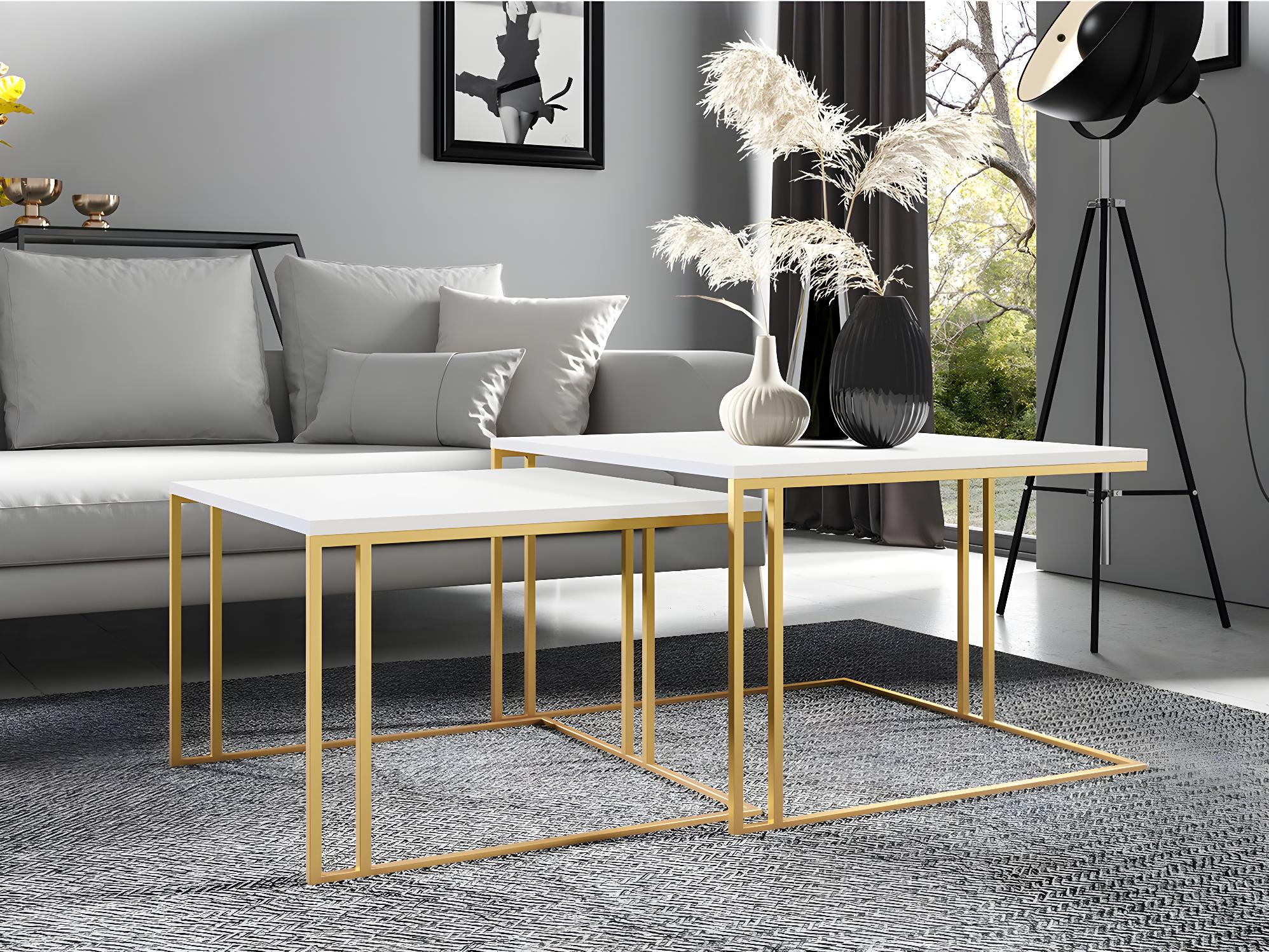 Ensemble tables basses Comfivo 178, Or|Blanc, 50x76x76cm, Stratifié, D'angle