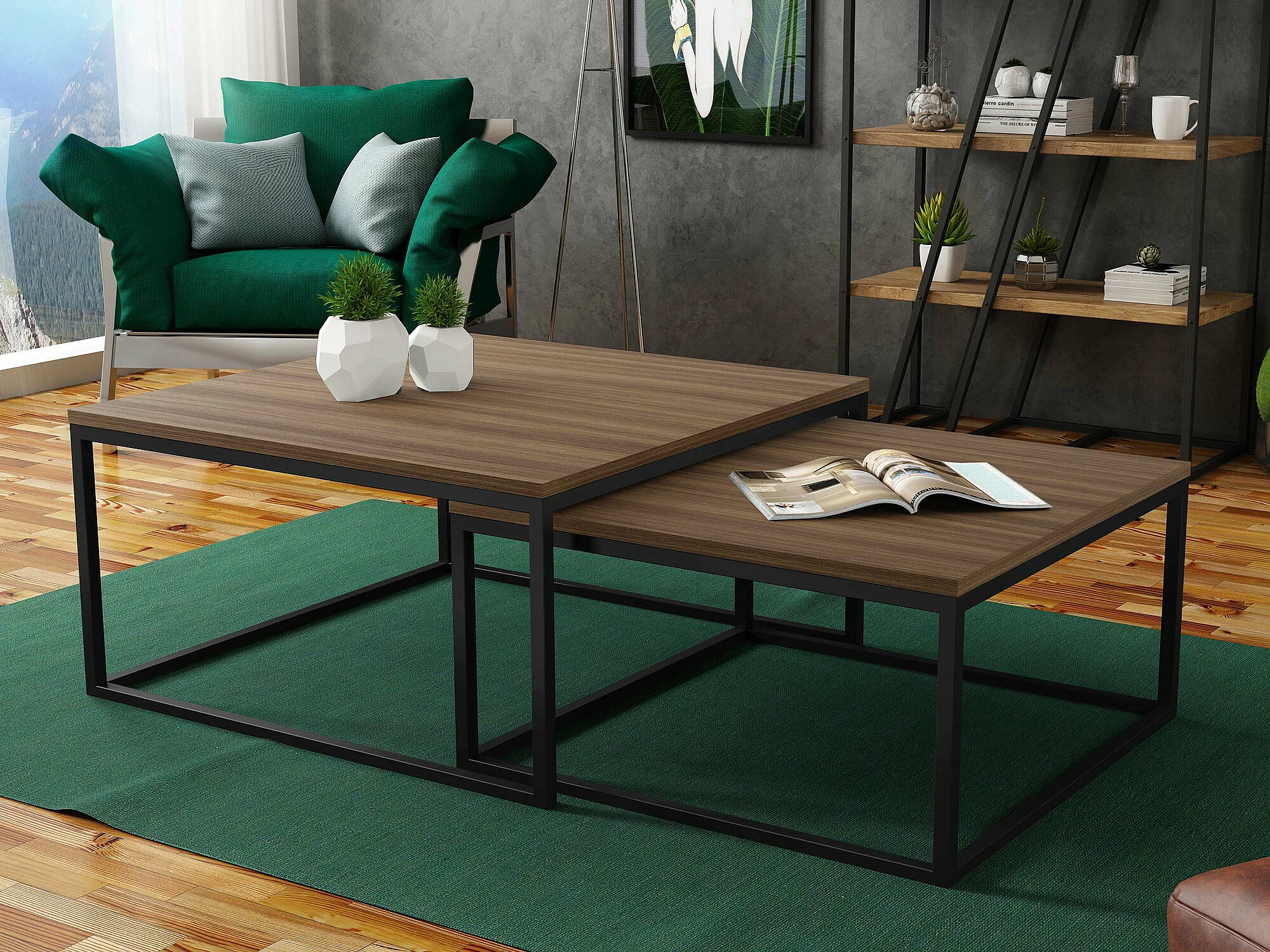 Ensemble tables basses Oswego 101, Noir|Noyer, 39x76x76cm, Stratifié, Angulaire