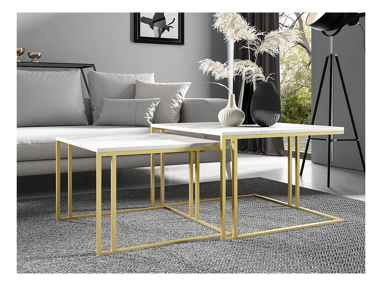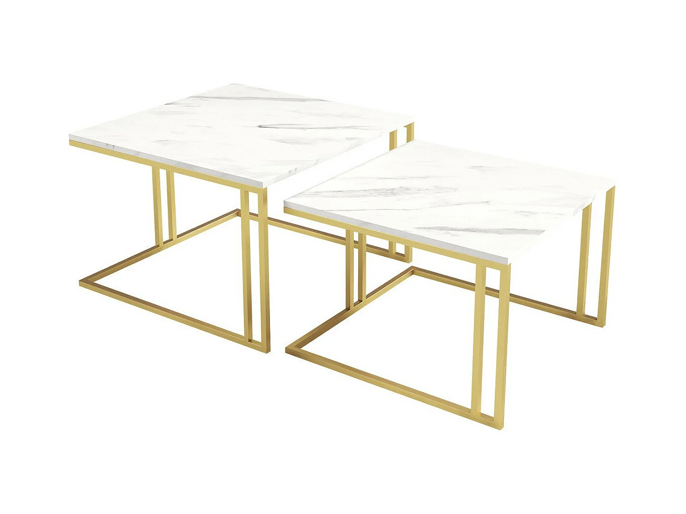 Ensemble tables basses Oswego 110, Doré|Marbre blanc, 50x76x76cm, Stratifié, Angulaire