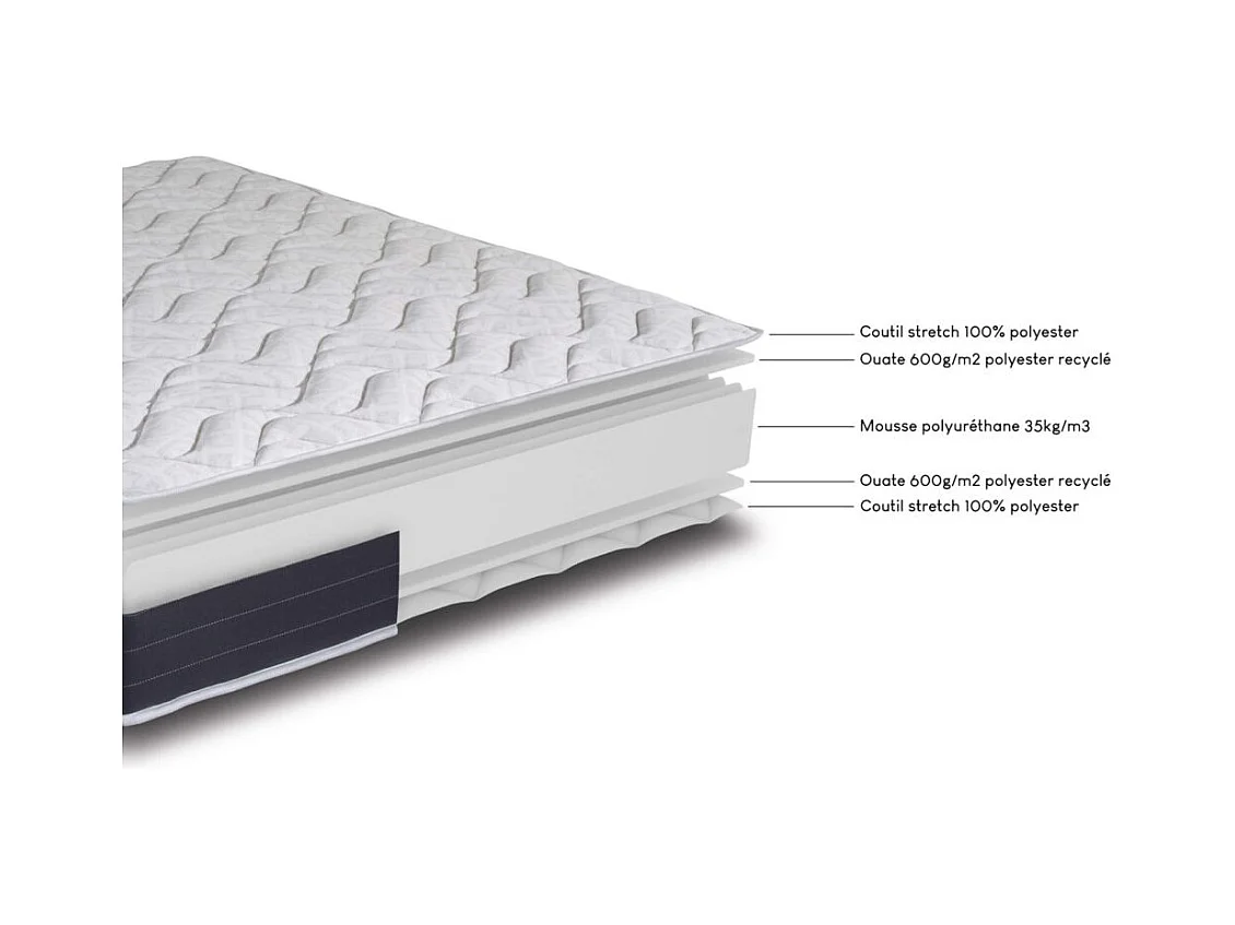 Matelas + sommier tapissier 160x200 Mousse - Melior - Soutien ferme - Blanc