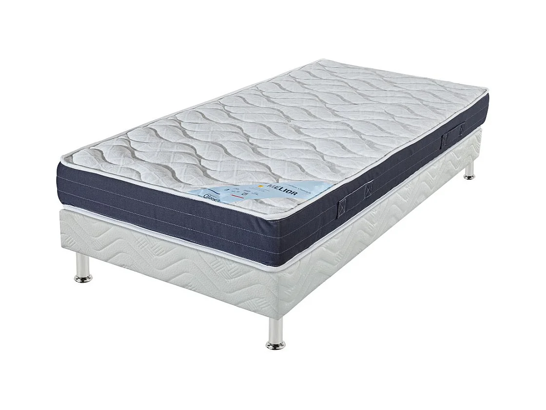 Matelas + sommier tapissier 80x190 Mousse - Melior - Soutien ferme - Blanc