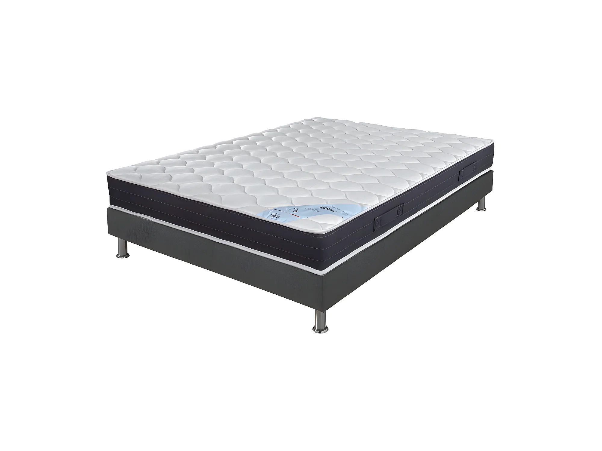 Matelas + sommier tapissier 140x190 Ressorts - Rubis - Soutien très ferme - Gris