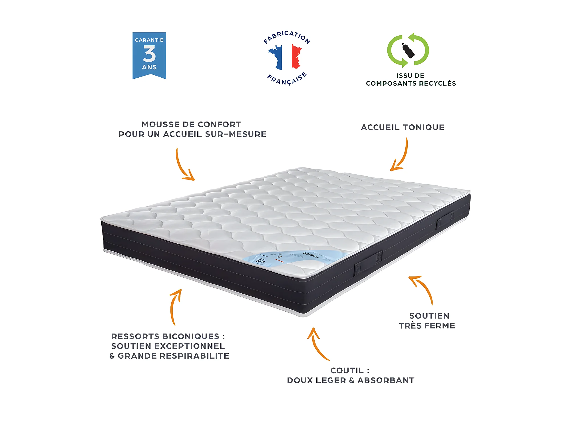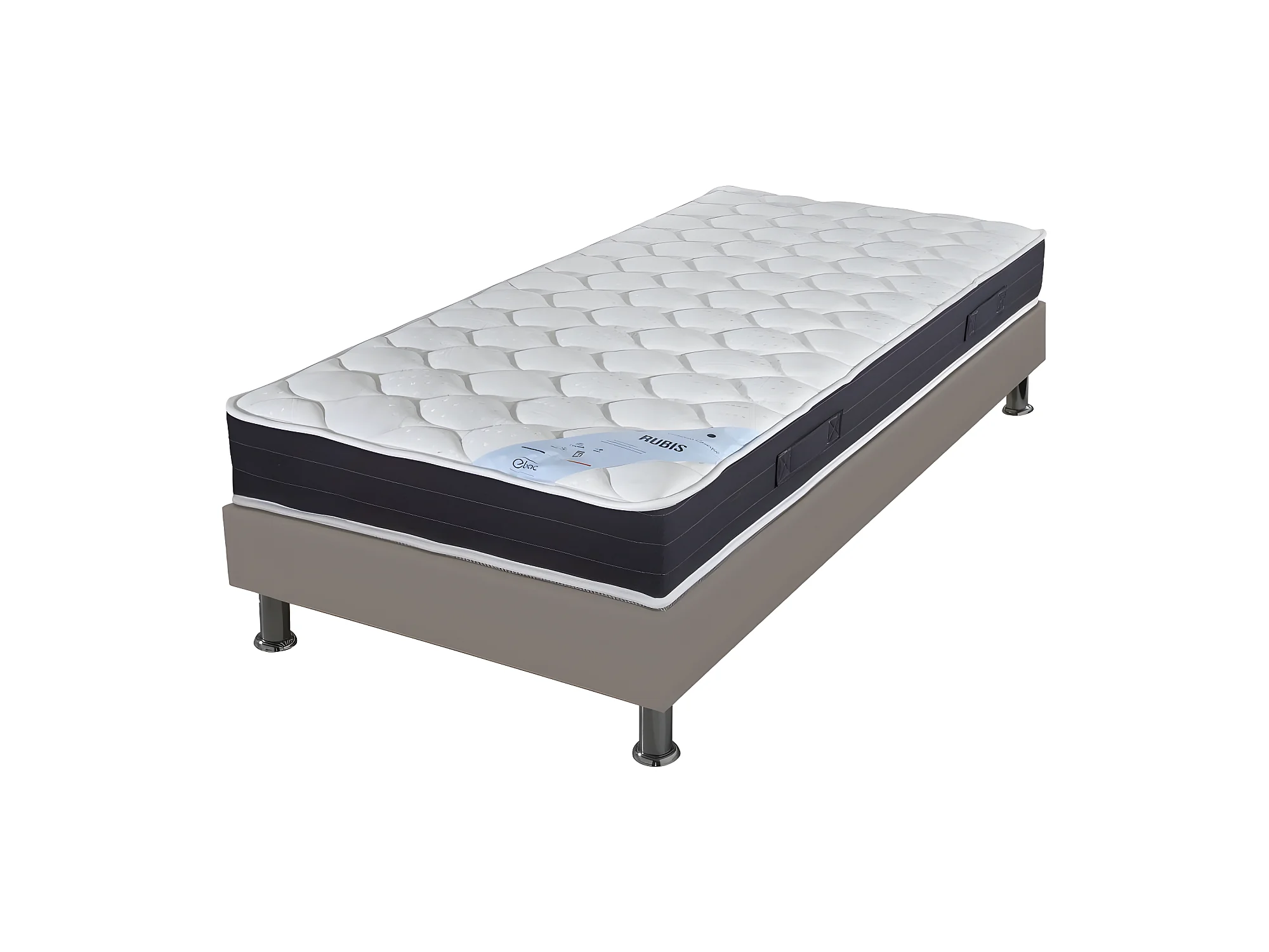 Matelas et sommier 80x190 Ressorts - Rubis - Soutien très ferme - Simili taupe