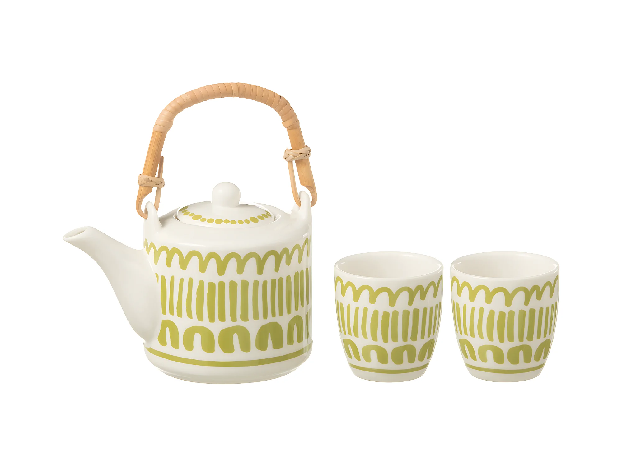 Théière & 2 tasses Design Lignes "Fiesta Sud" 16cm Vert