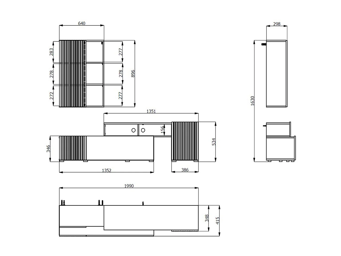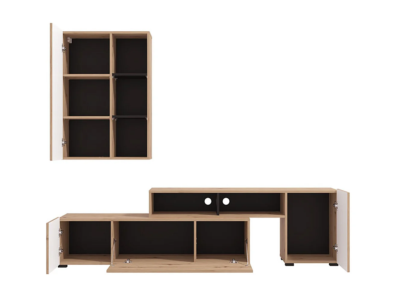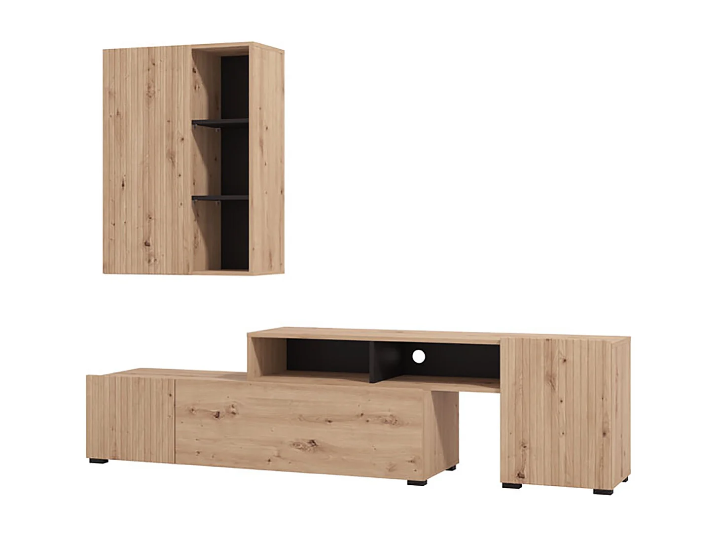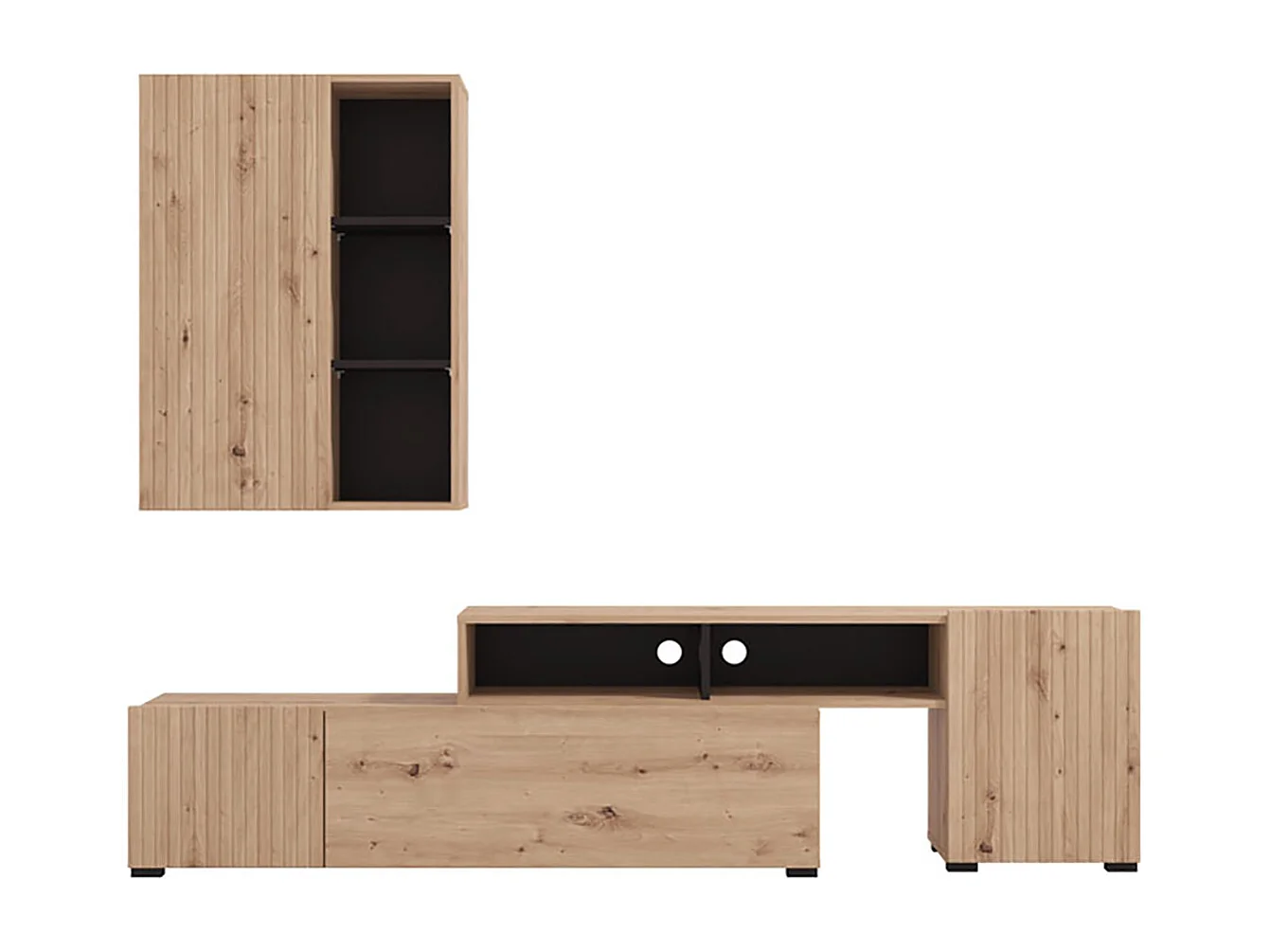 Ensemble TV avec meuble TV et meuble haut couleur Chêne artisan / Noir - Longueur 199 x profondeur 41,5 x hauteur 200 cm