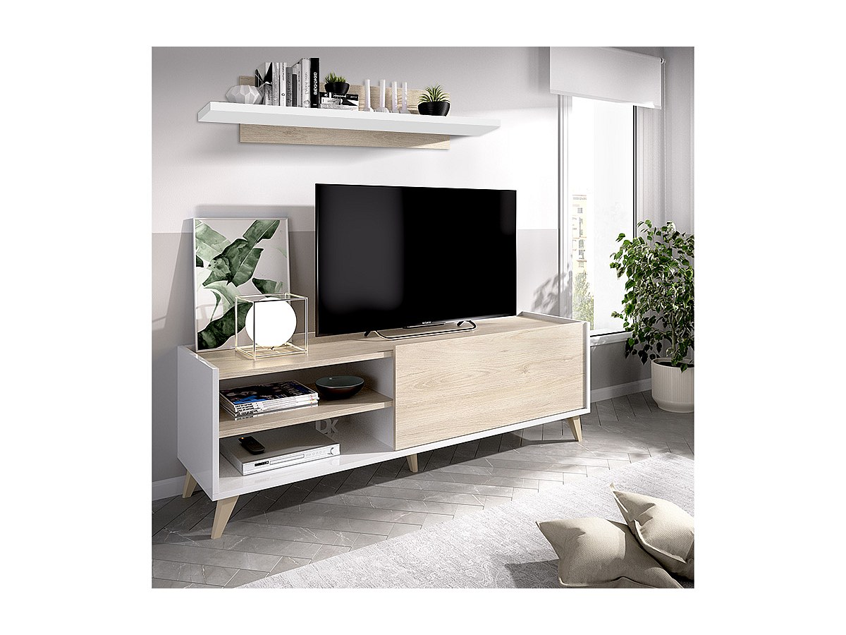 Ensemble TV KOLYMA - 1 porte & 2 niches - Coloris : Chêne & Blanc