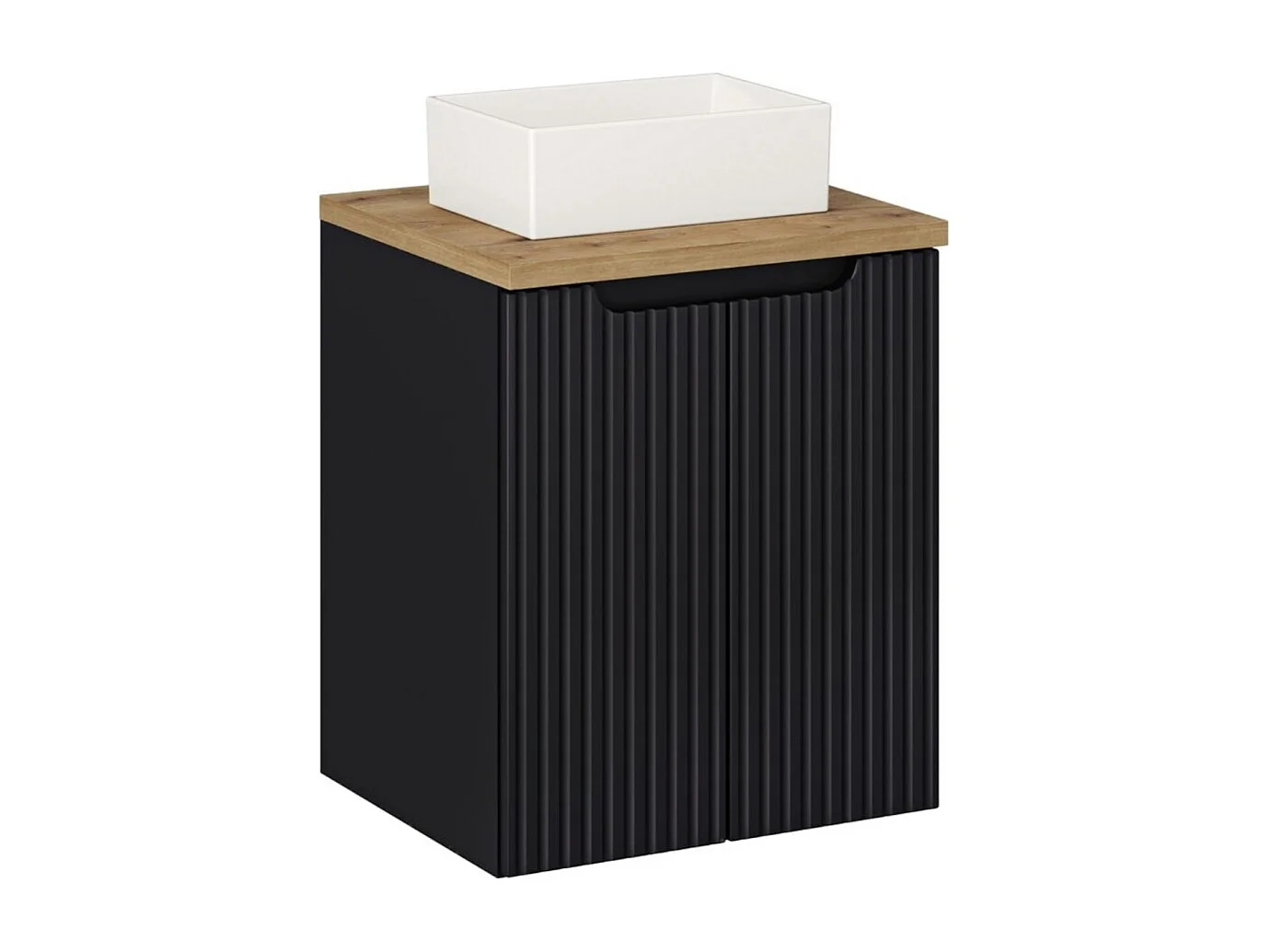 Ensemble VANO 50cm : meuble sous vasque à placards + plan pour vasque aspect chêne clair + vasque à poser rectangulaire blanche