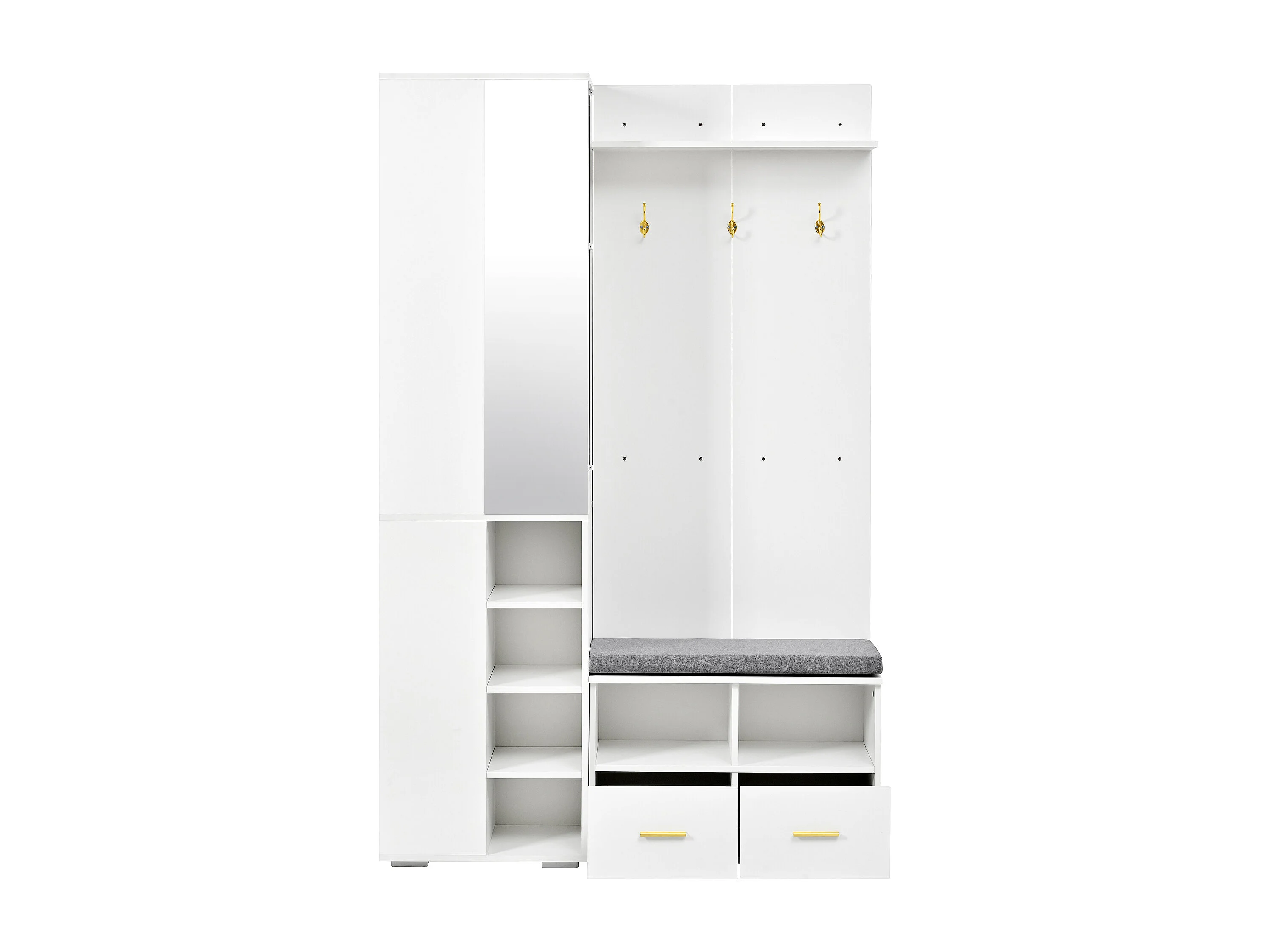 Ensemble vestiaire d'entrée 120x35x190cm - avec 2 tiroirs et compartiments de rangement - avec miroir et banc à chaussures - Blanc