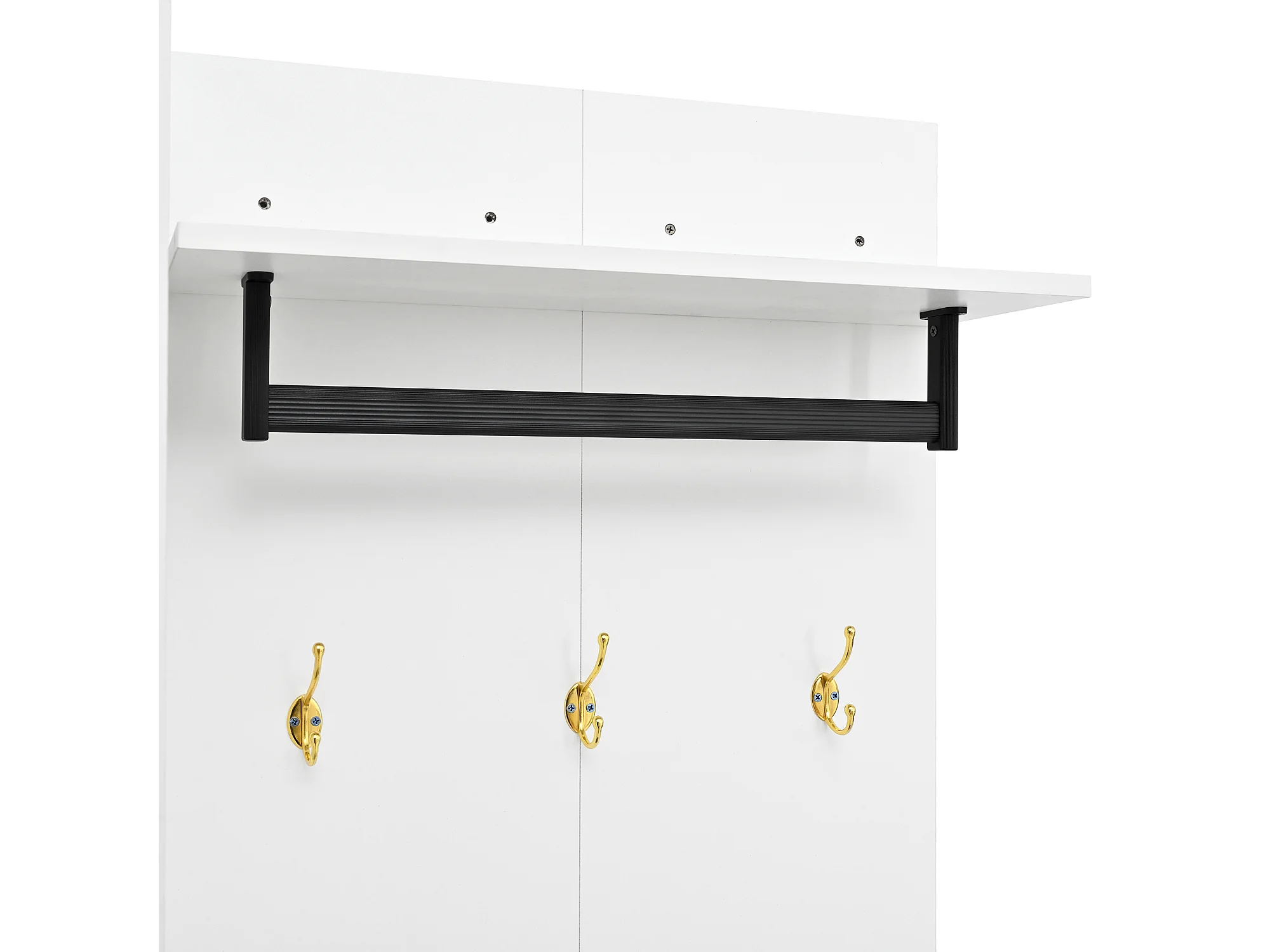 Ensemble vestiaire d'entrée 150x36x180cm - avec 4 portes et 1 tiroir - avec miroir et meuble à chaussures - avec crochet - Blanc