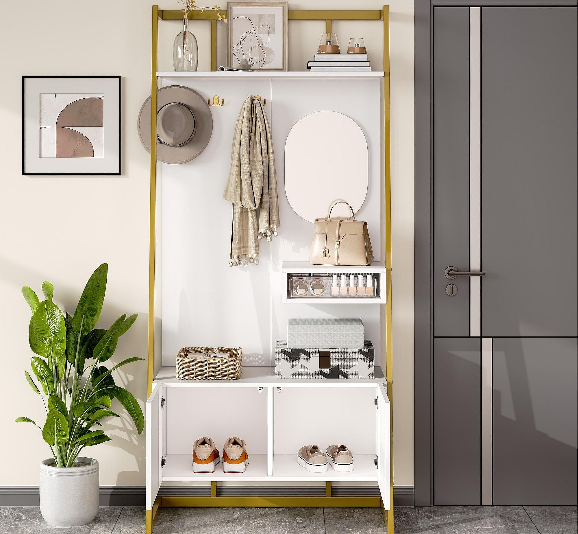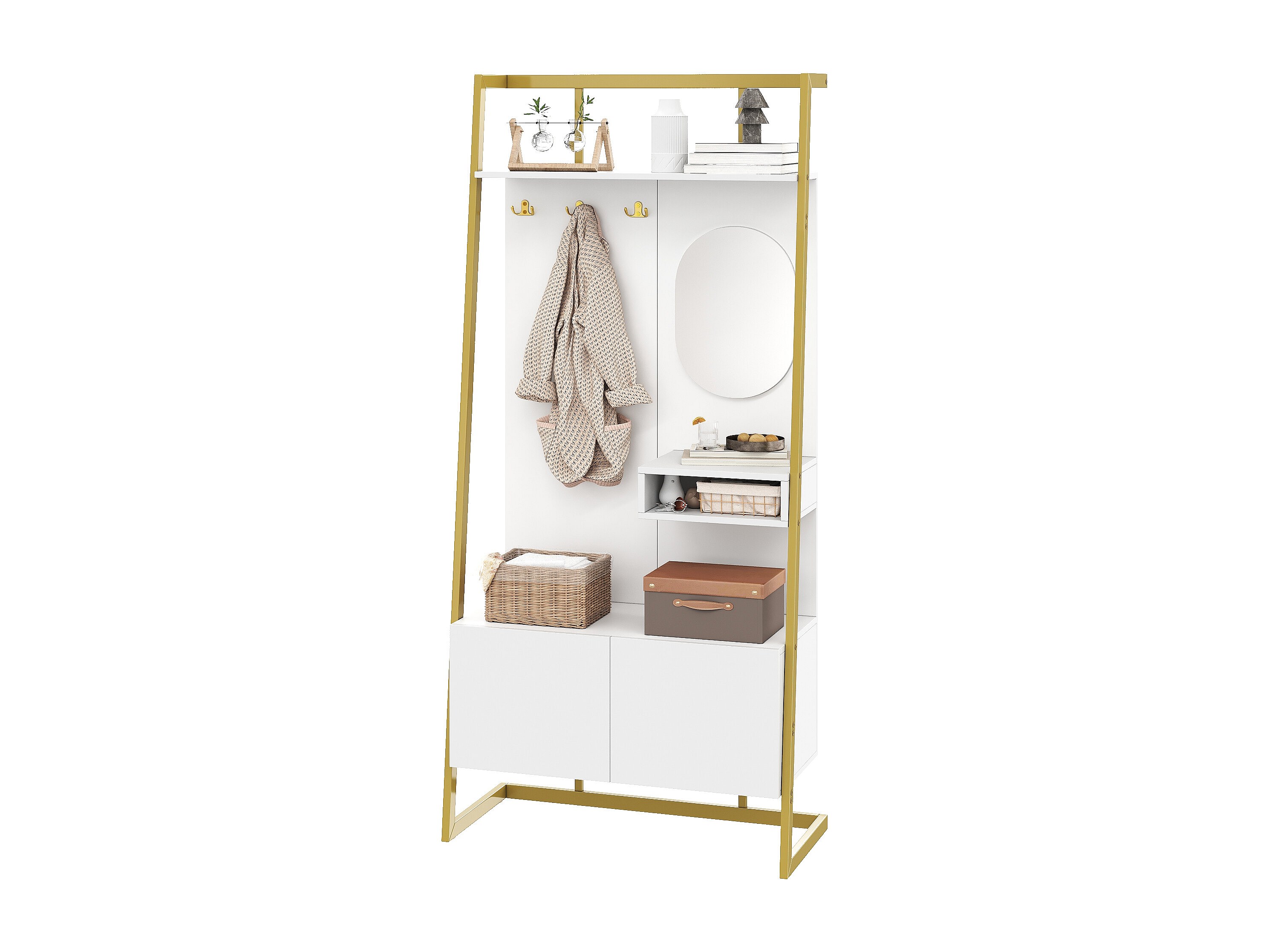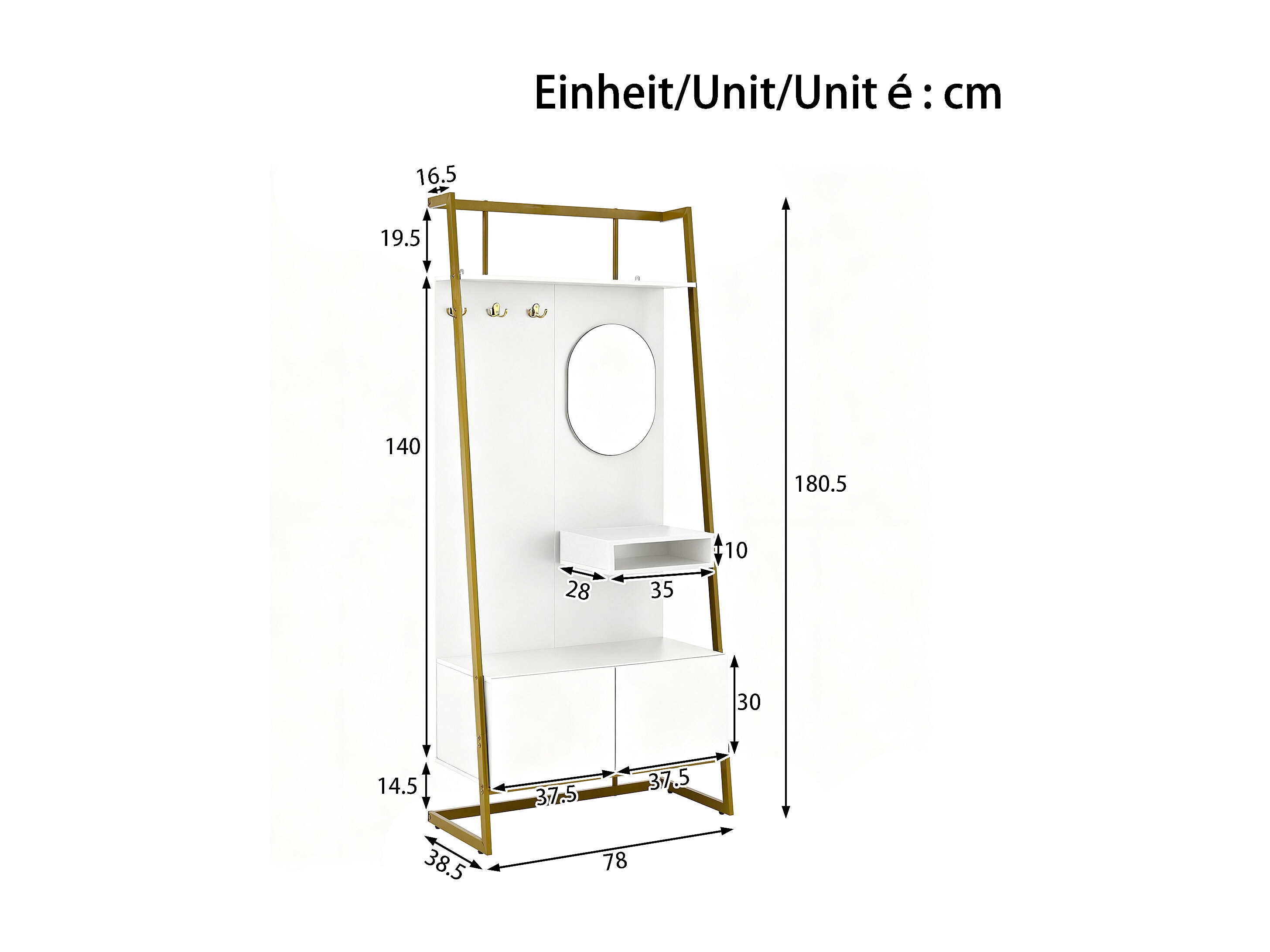 Ensemble vestiaire d'entrée 78x38,5x180,5cm - avec miroir et crochets - Meuble à chaussures - avec étagères - Blanc