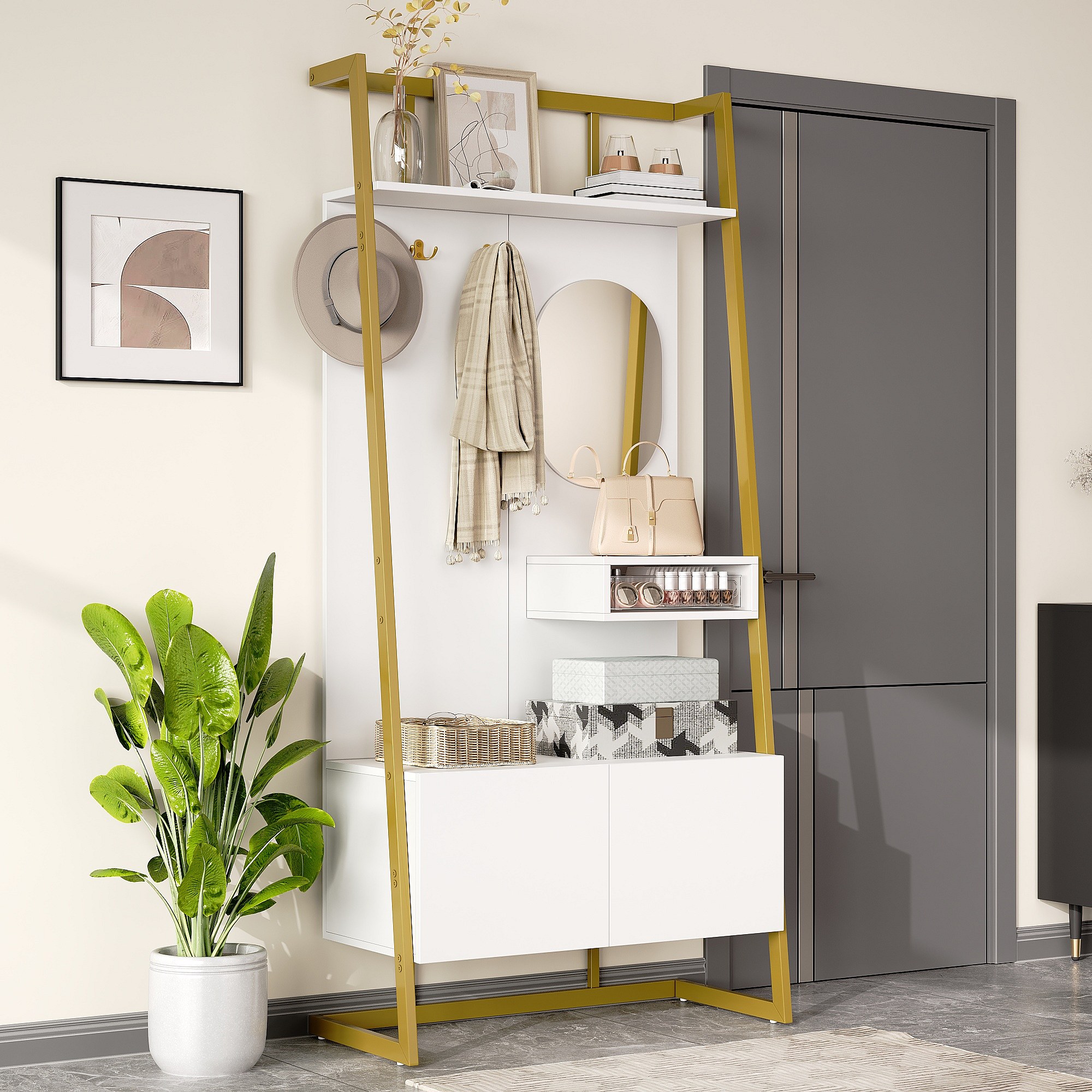 Vestiaire d'entrée moderne - avec porte-manteau et rangements à chaussures - Blanc