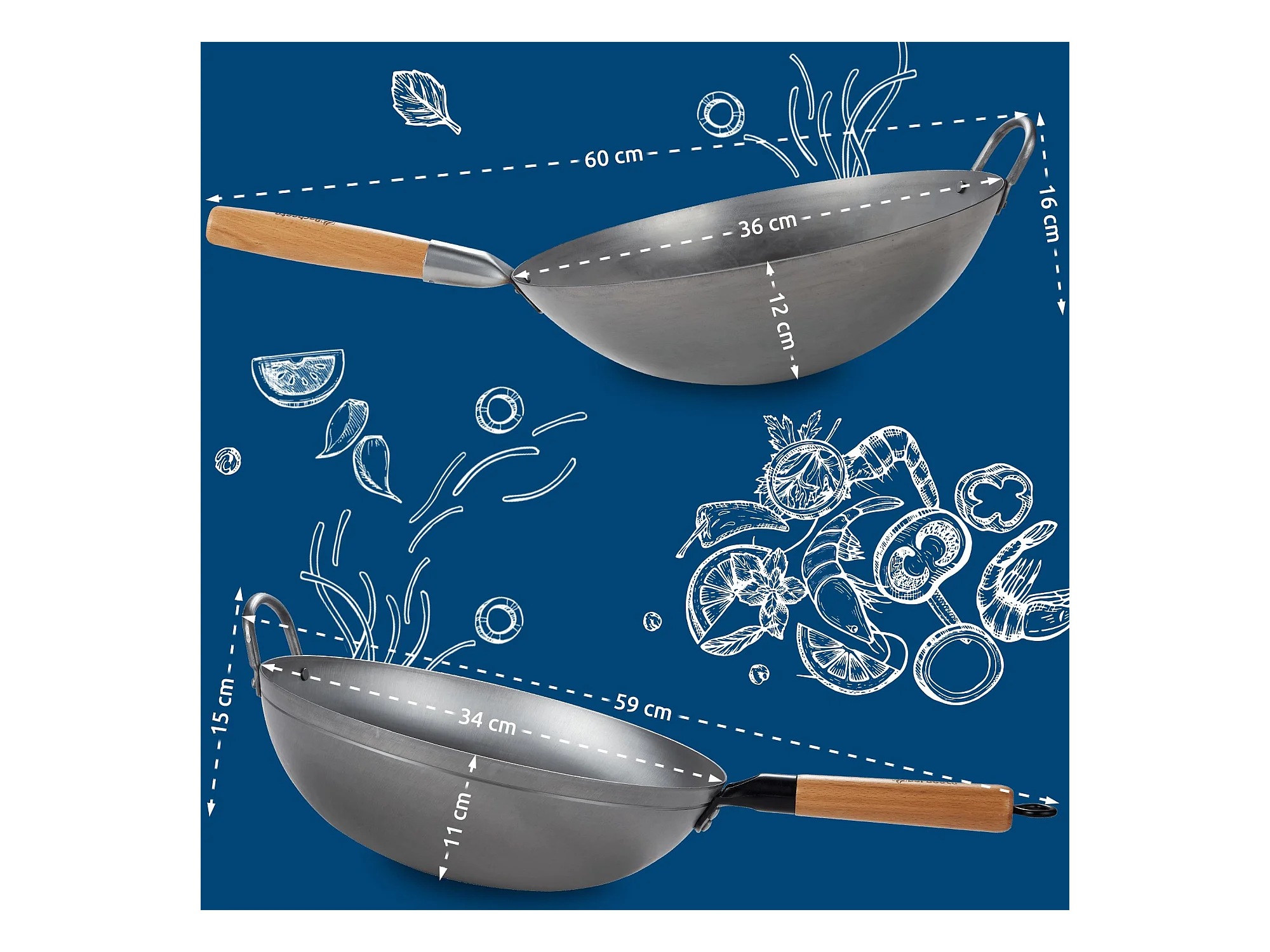 Wok Tri-Metal 36cm 5.5L - Revêtement Antiadhésif et Poignée Ergonomique