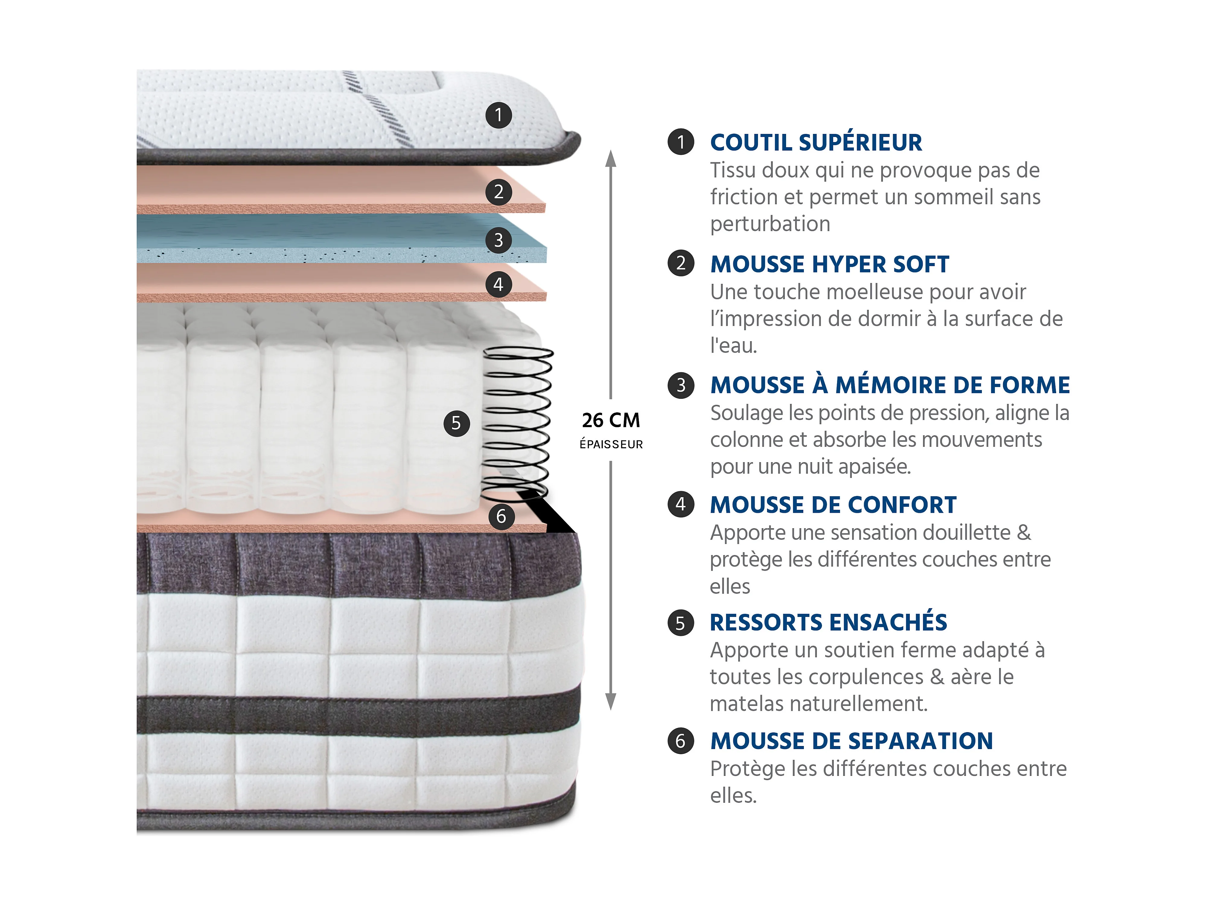 Ensemble Concorde Ressorts ensachés Accueil mémoire de forme Ferme+ sommier + accessoires - 160x200